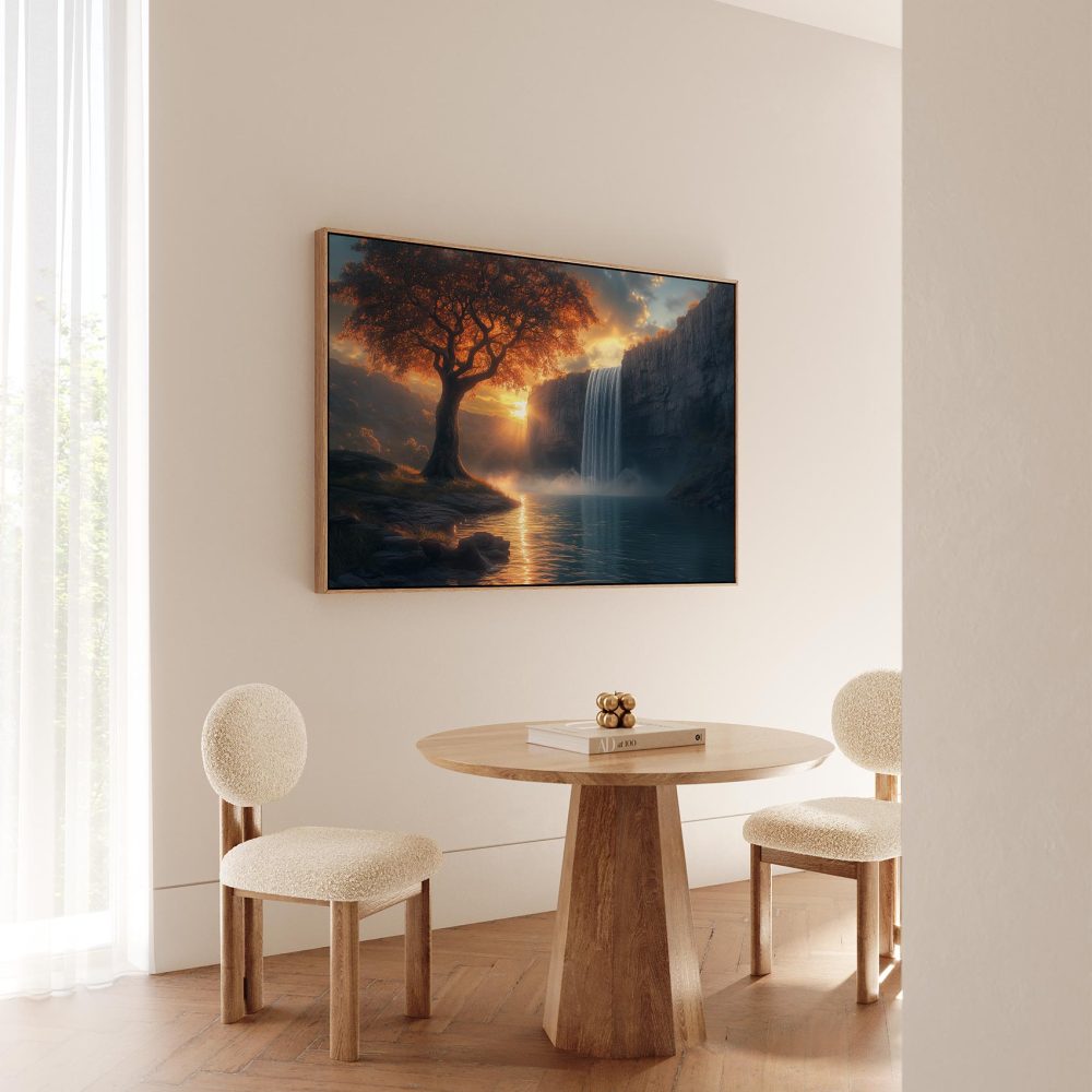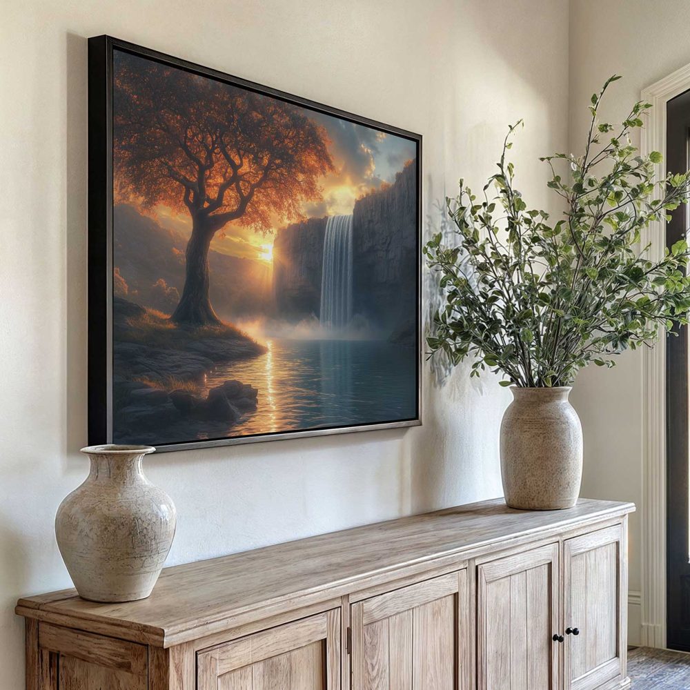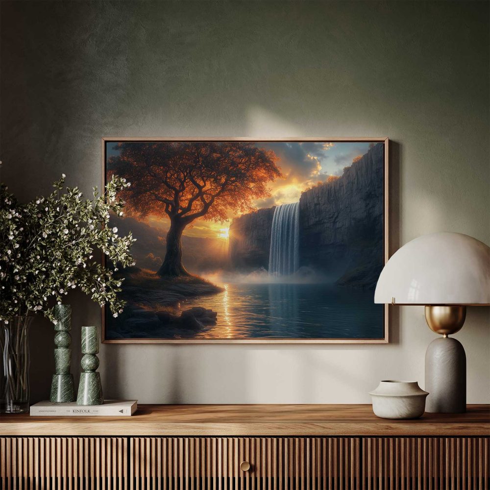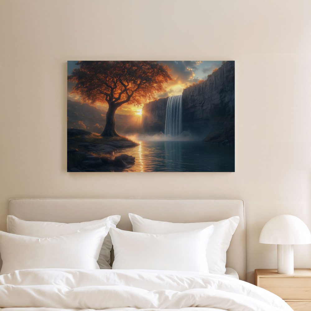 Terug naar collectie / Schilderijen / Bergen Schilderij / Betoverend waterval-landschap