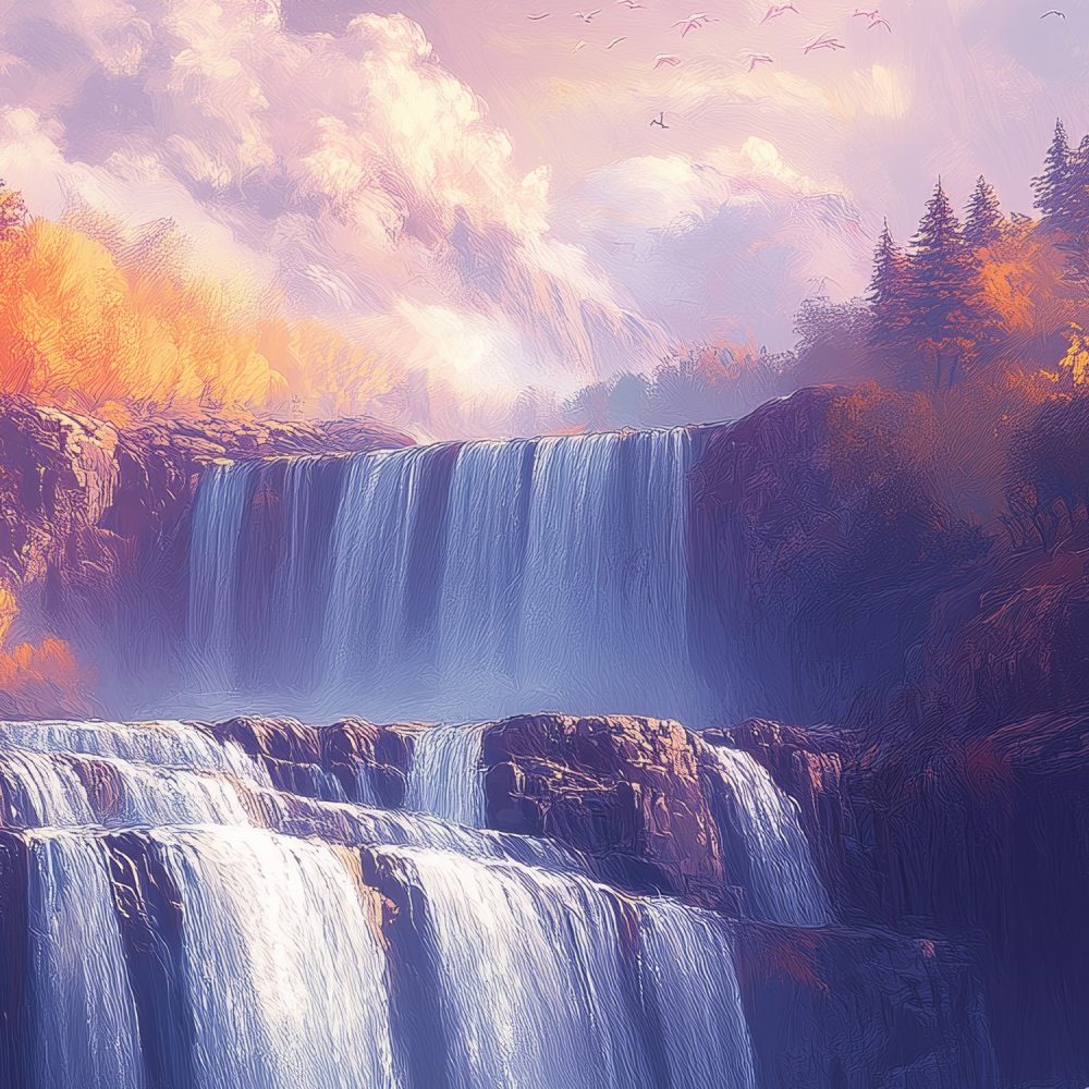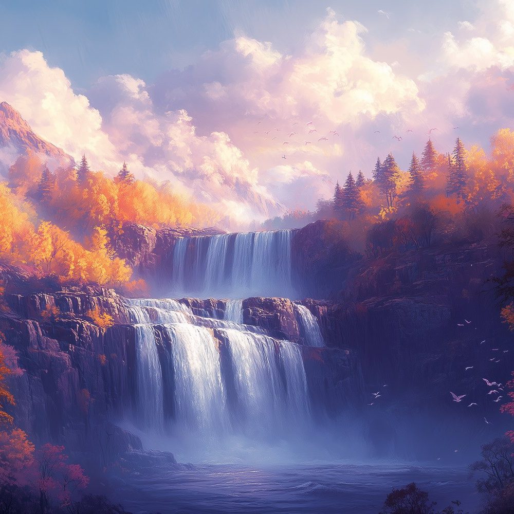 Betoverend waterval natuurschilderij behang