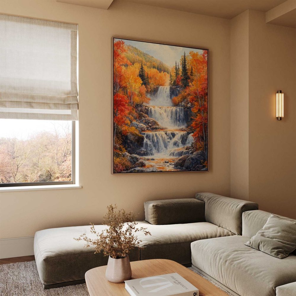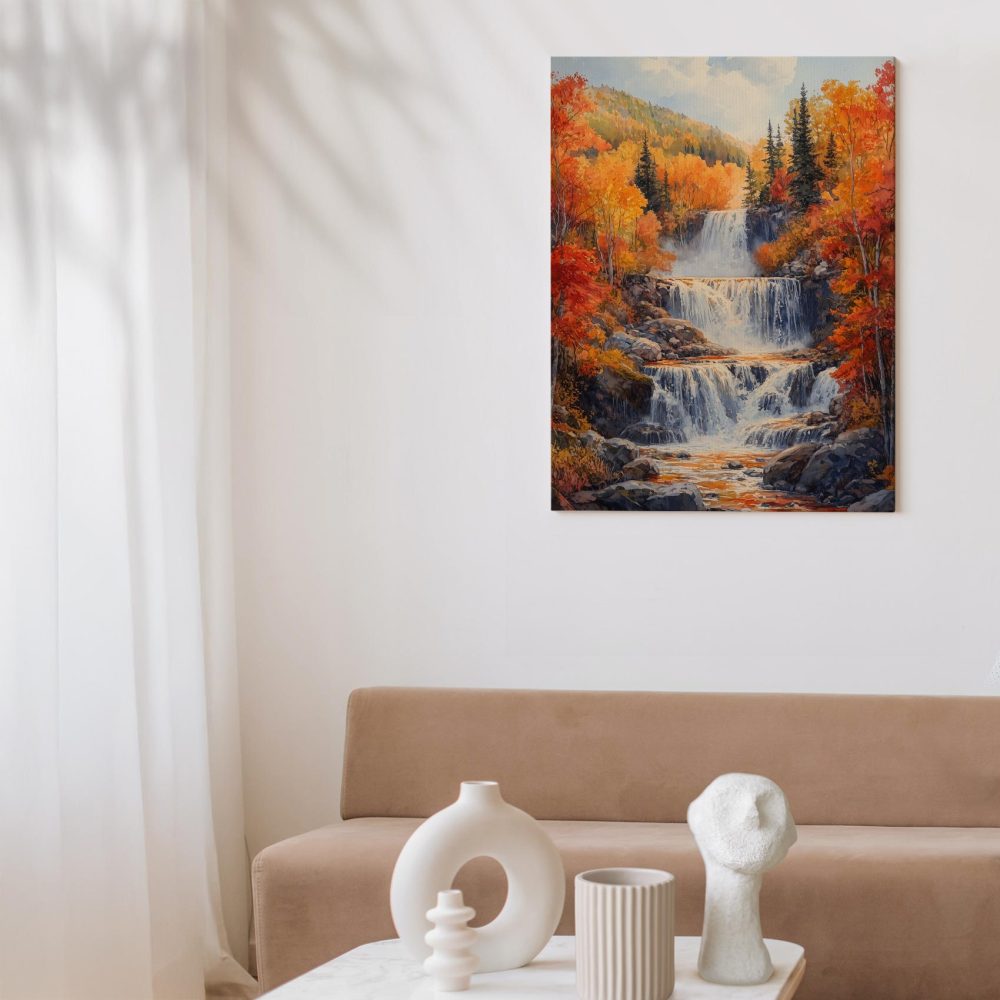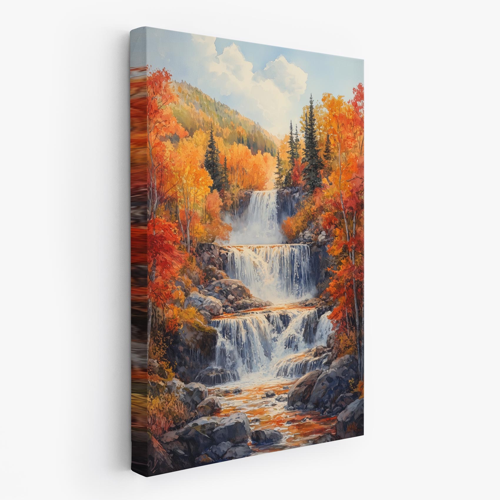 Betoverend waterval waterverfschilderij