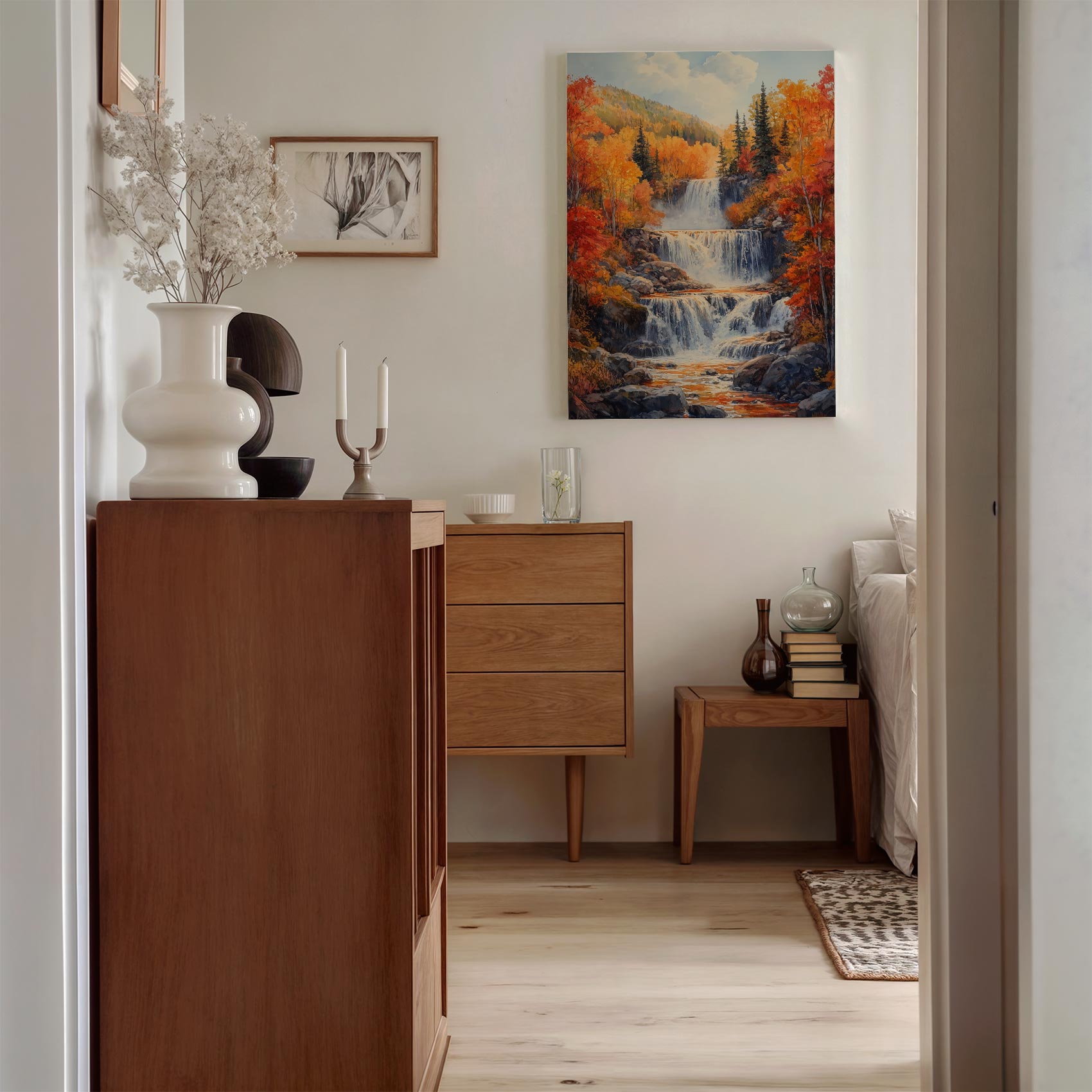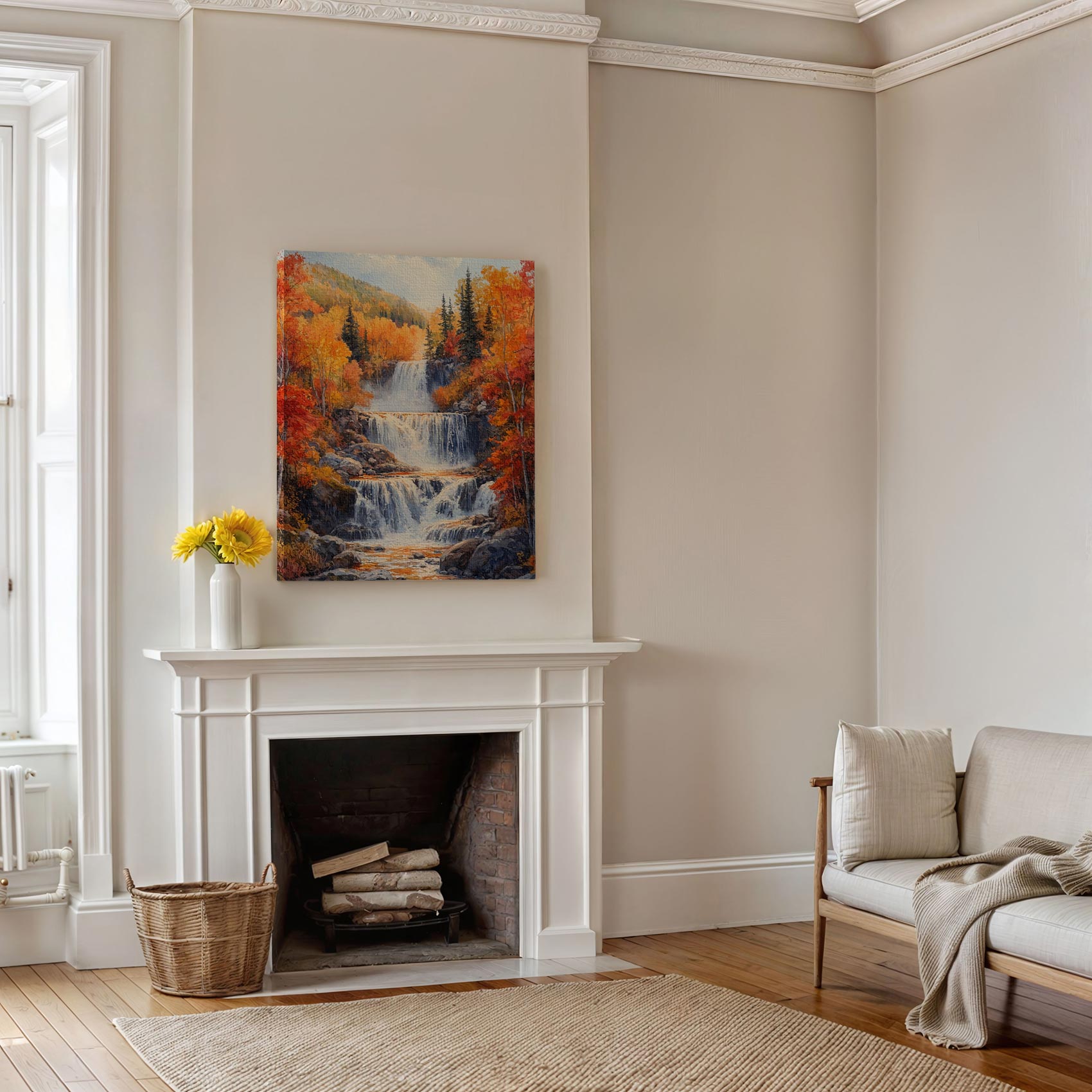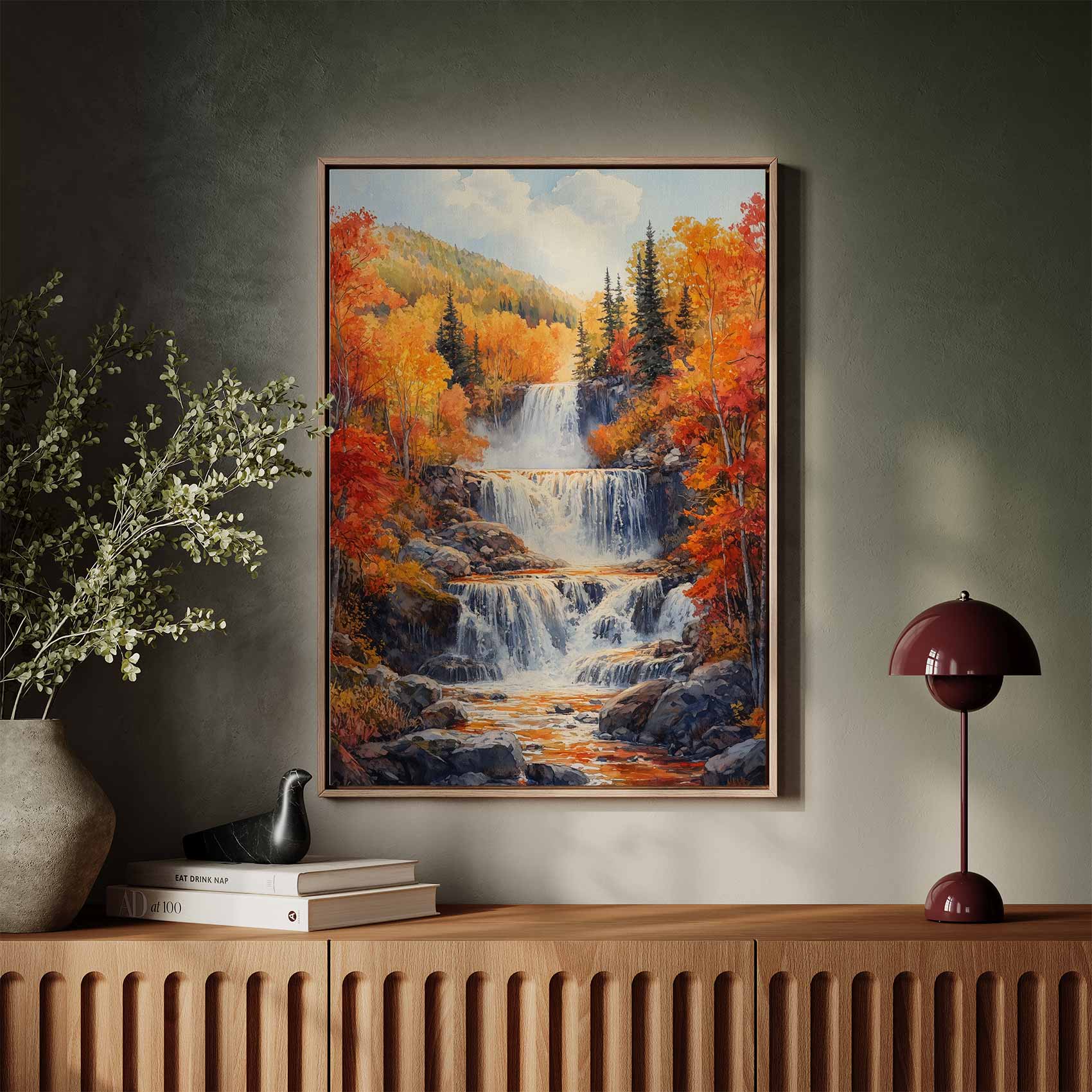 Betoverend waterval waterverfschilderij