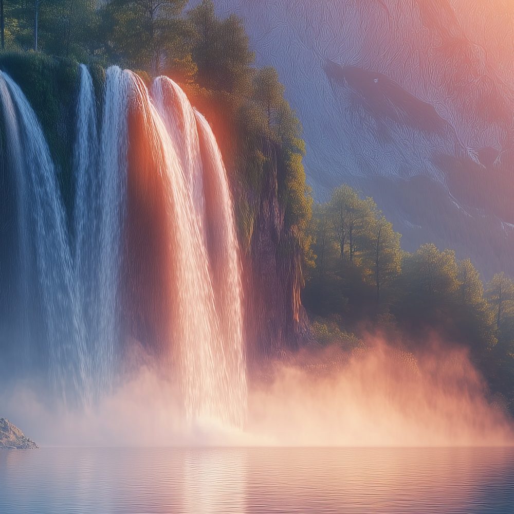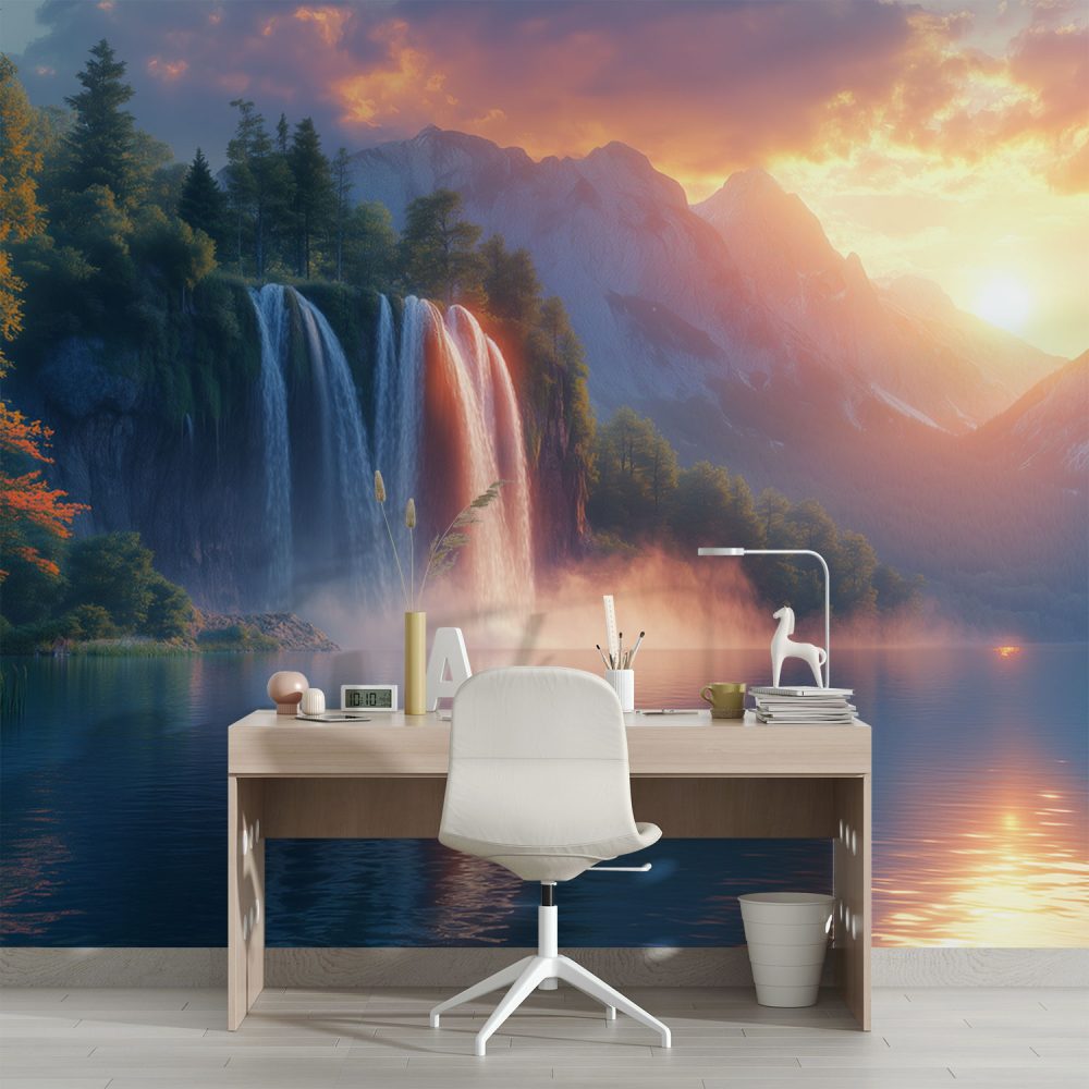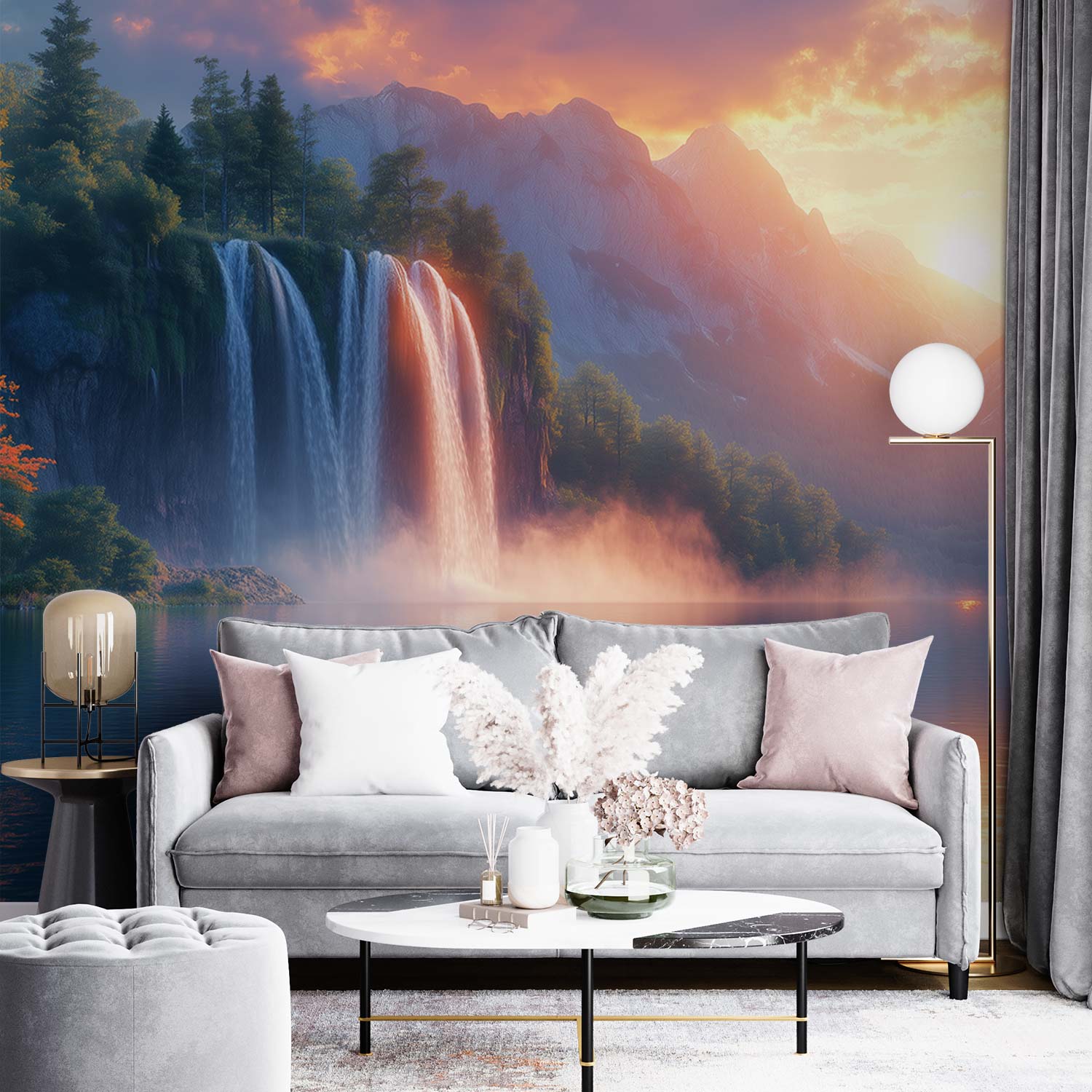 Terug naar collectie / Behang / Betoverend waterval zonsondergang landschap behang