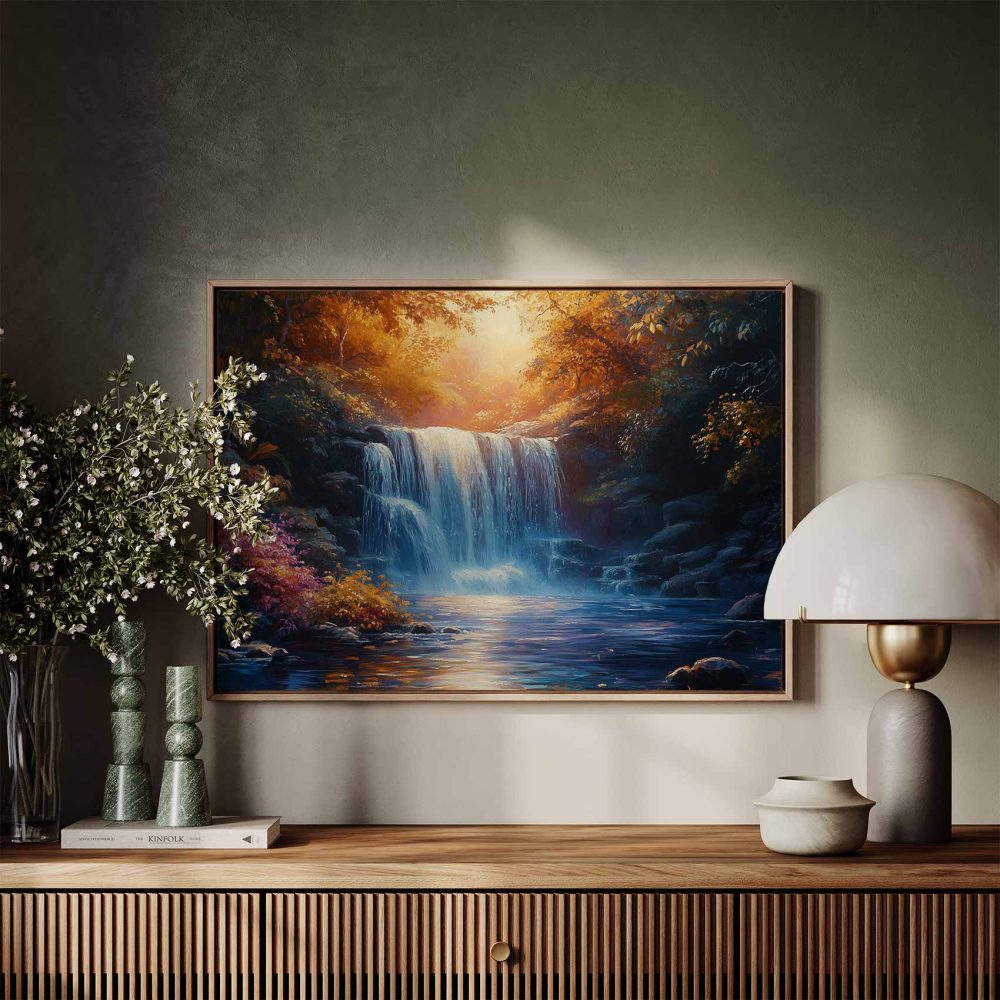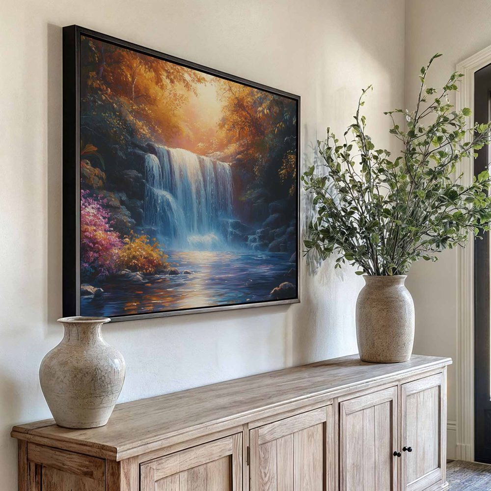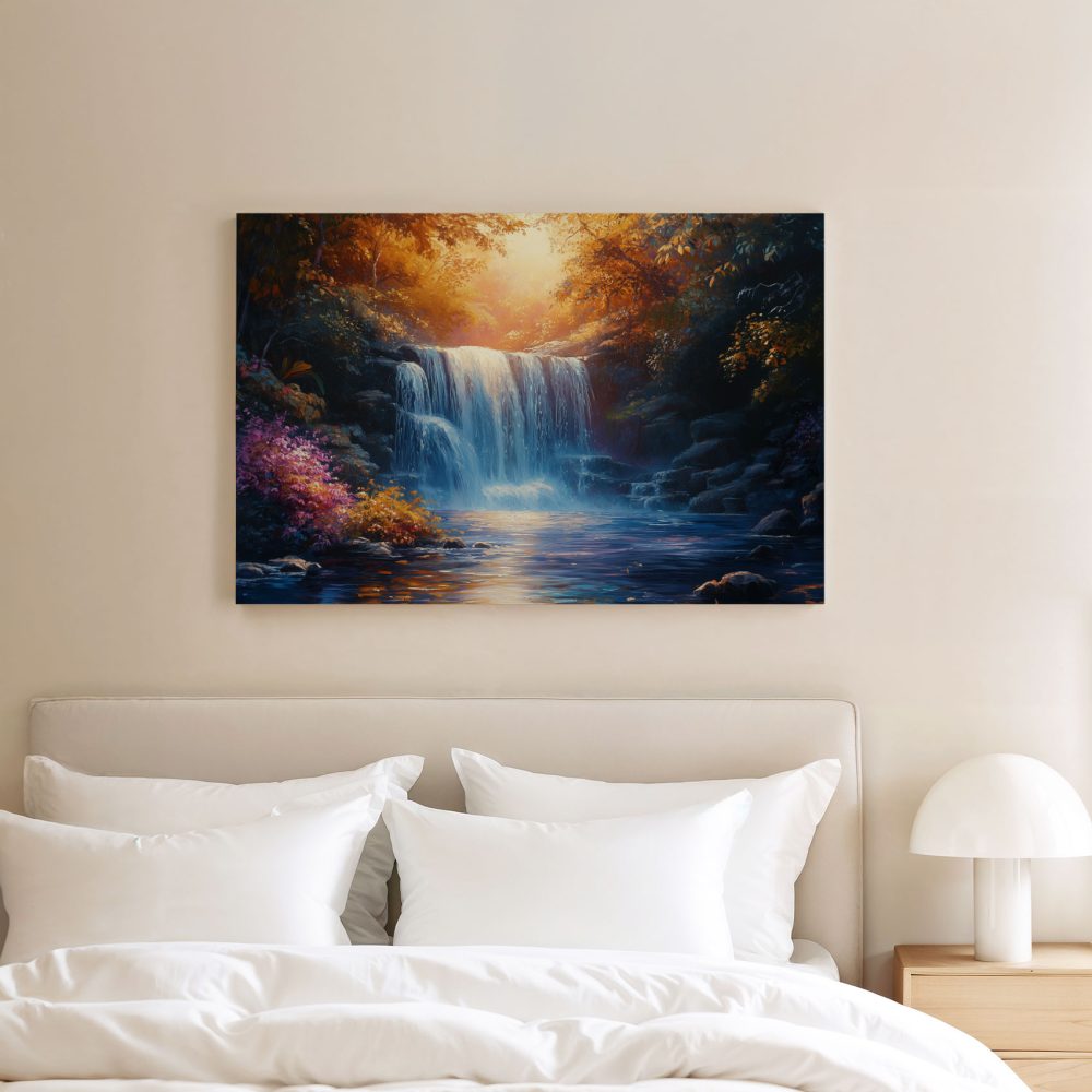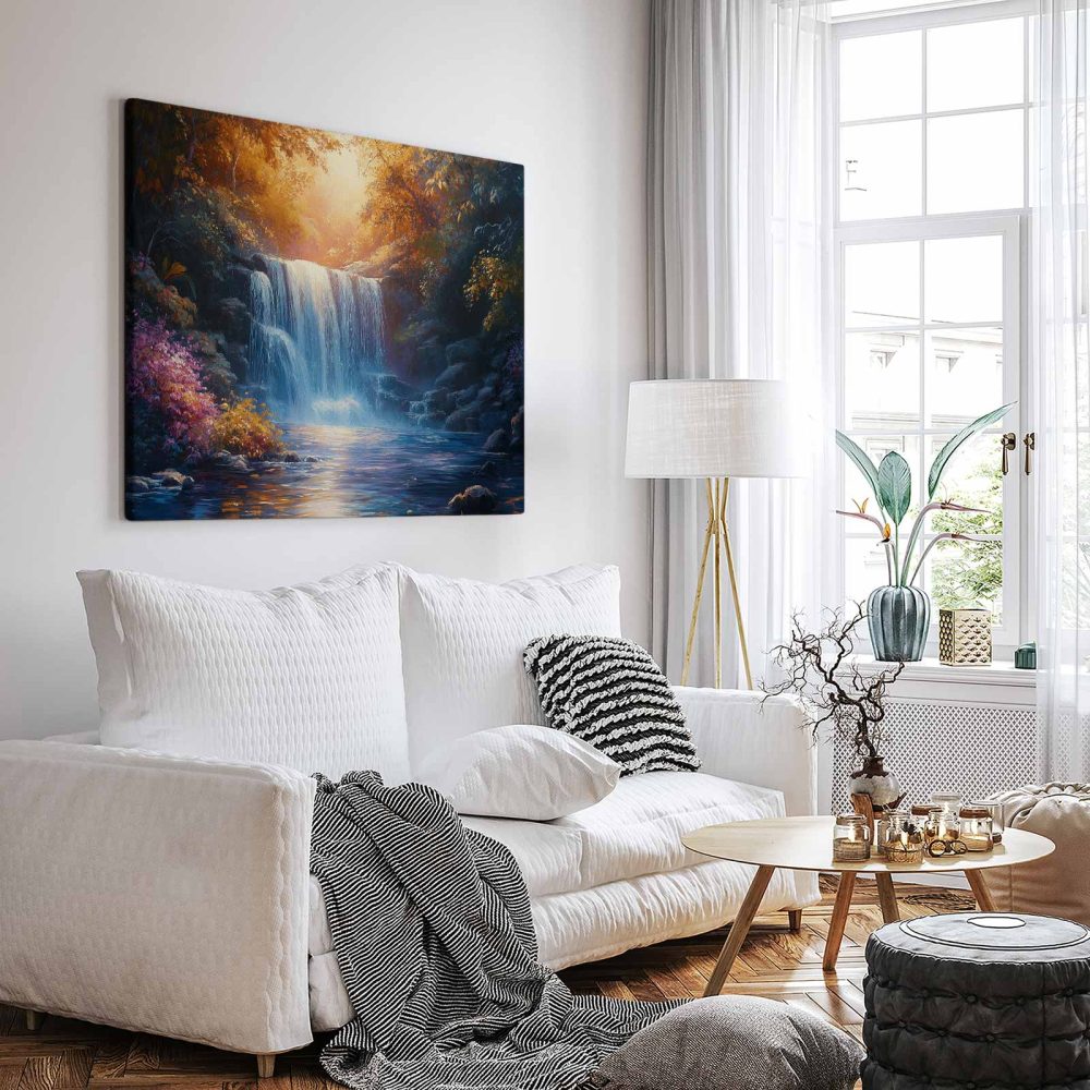 Terug naar collectie / Schilderijen / Bergen Schilderij / Betoverend watervalwoudschilderij