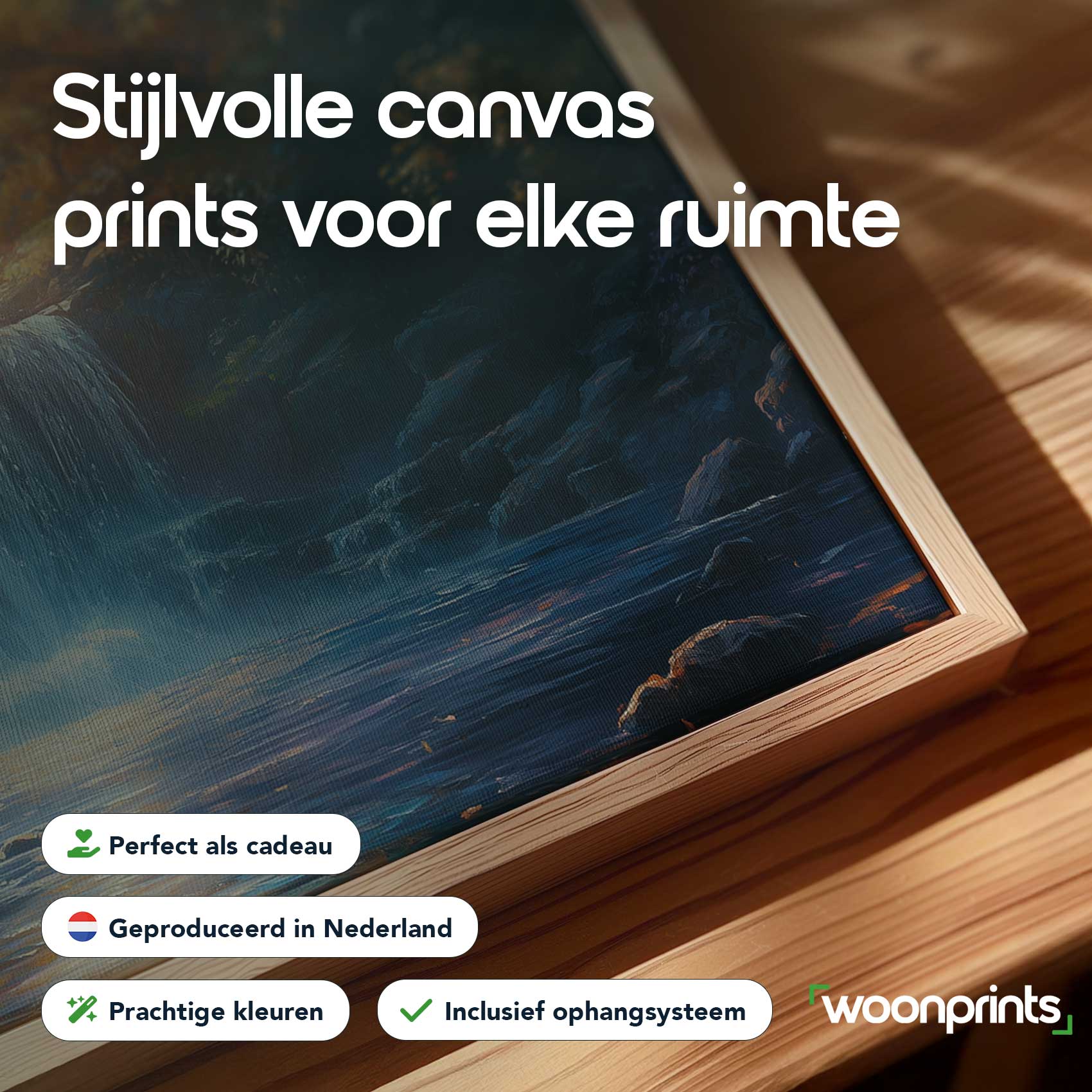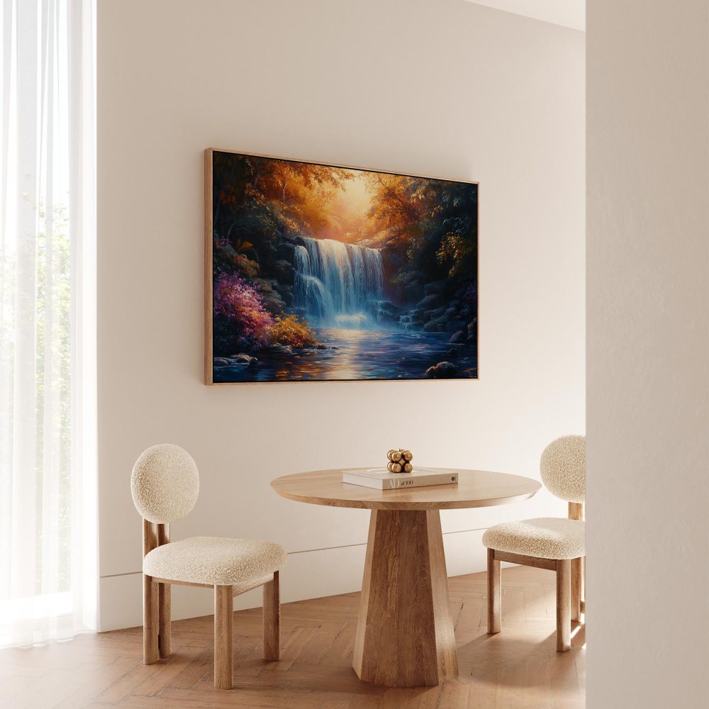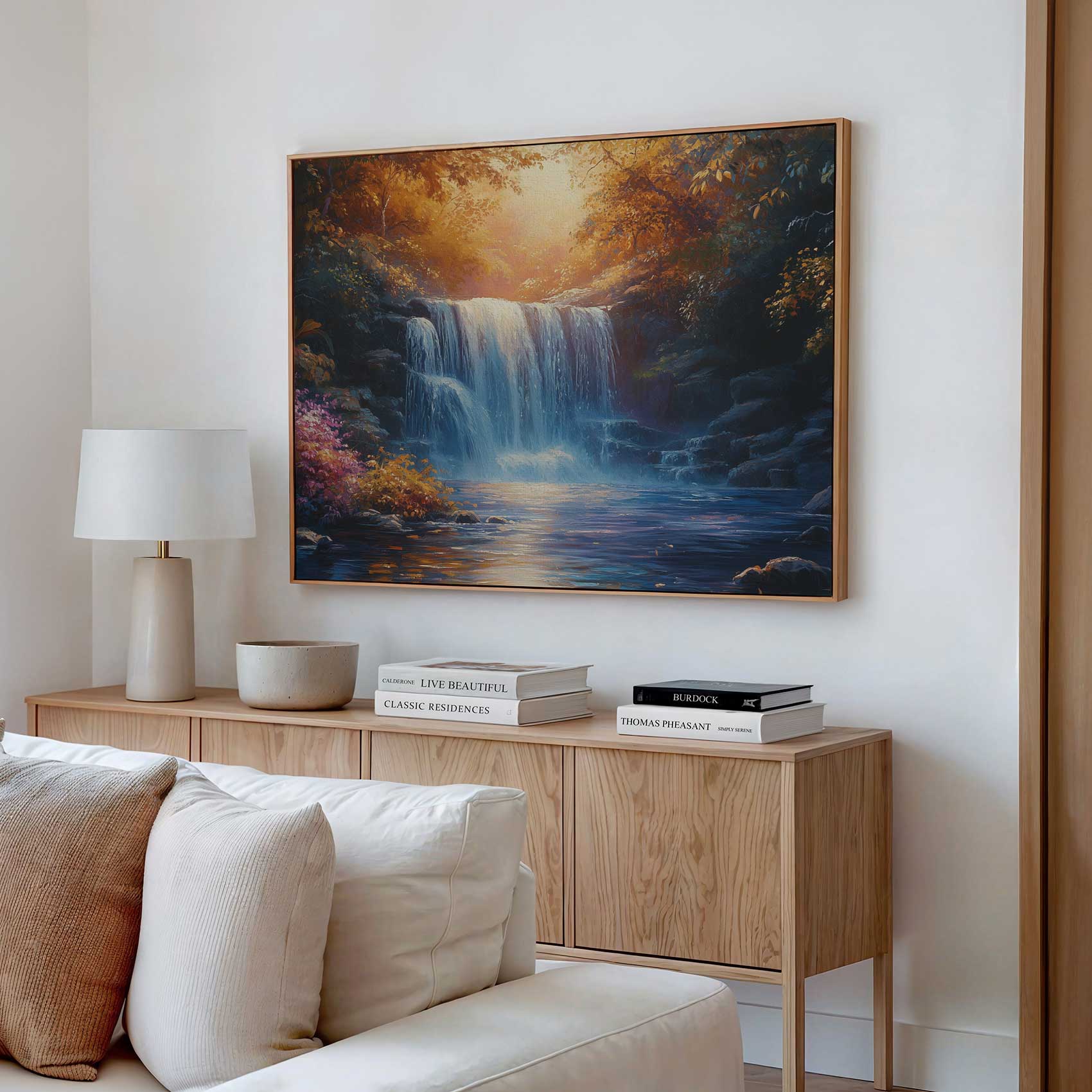 Terug naar collectie / Schilderijen / Bergen Schilderij / Betoverend watervalwoudschilderij