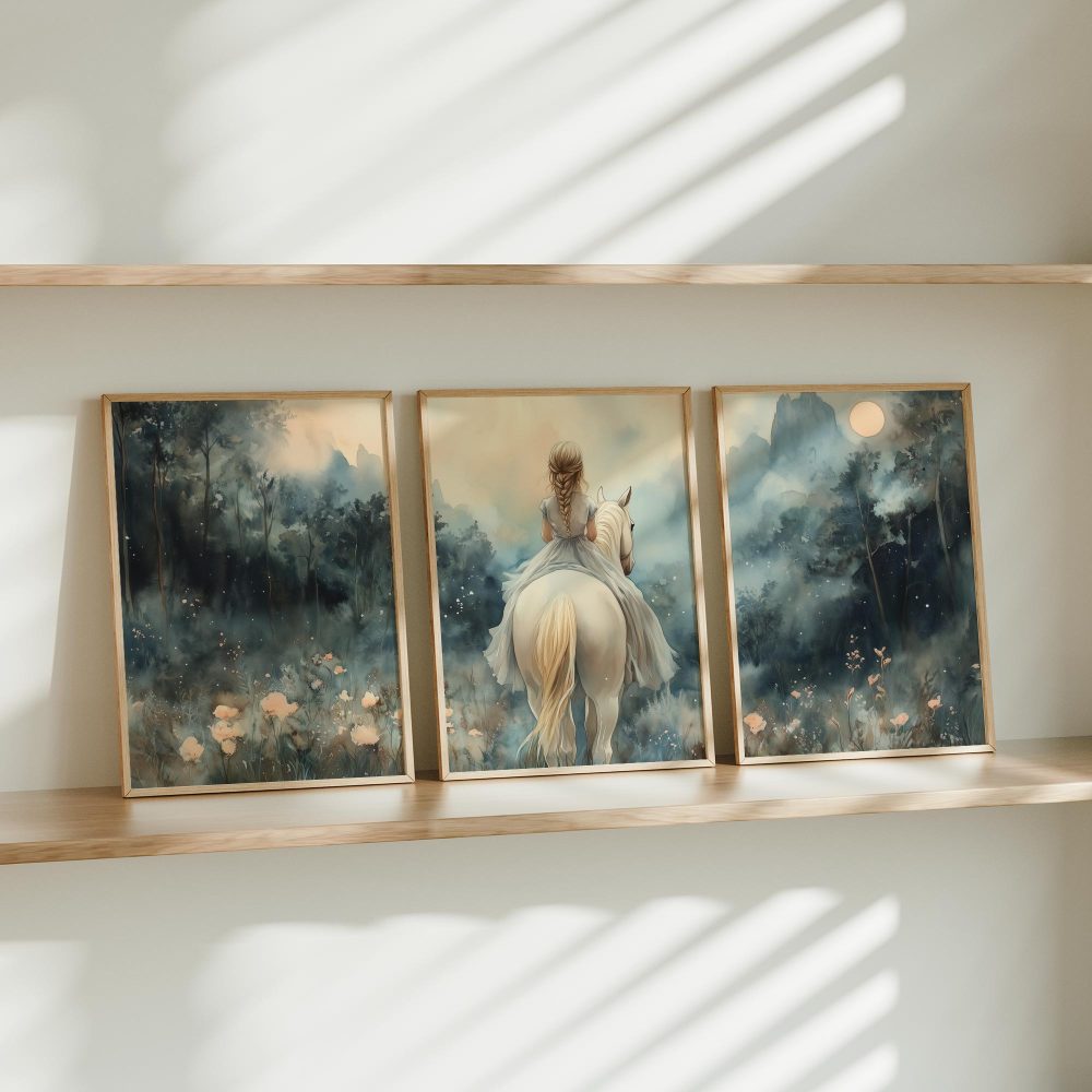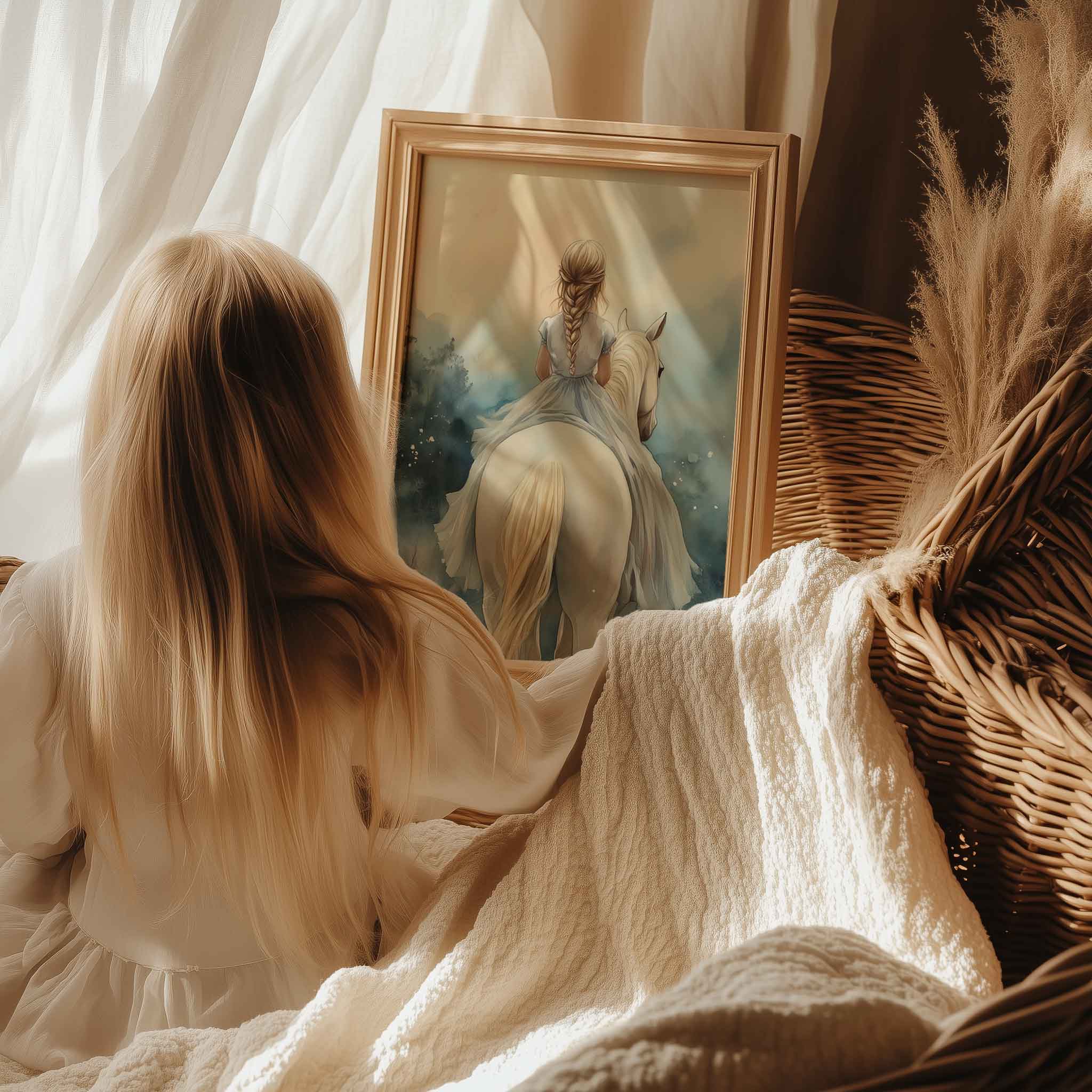Terug naar collectie / Kinderkamer posters / Bloemen posters / Betoverende Droomrit op een Witte Paard