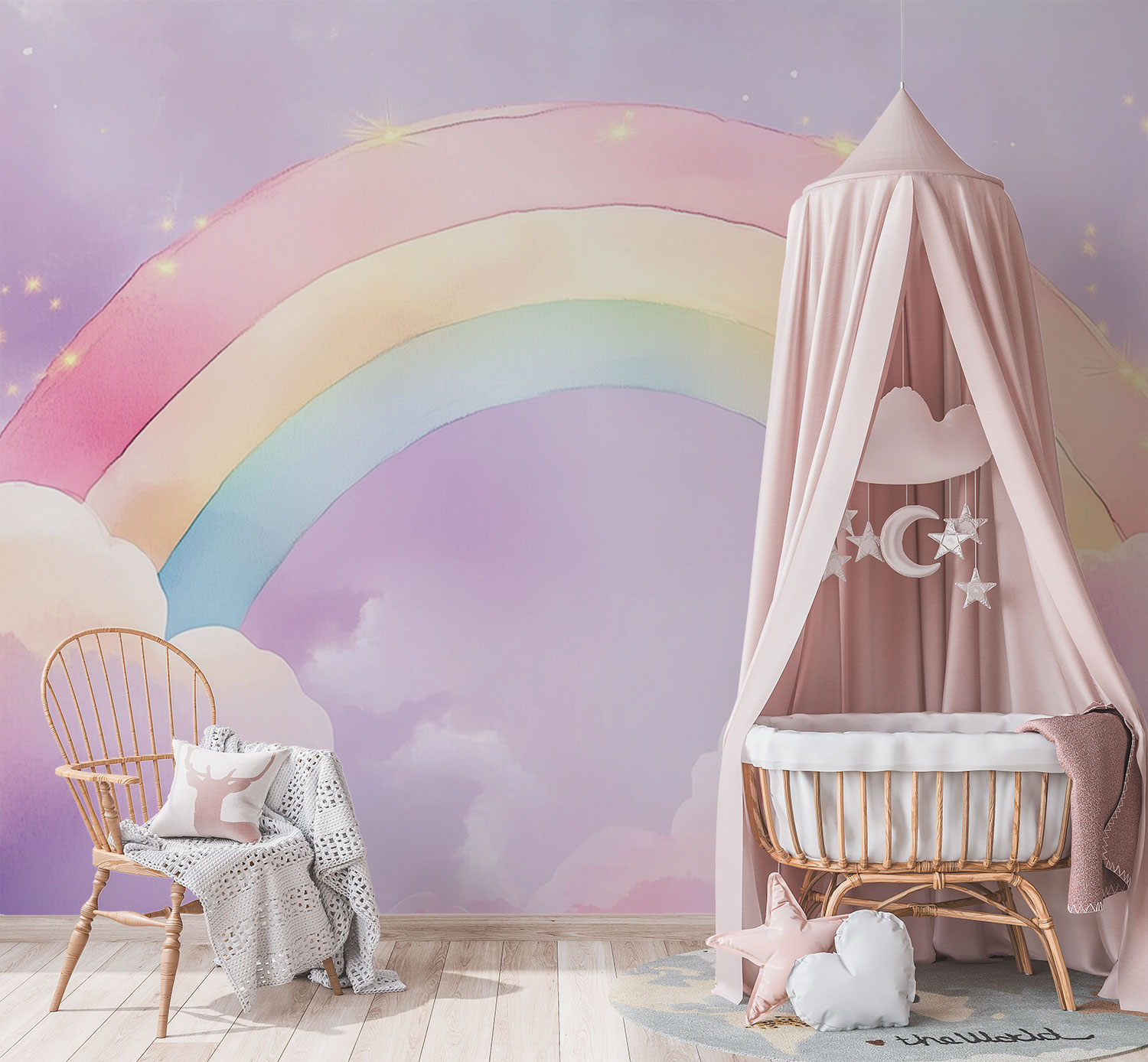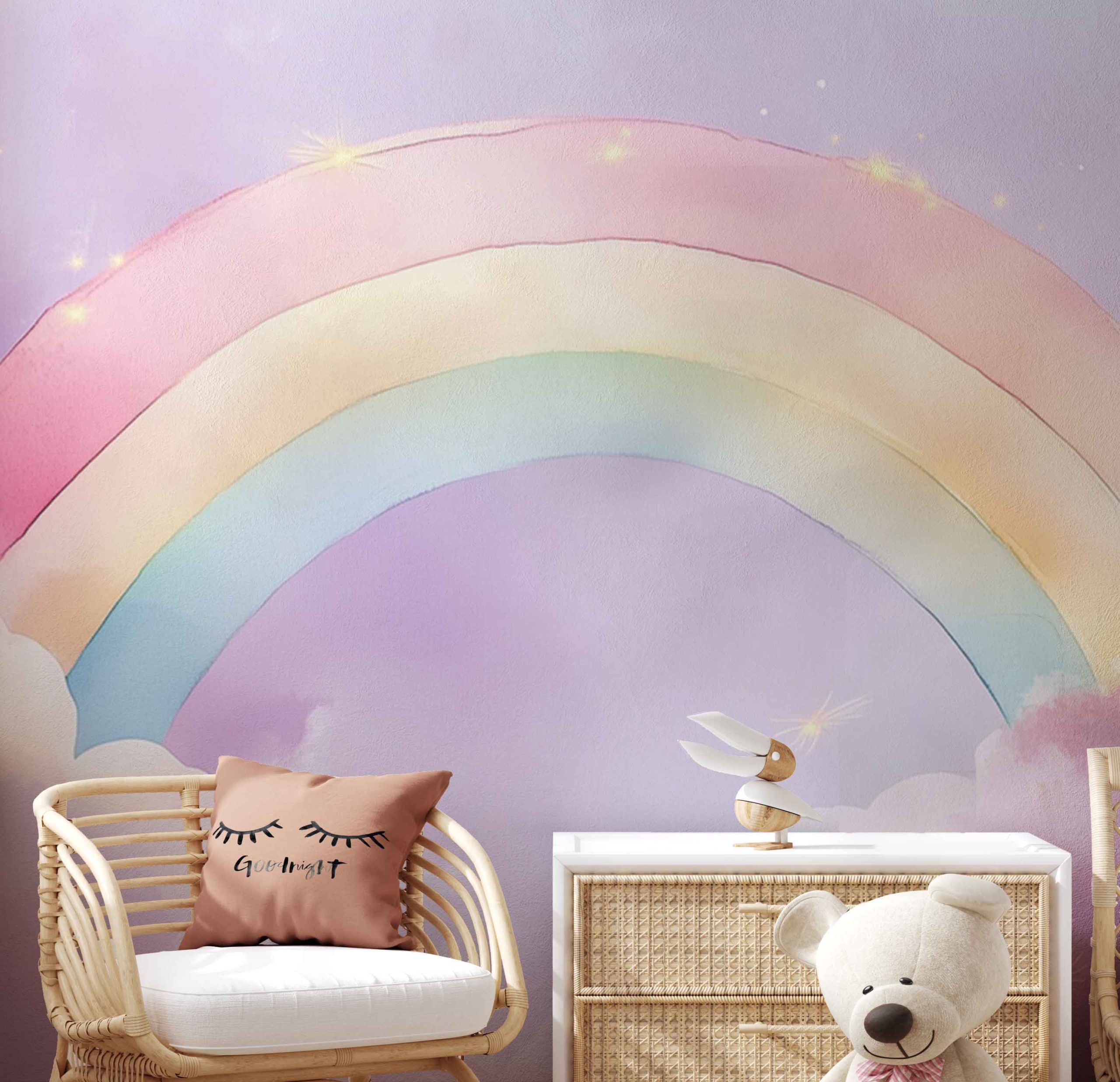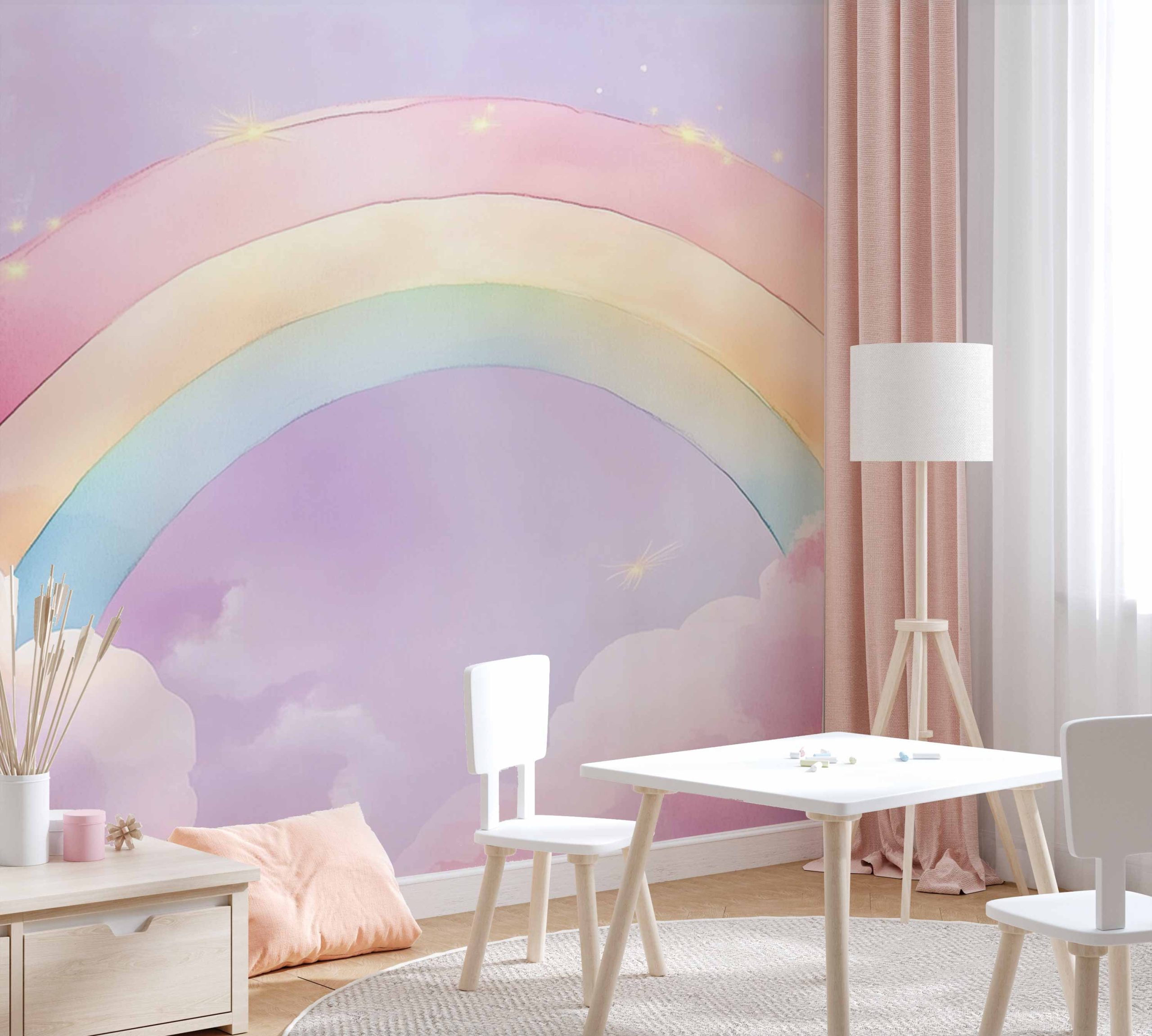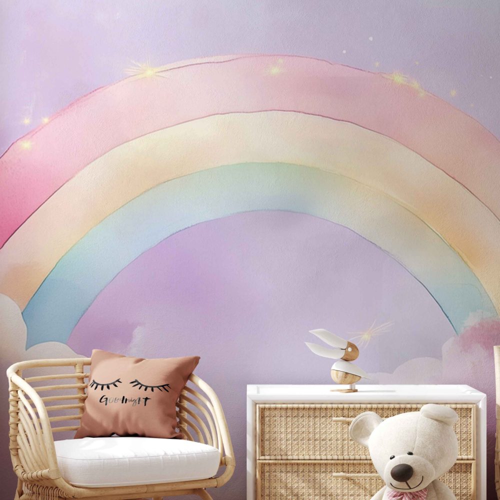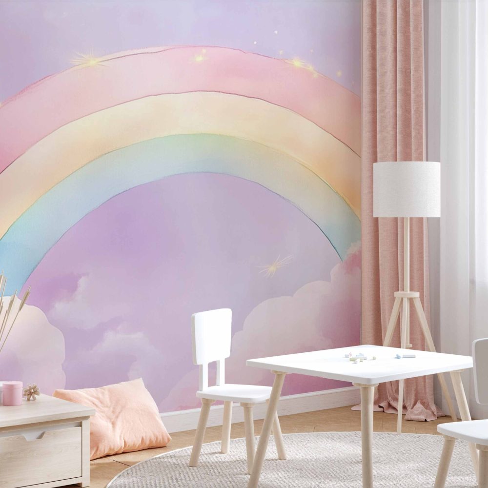 Terug naar collectie / Behang / Kinderkamer behang / Babykamer behang / Betoverende Regenbooghemel behang