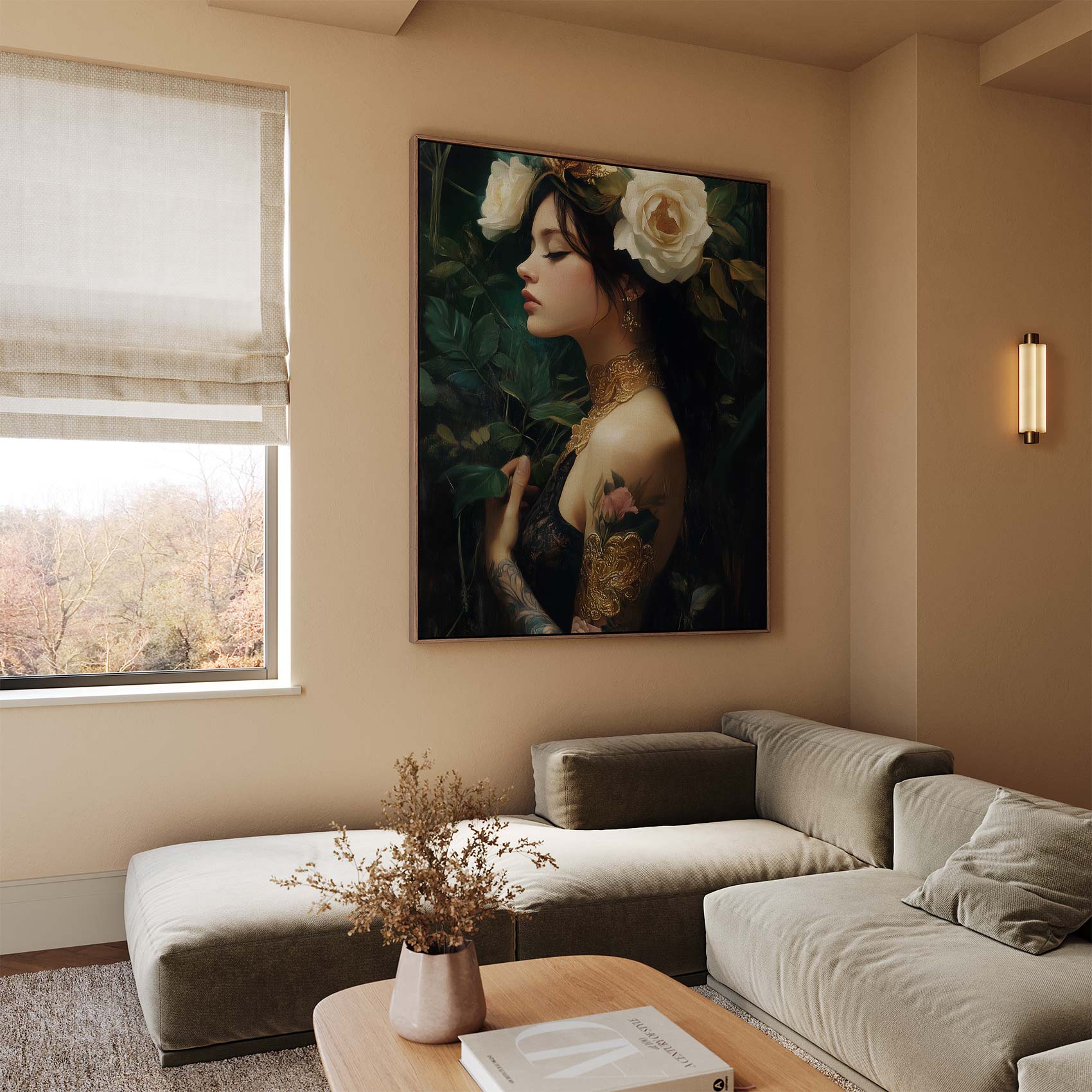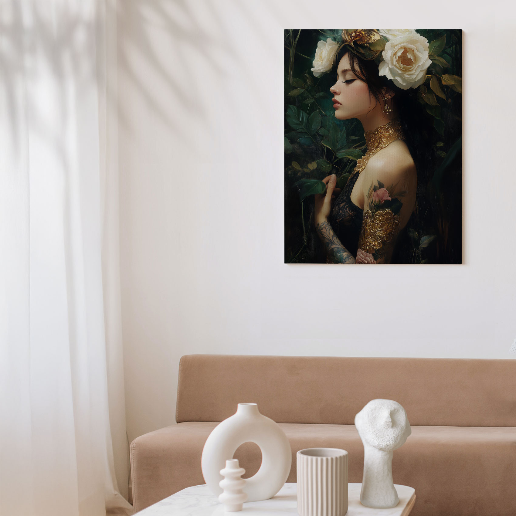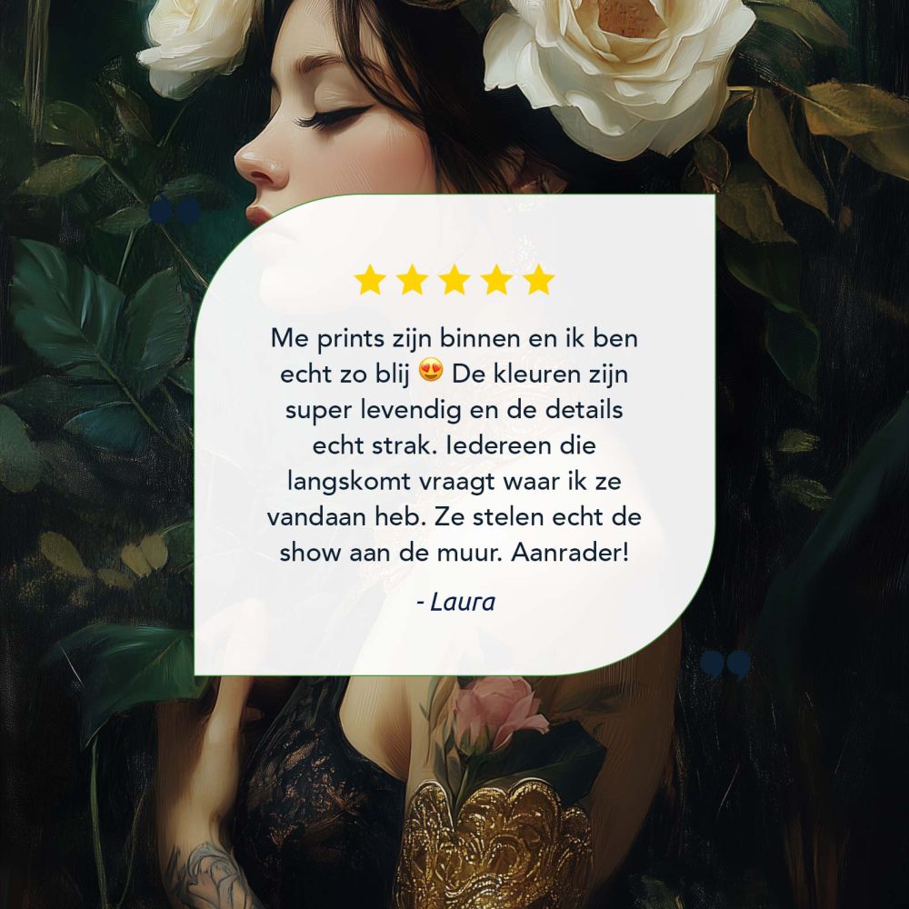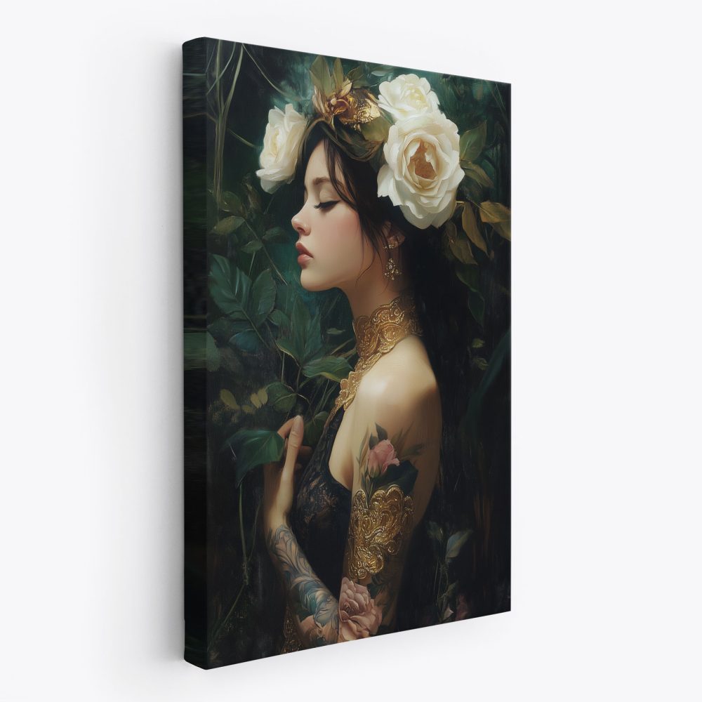 Terug naar collectie / Schilderijen / Bloemen Schilderij / Betoverende Rozenfee in Groen