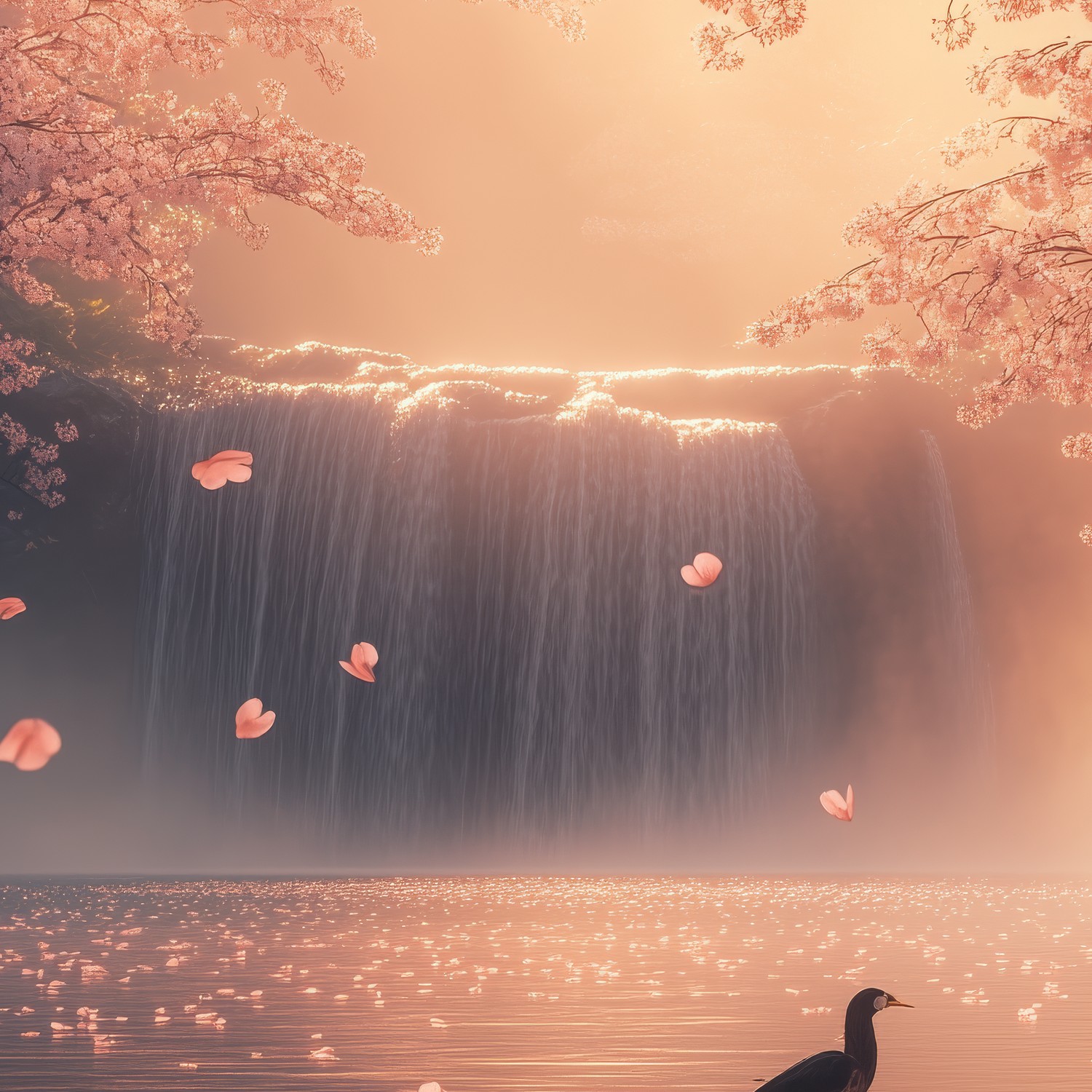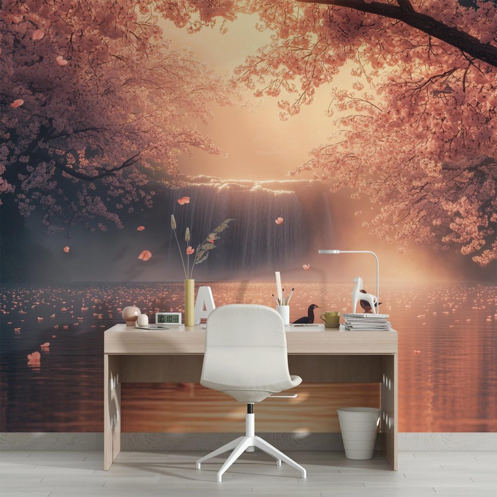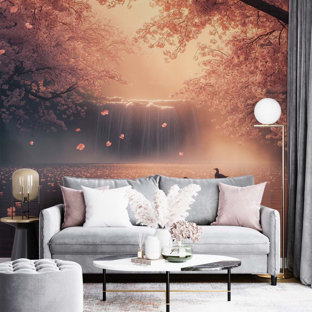Terug naar collectie / Behang / Betoverende waterval met eenden behang