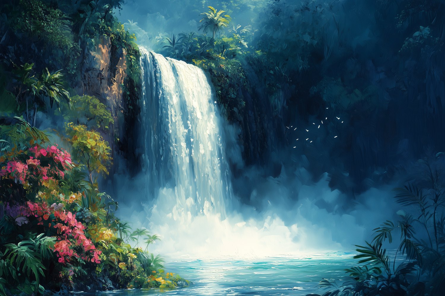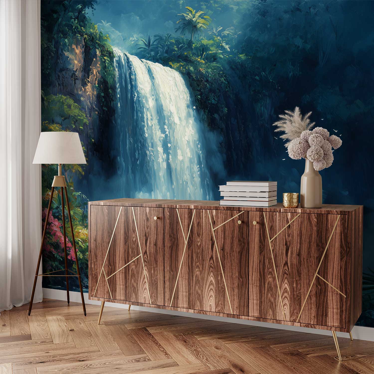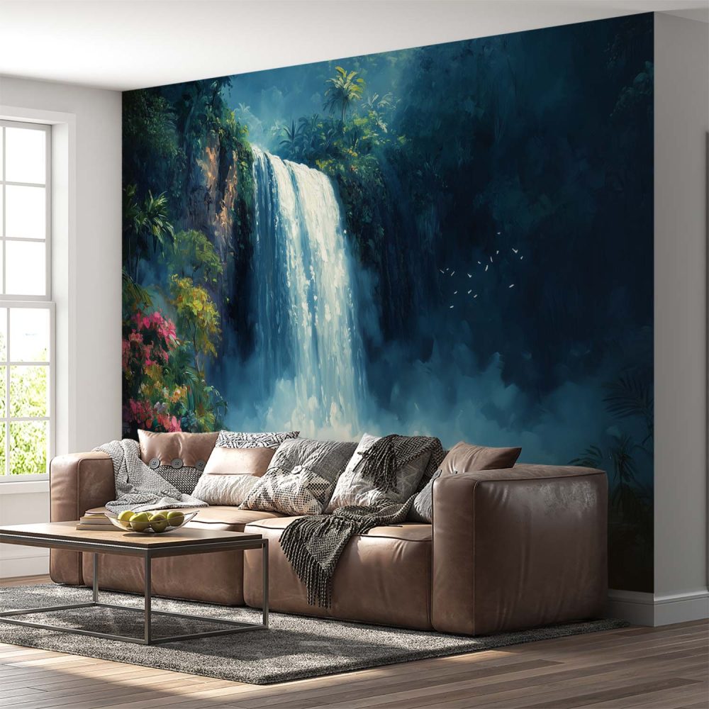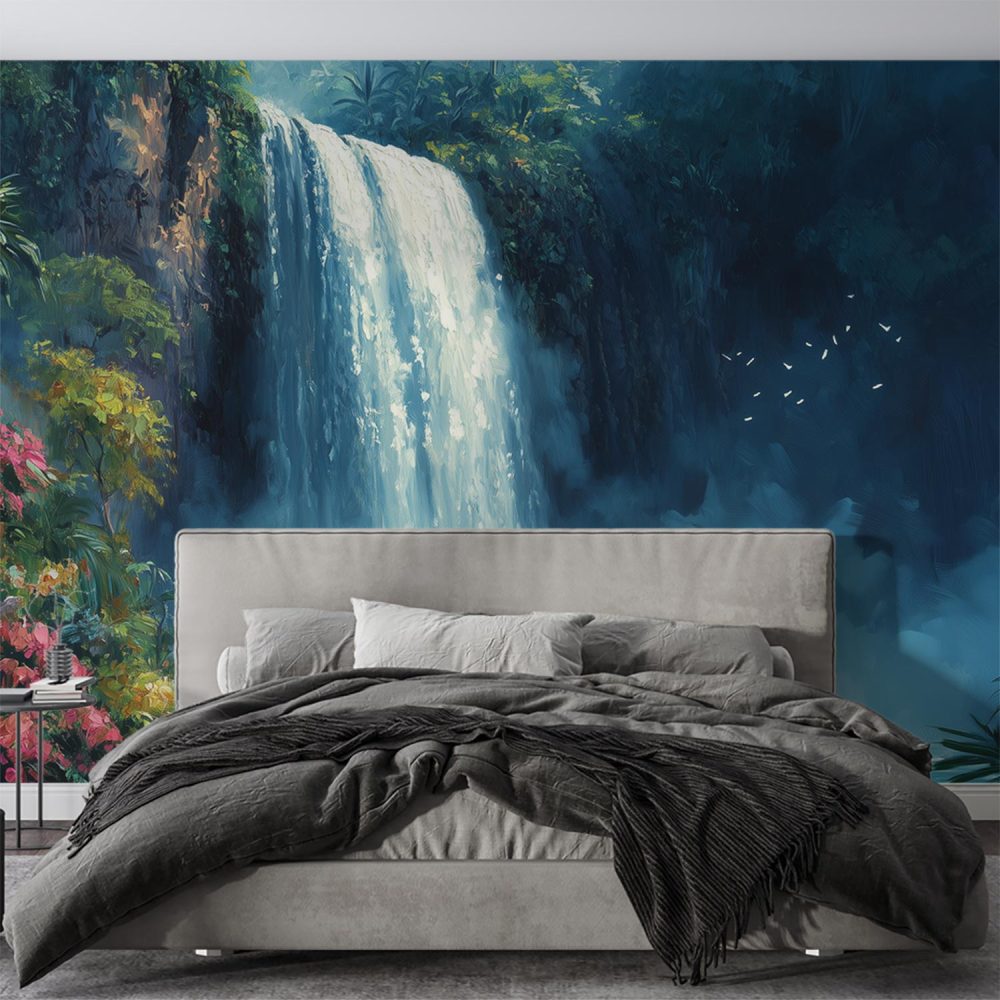 Terug naar collectie / Behang / Betoverende watervalbloementuin behang