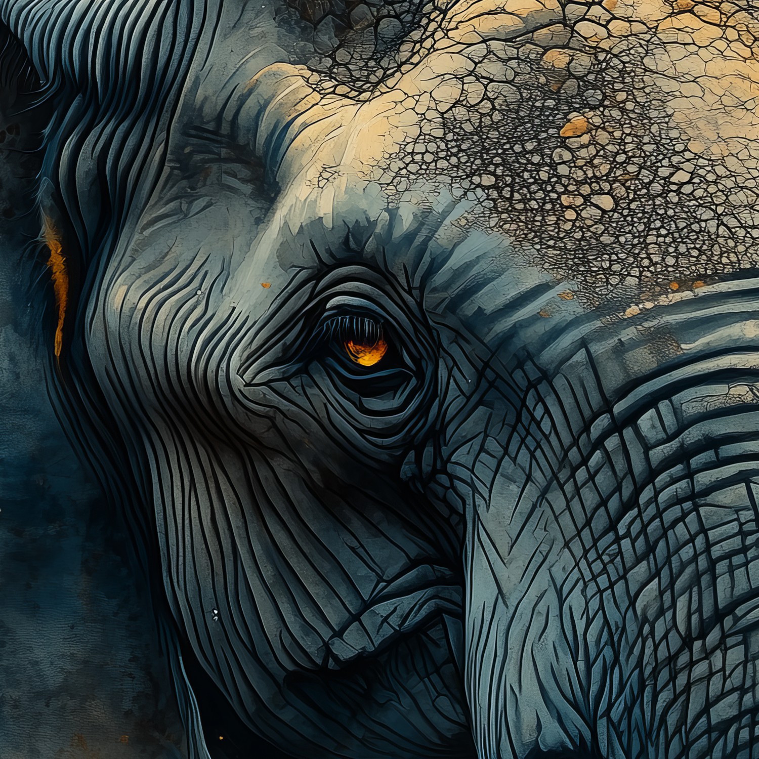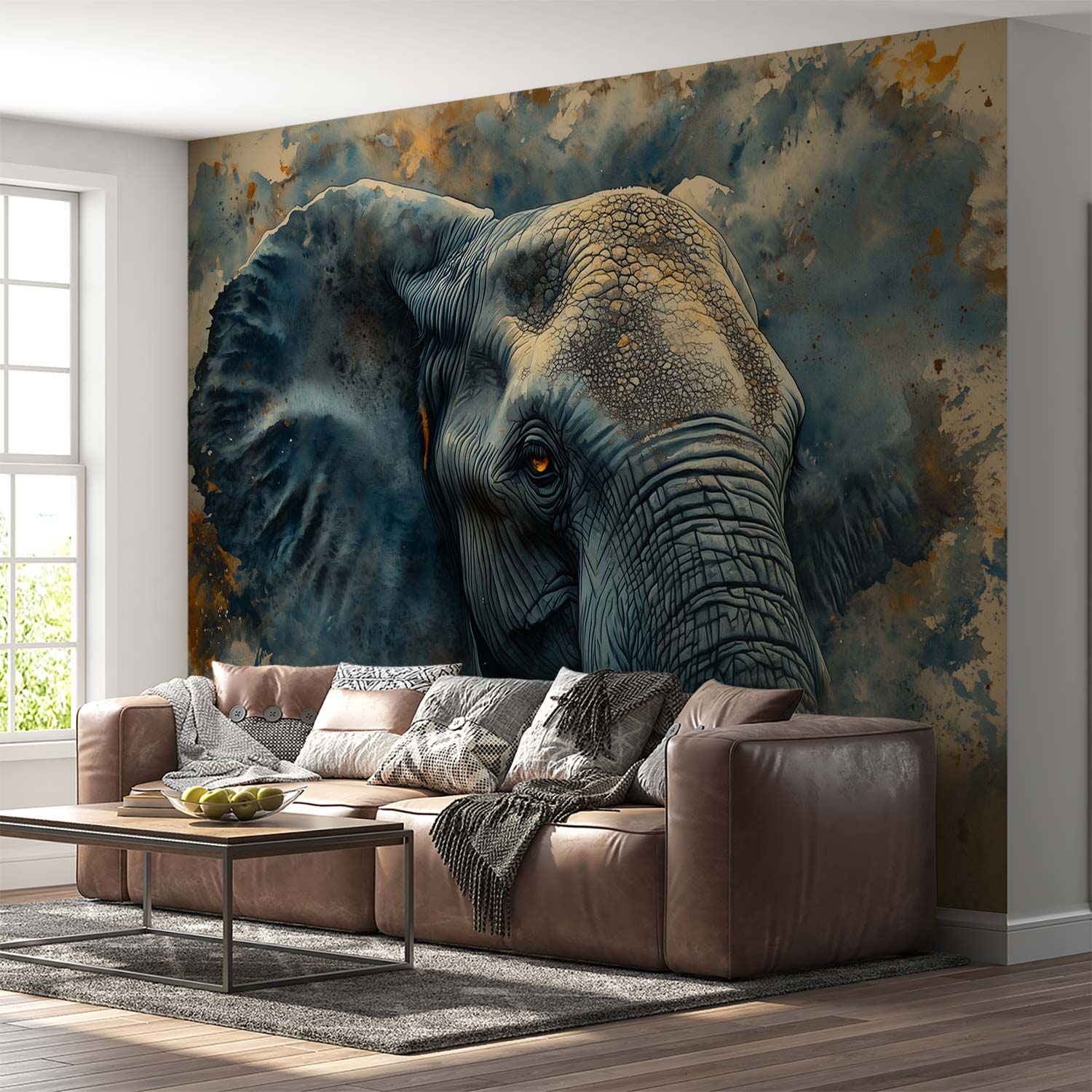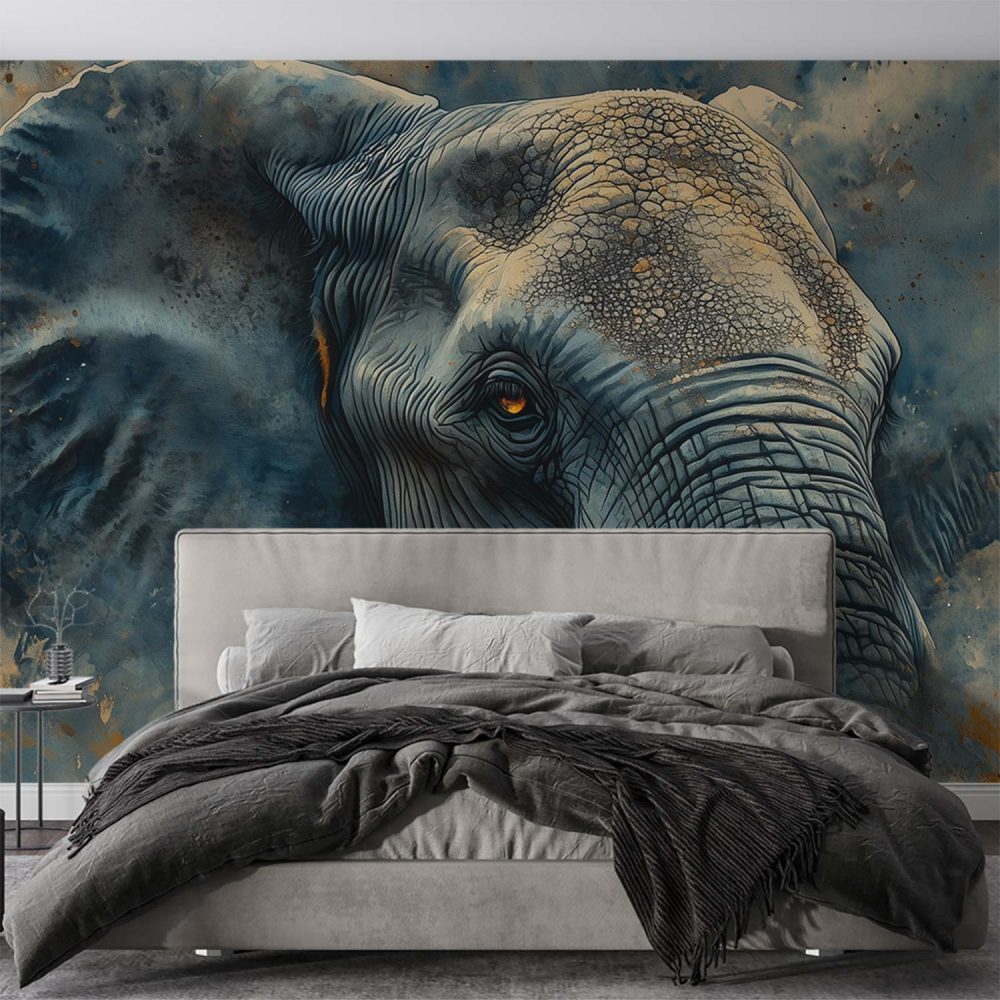 Blauwe olifant waterverfschilderij behang