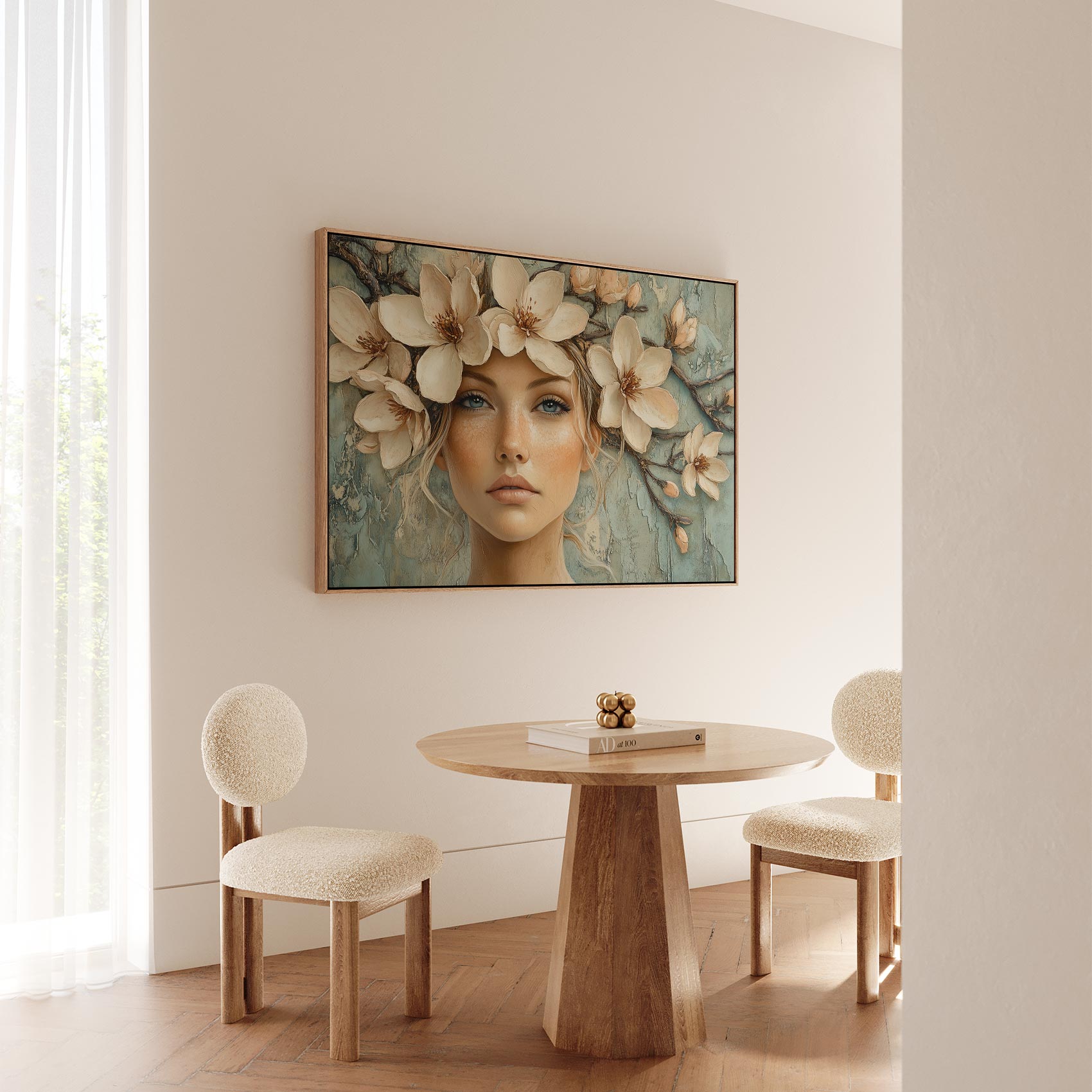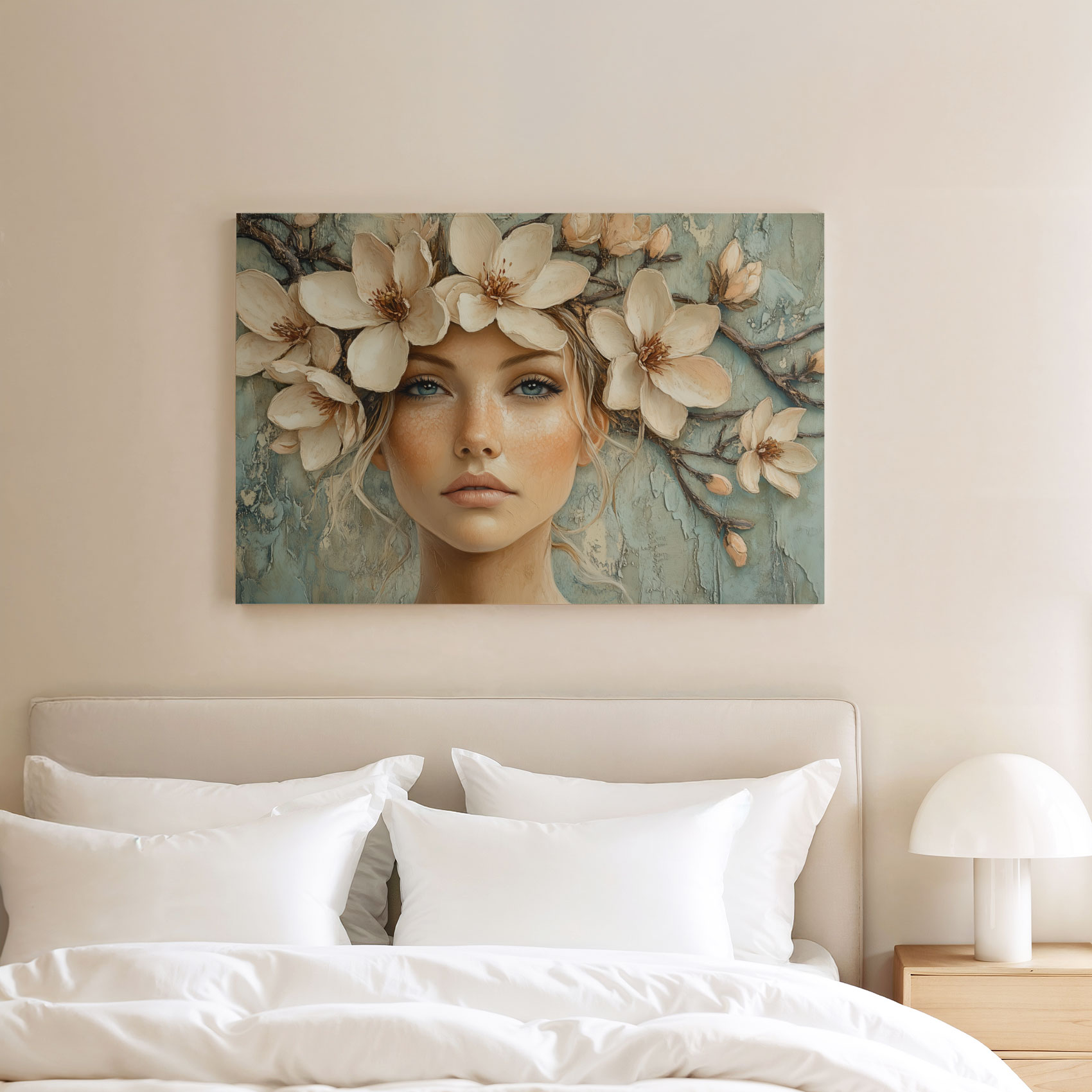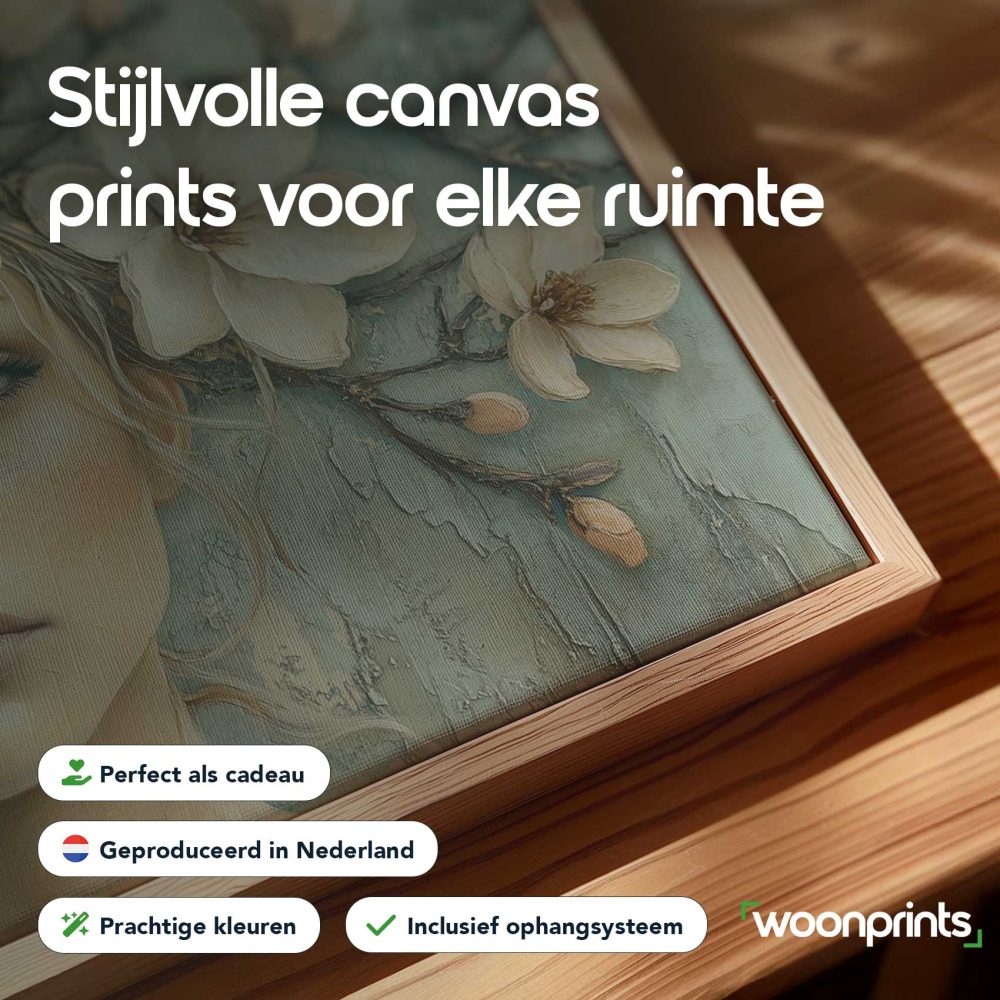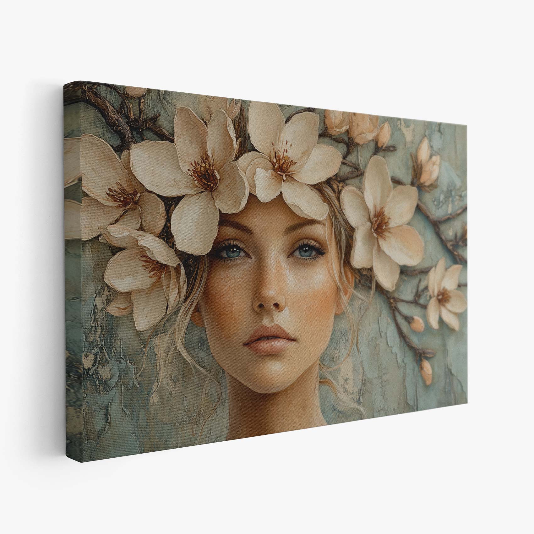 Terug naar collectie / Schilderijen / Bloemen Schilderij / Bloemenkrans vrouw serene blik