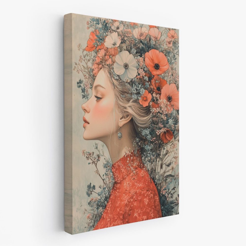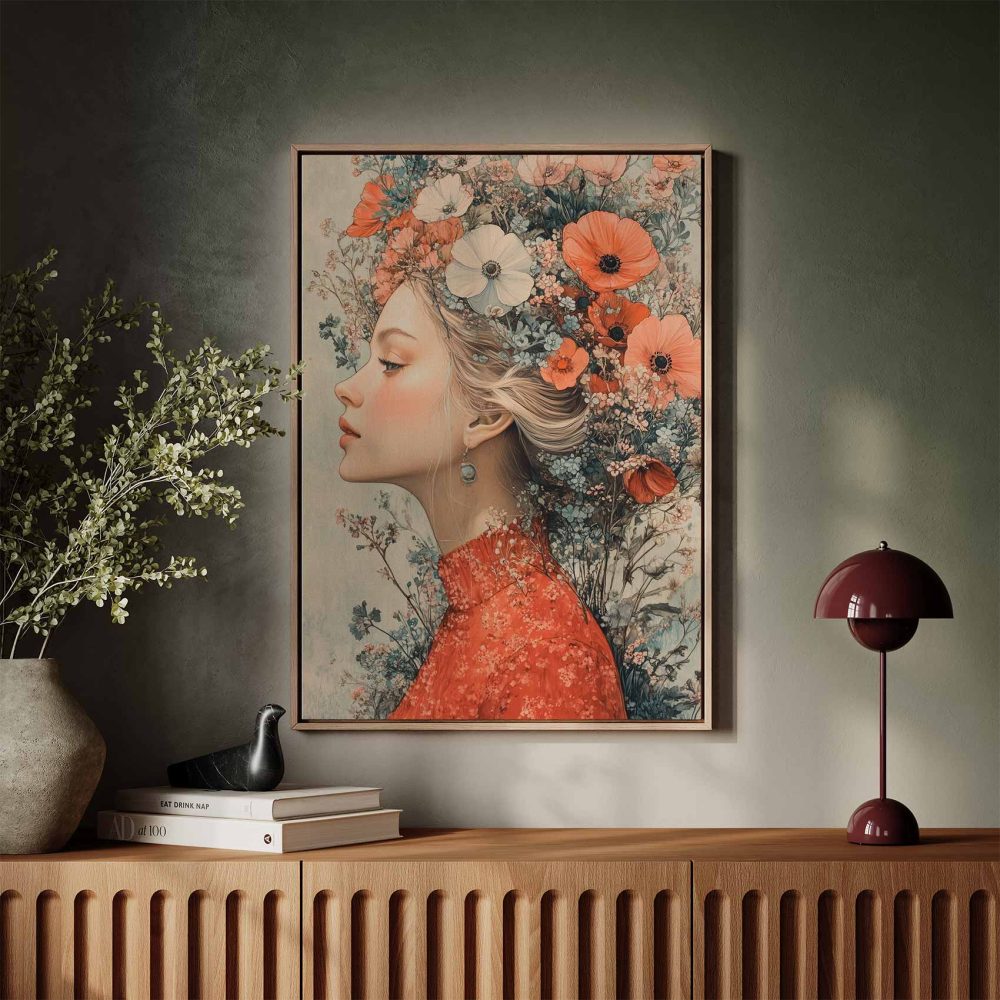 Terug naar collectie / Schilderijen / Bloemen Schilderij / Bloemenkroon met roze jurk