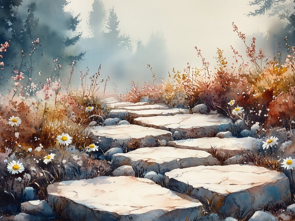 Bloemenpad in waterverf behang