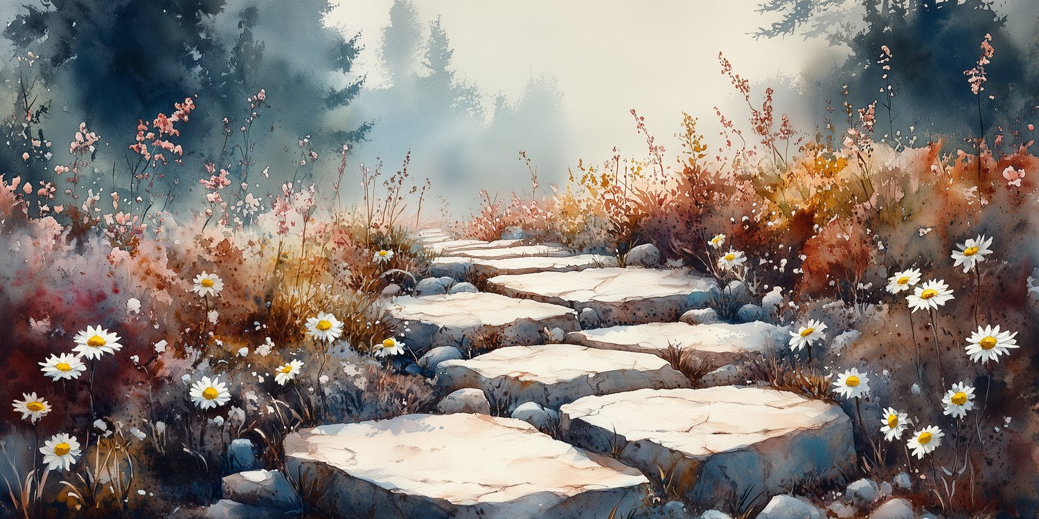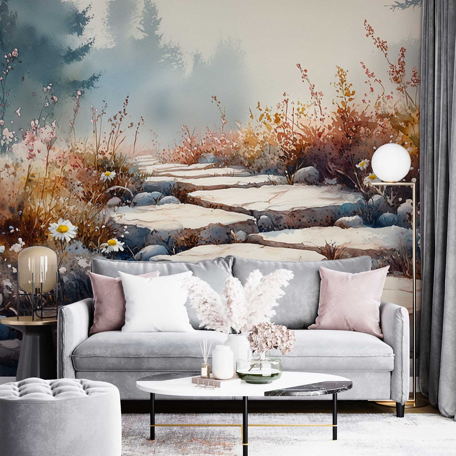 Terug naar collectie / Behang / Bloemenpad in waterverf behang