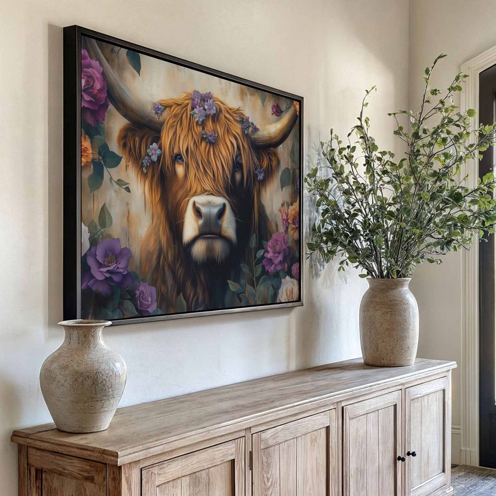 Terug naar collectie / Schilderijen / Bloemen Schilderij / Bloemrijke koe met hoorns