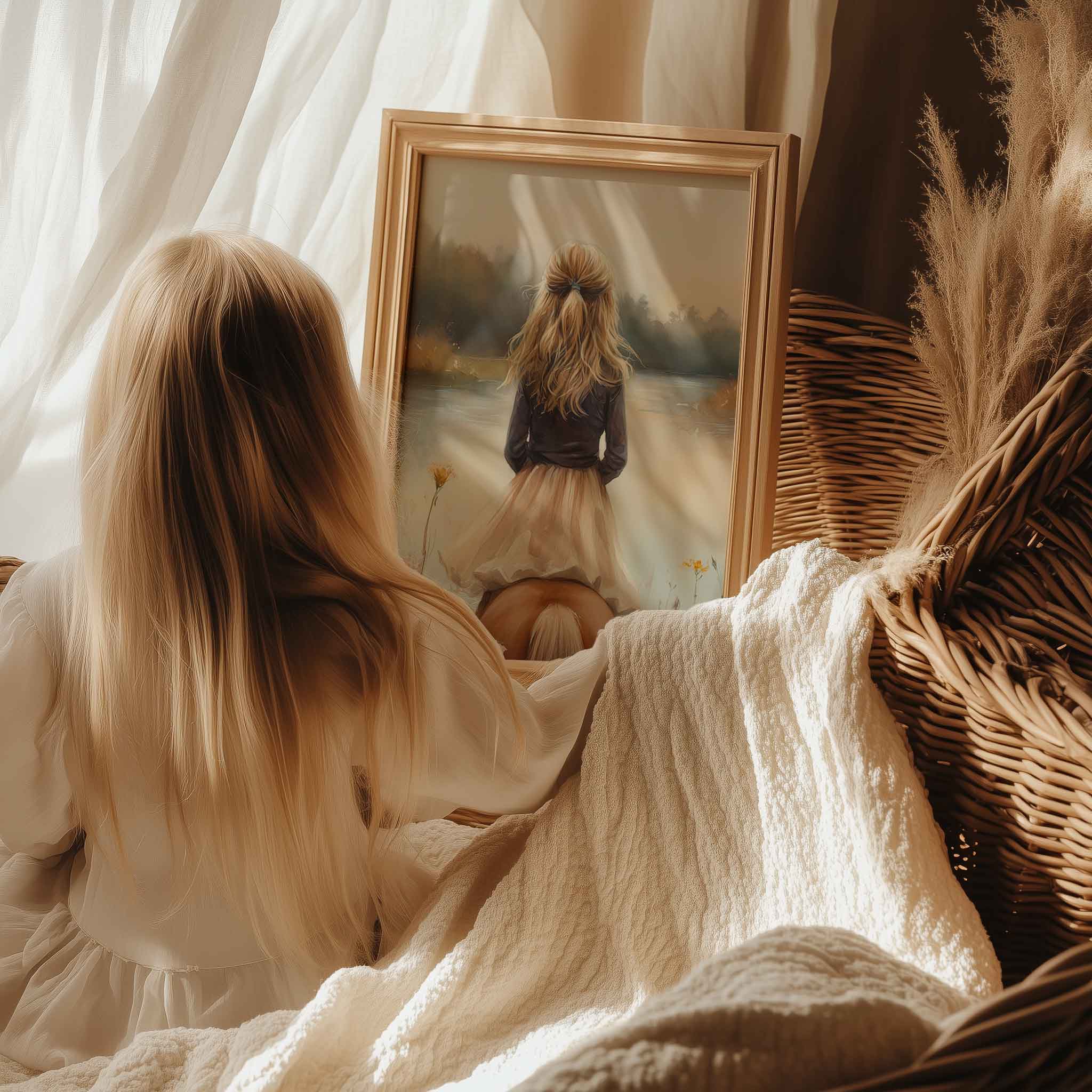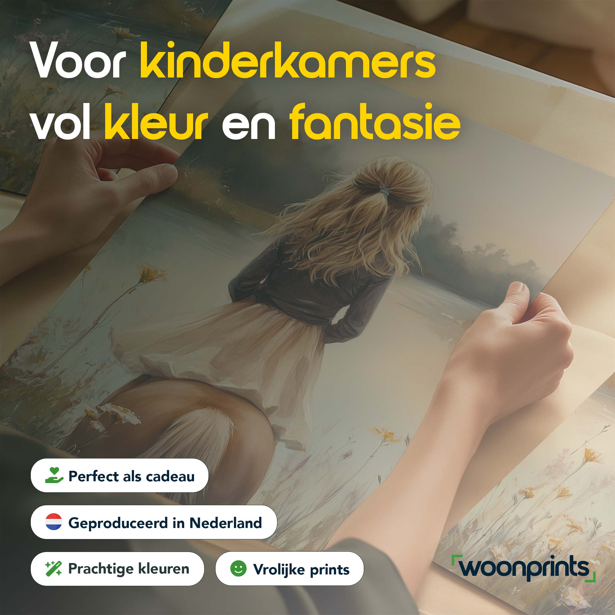 Terug naar collectie / Kinderkamer posters / Bloemen posters / Blonde Dromer in Bloemenveld – Pastel Schilderij