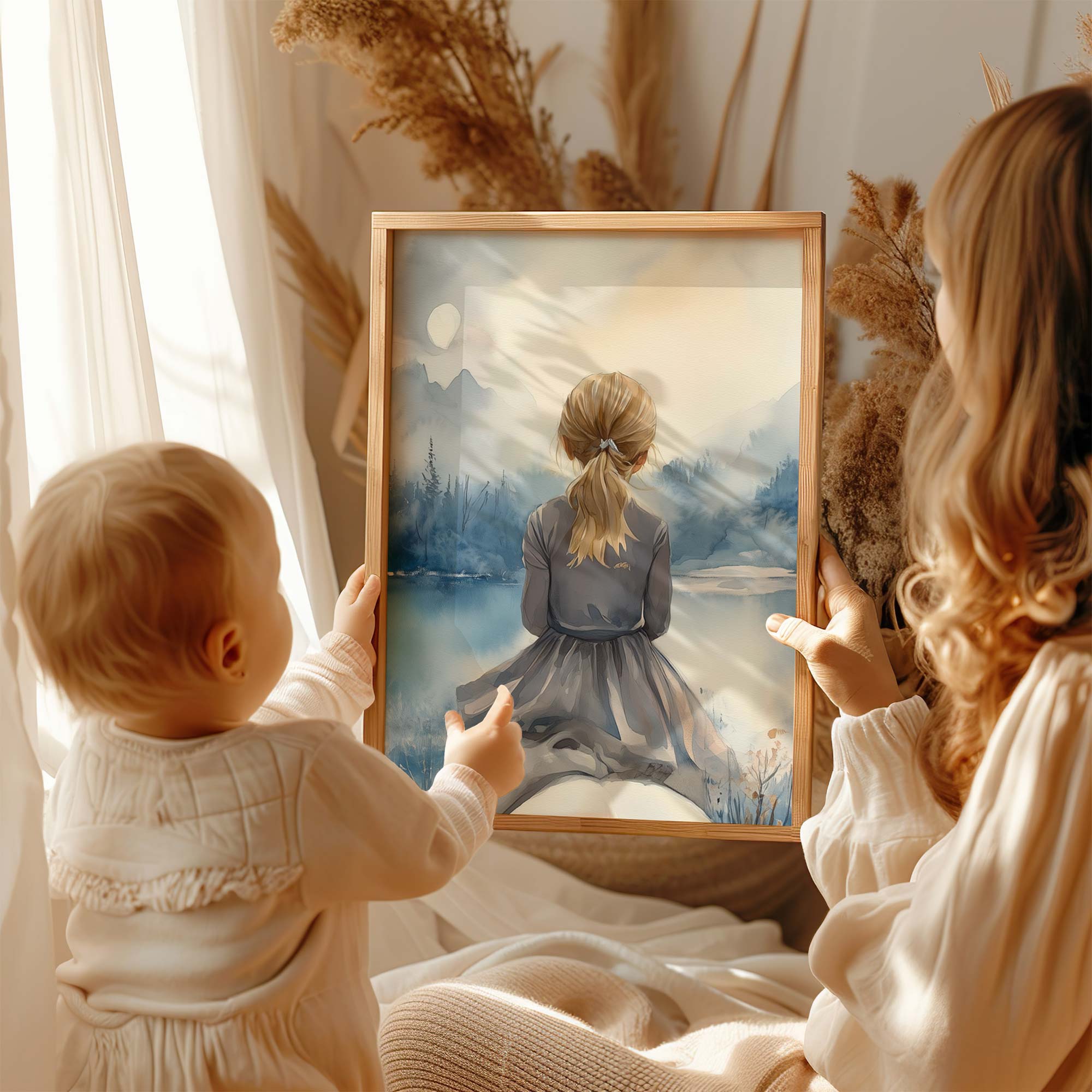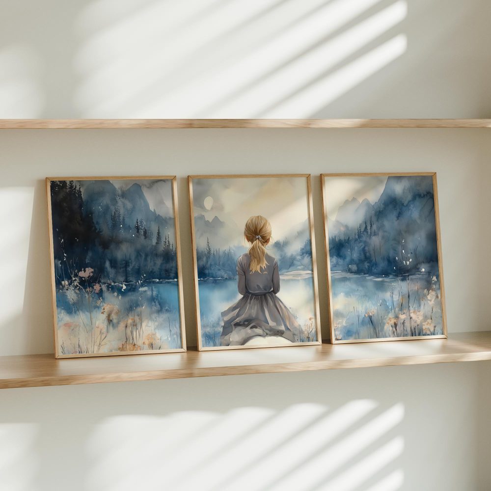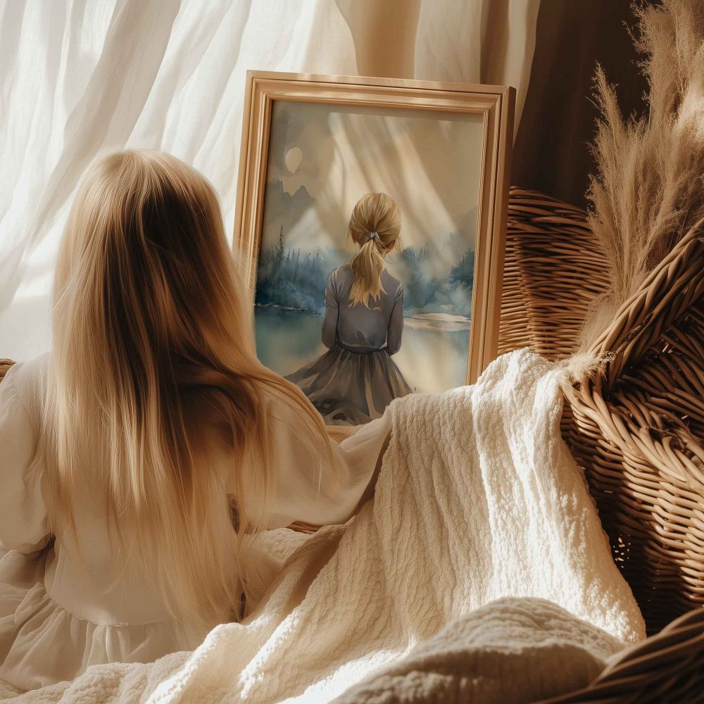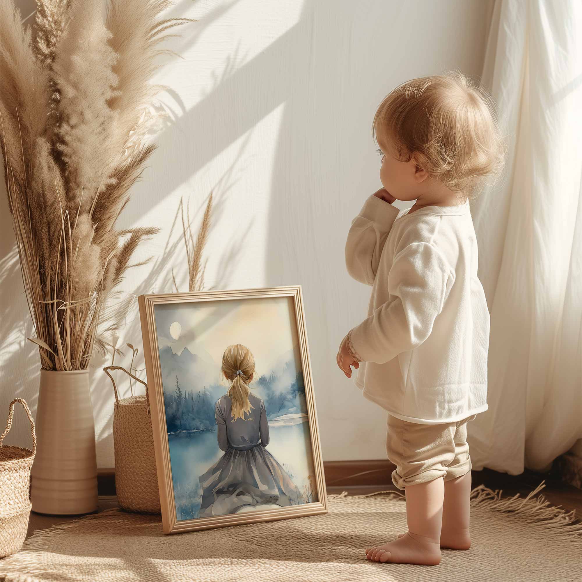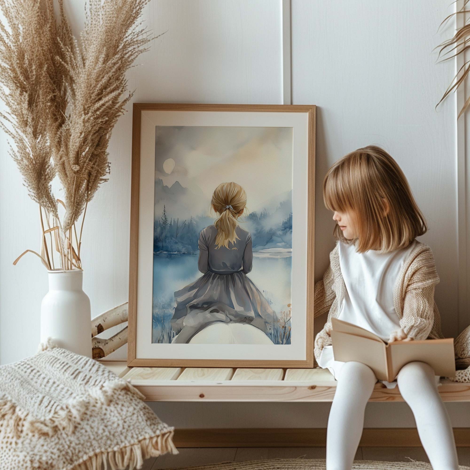 Terug naar collectie / Kinderkamer posters / Dieren posters / Blonde Droomster bij het Meer op Paard