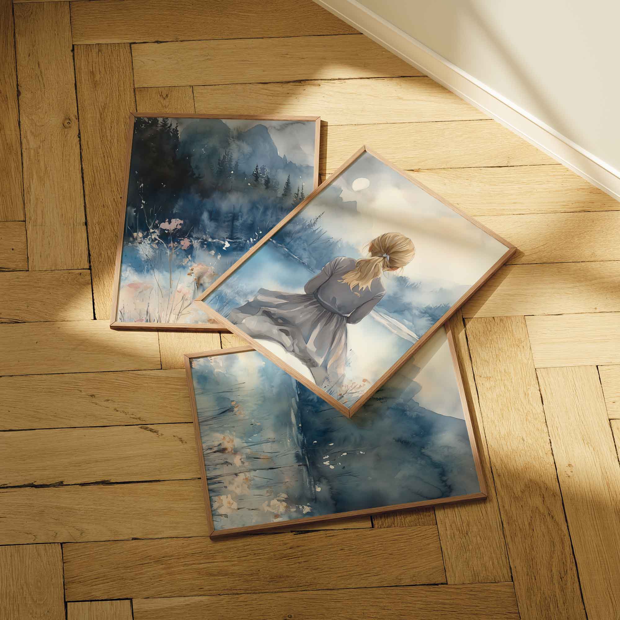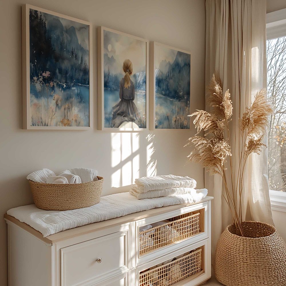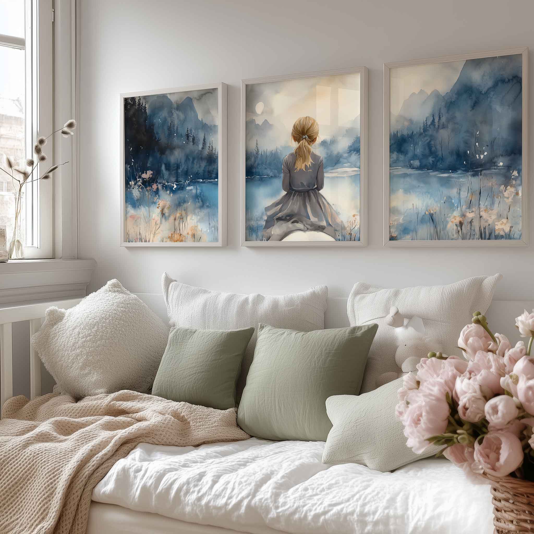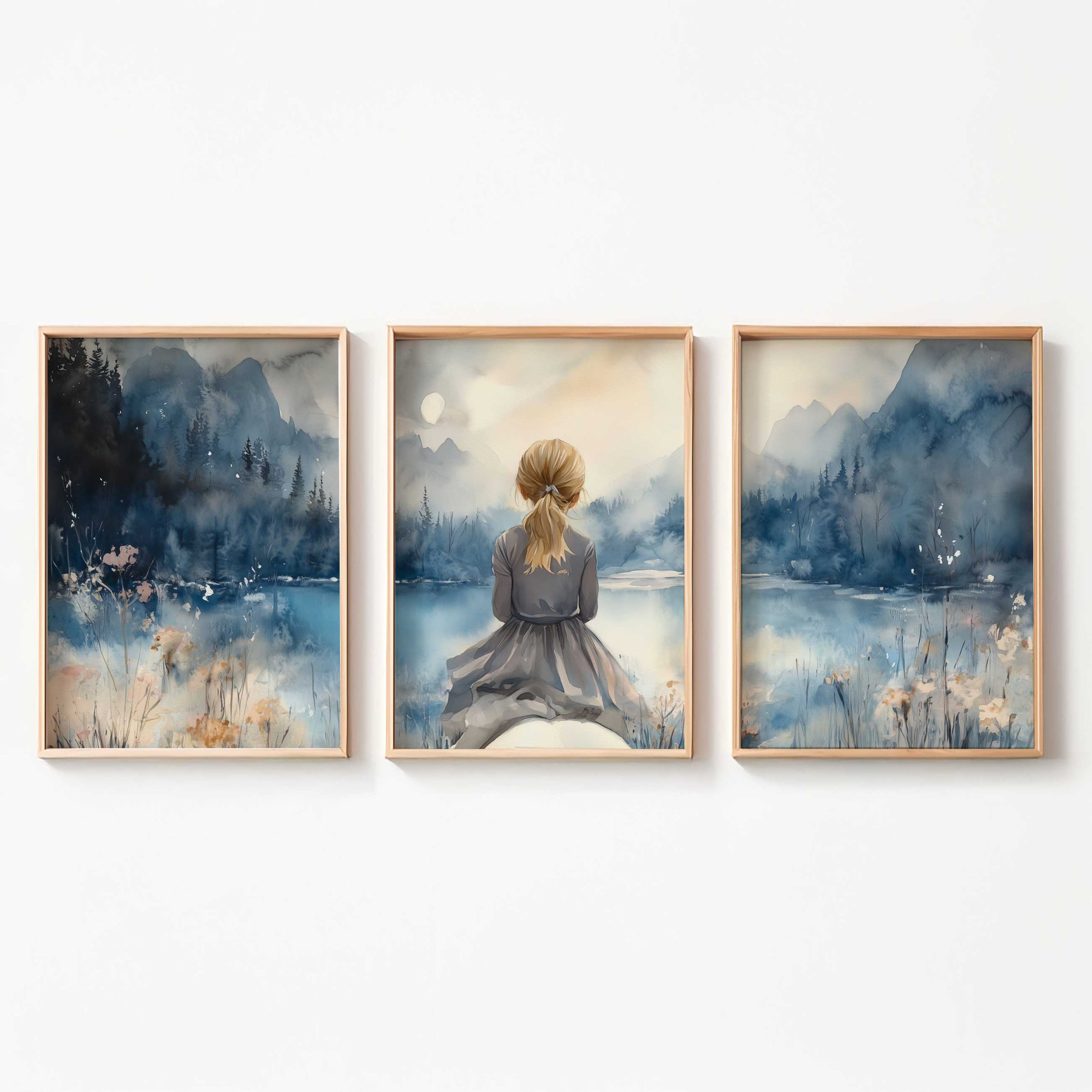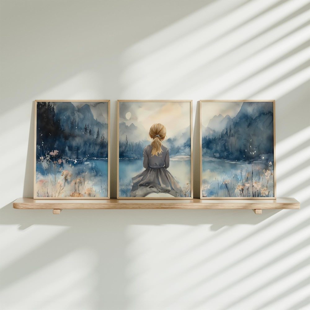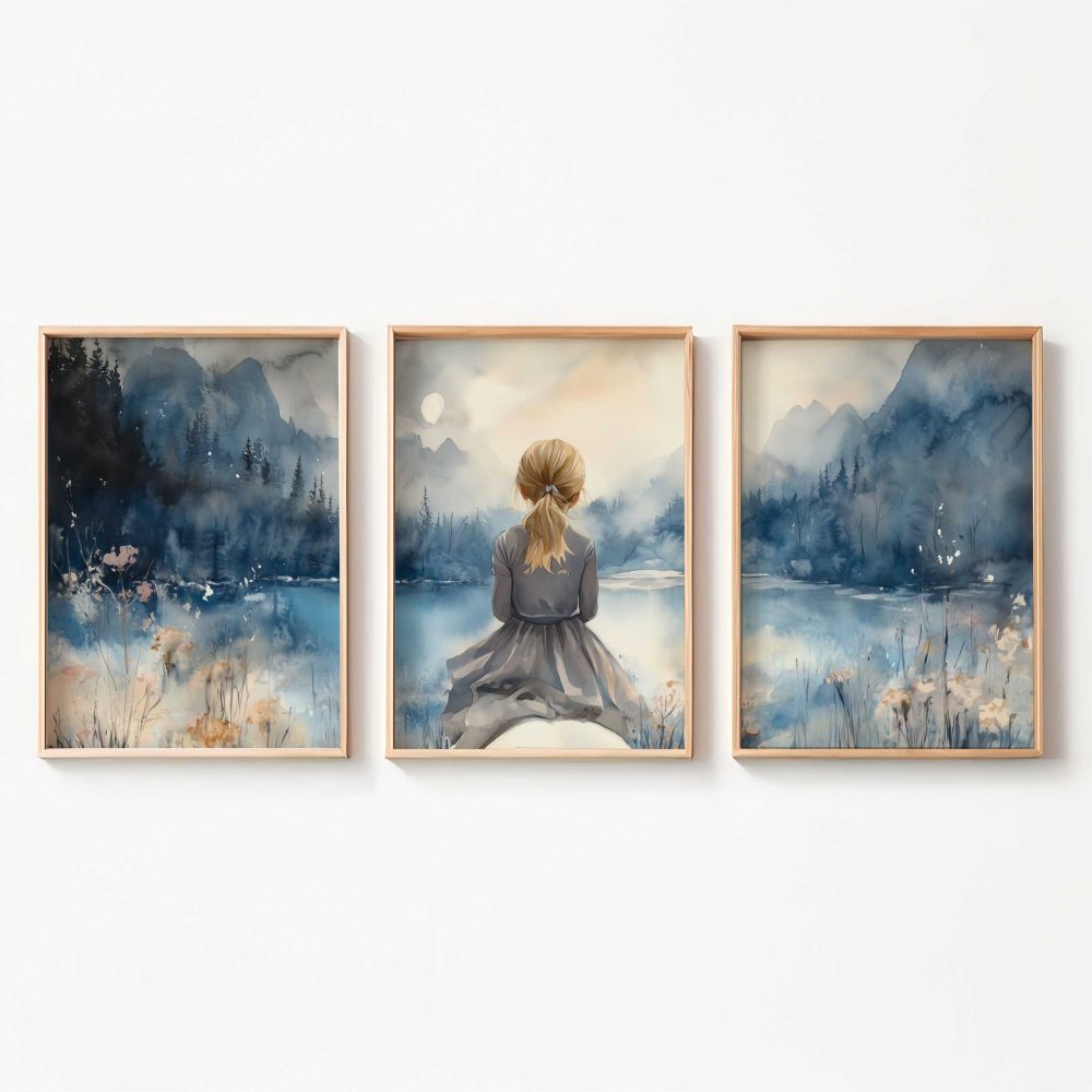 Terug naar collectie / Kinderkamer posters / Dieren posters / Blonde Droomster bij het Meer op Paard