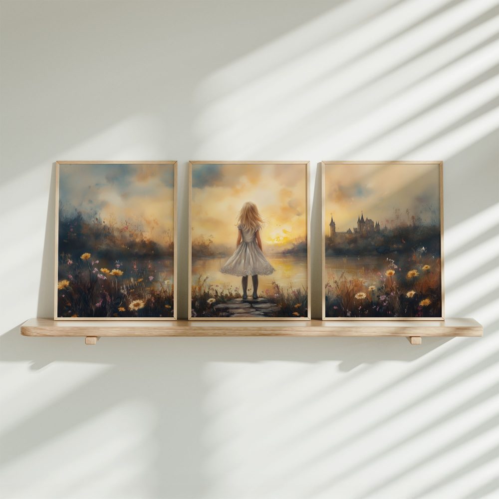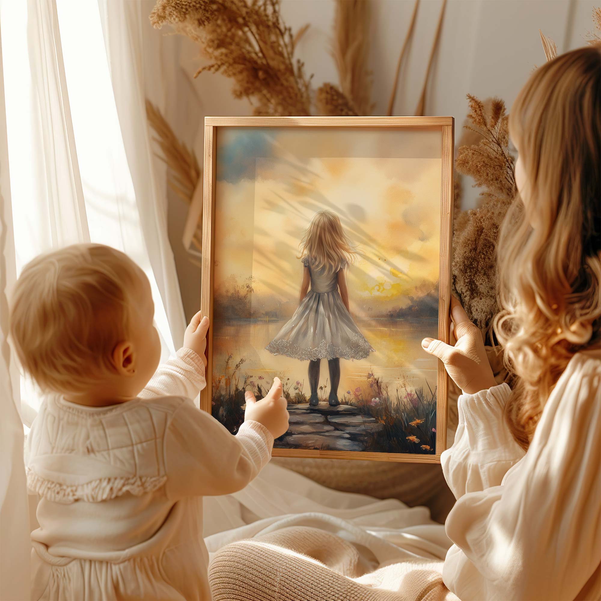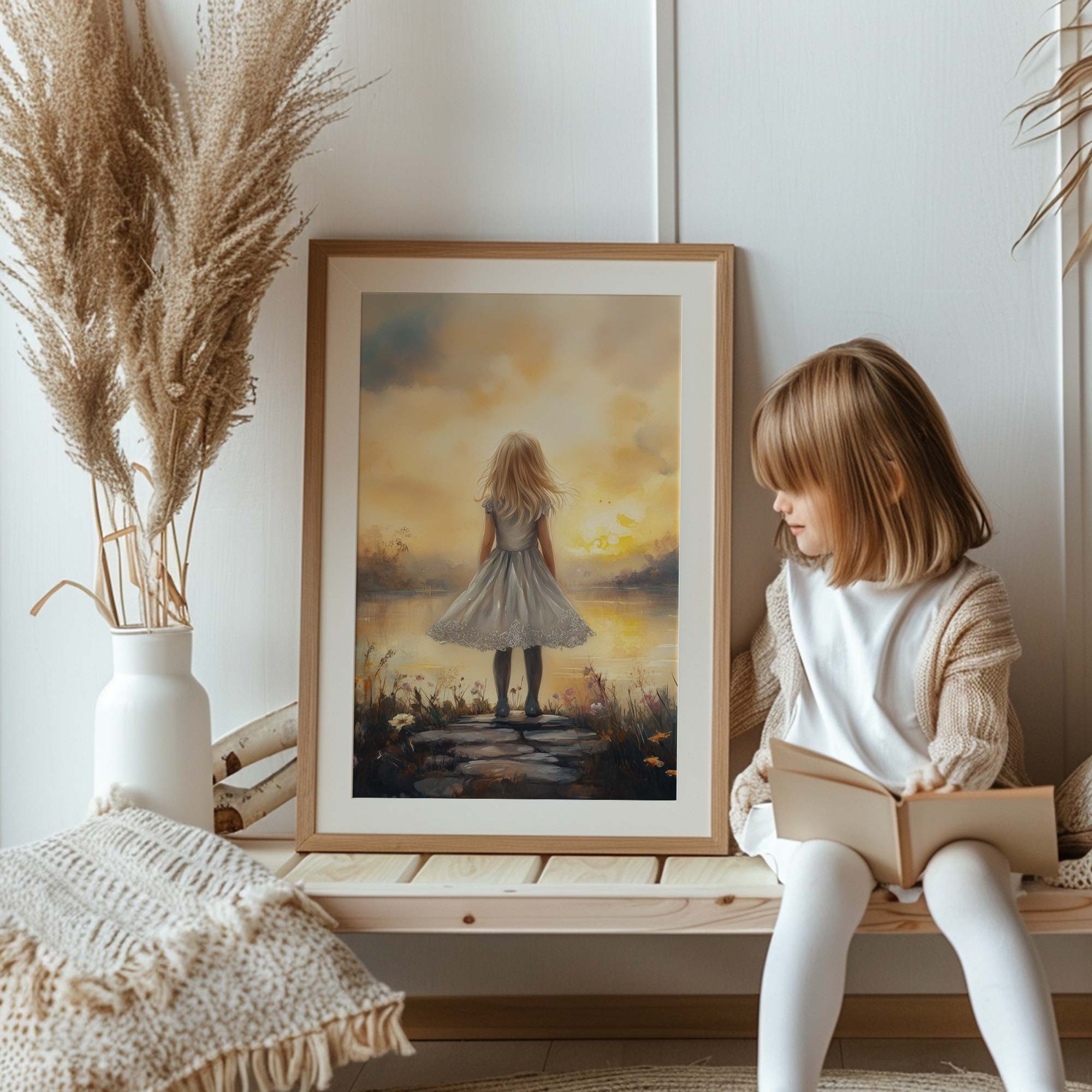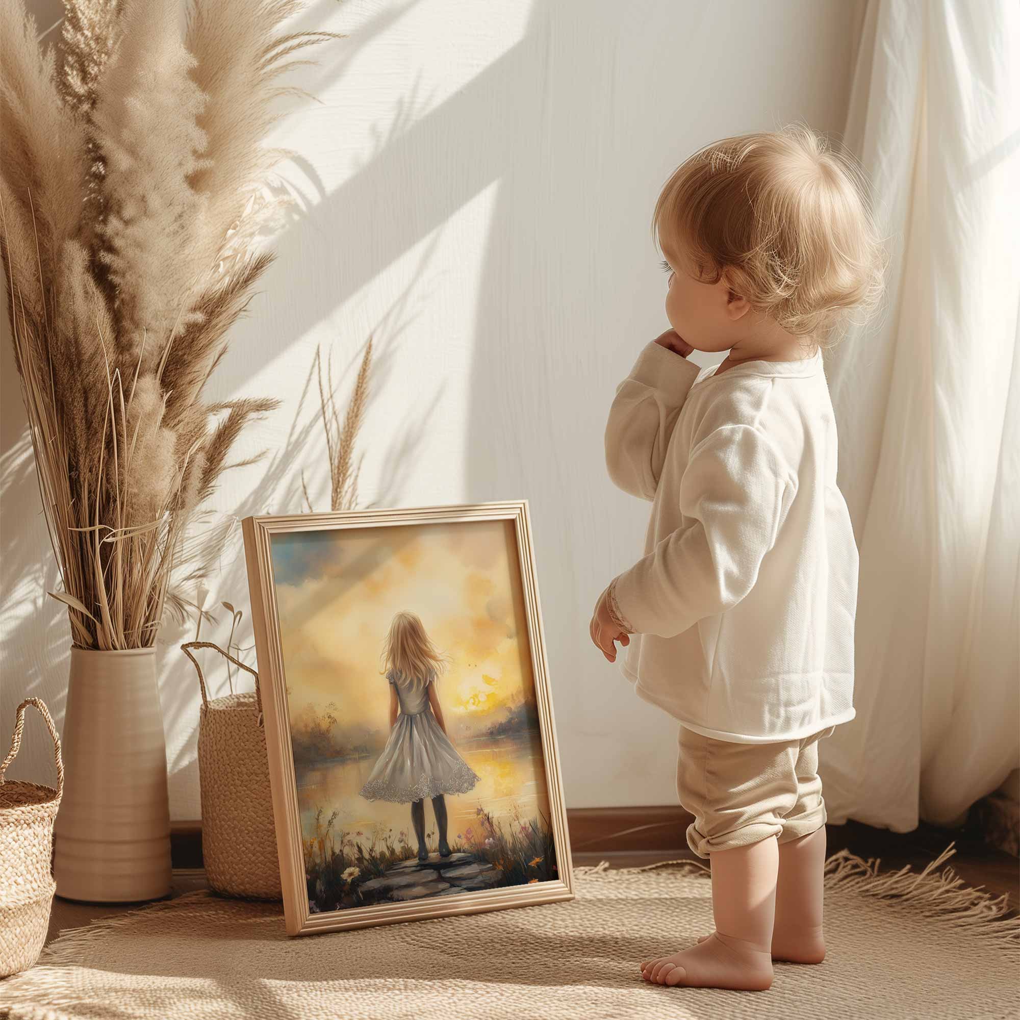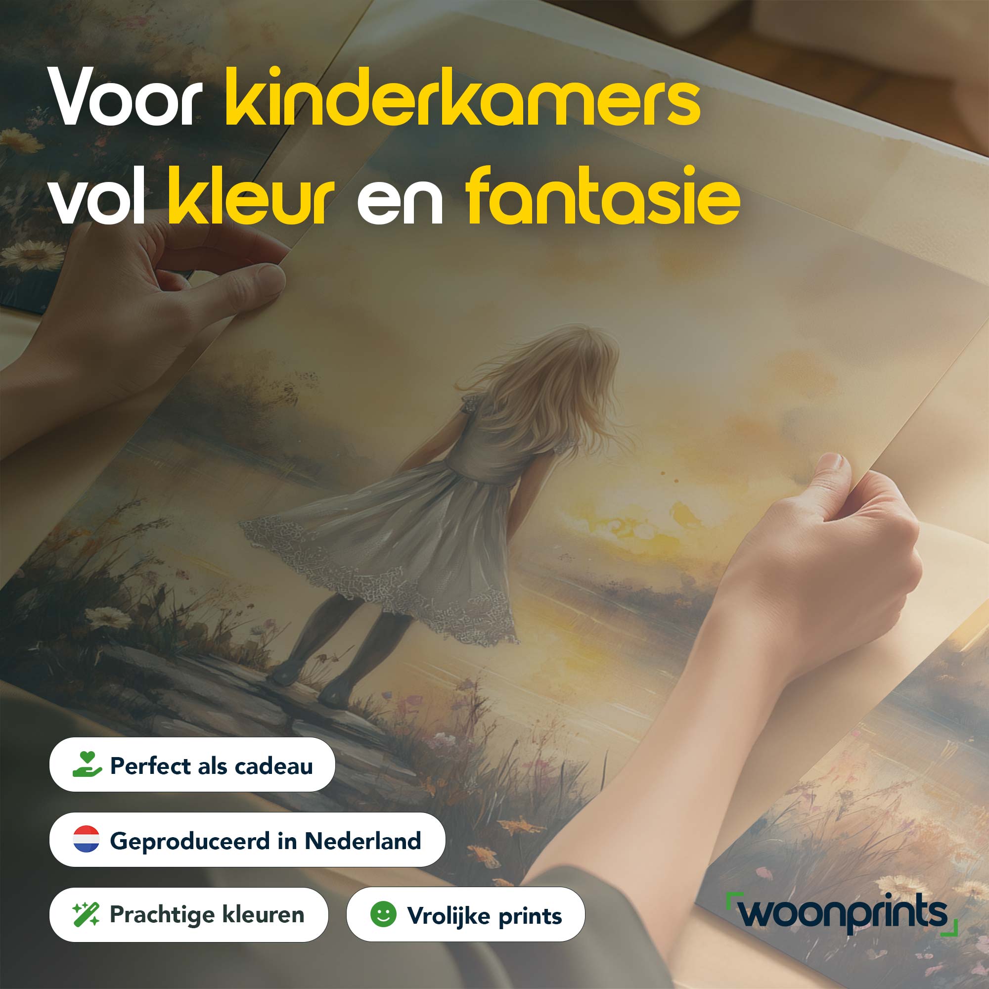 Terug naar collectie / Kinderkamer posters / Blonde Meisje in Wit aan het Water