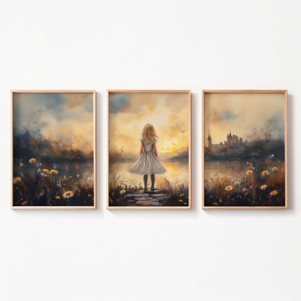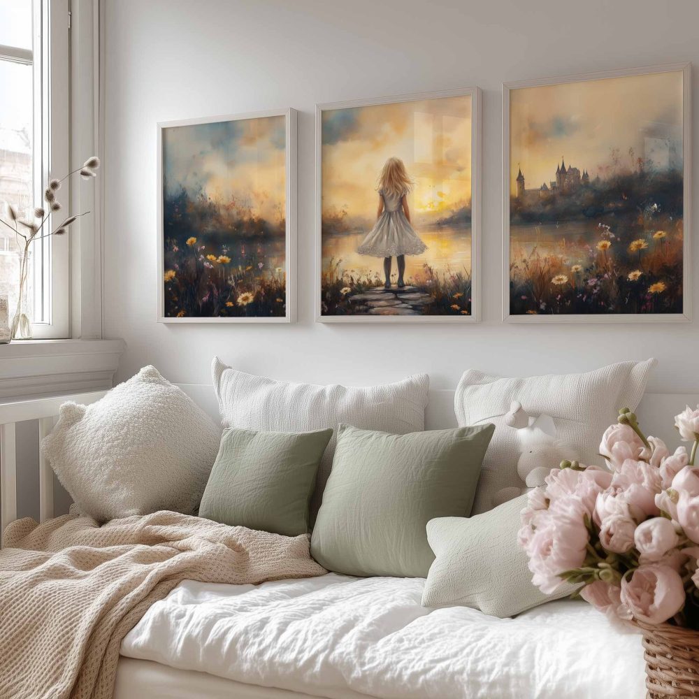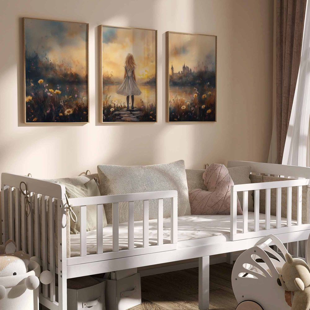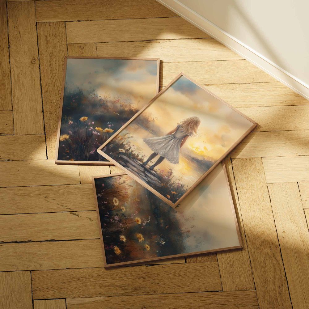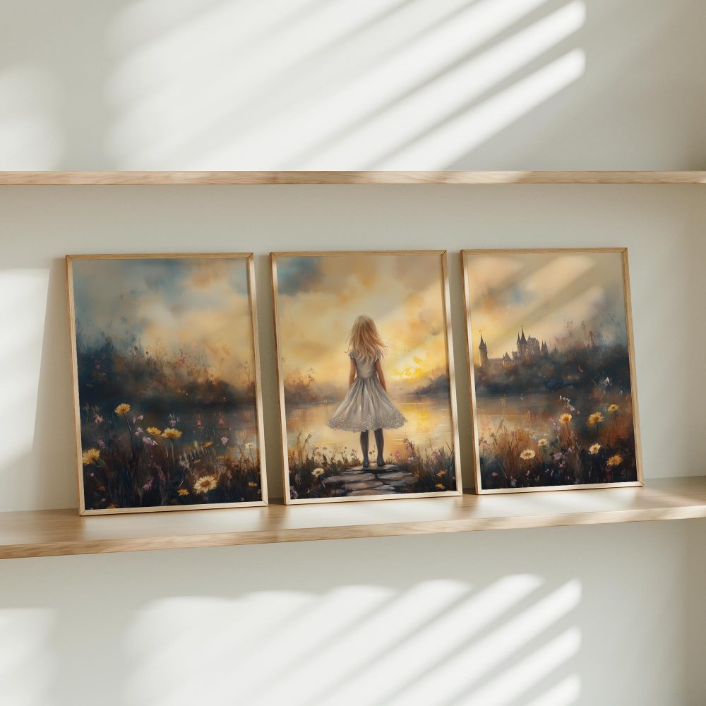 Terug naar collectie / Kinderkamer posters / Blonde Meisje in Wit aan het Water