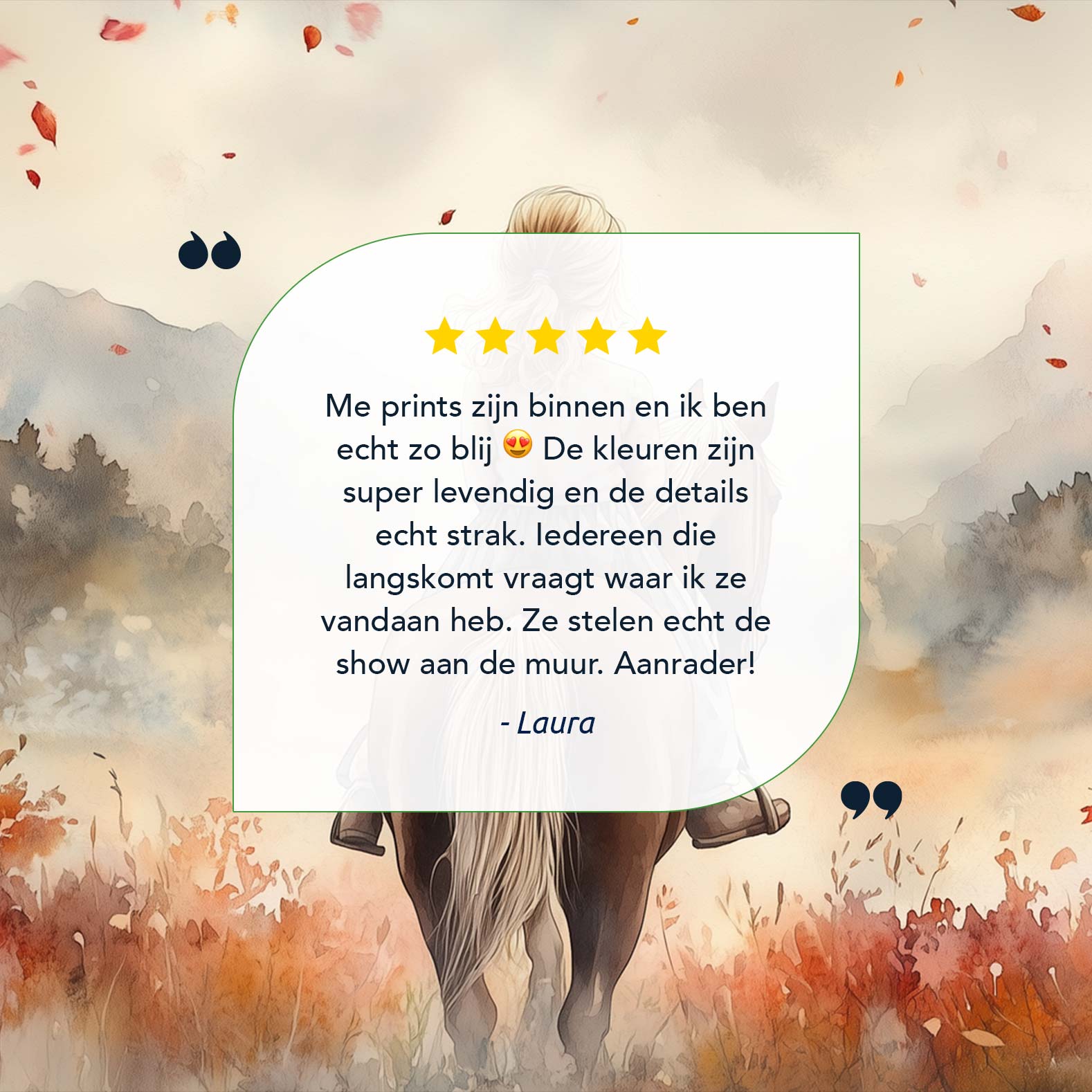 Blonde Meisje op Paard in Bloemenveld – Zachte Aquarel