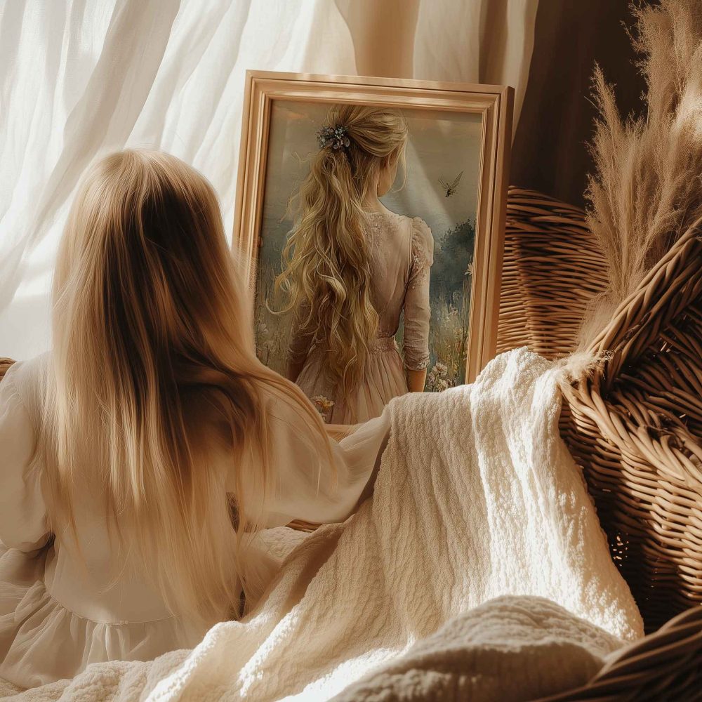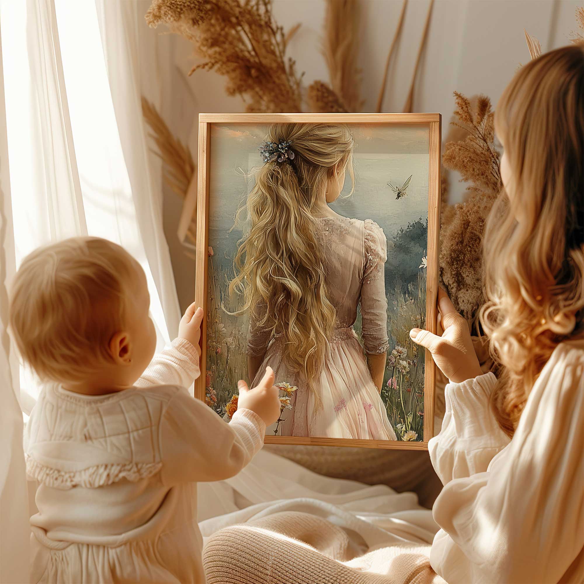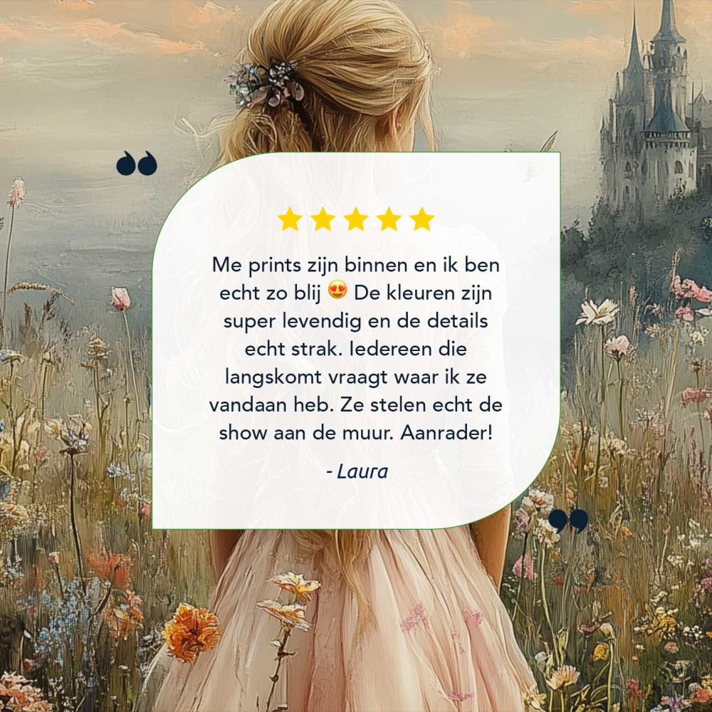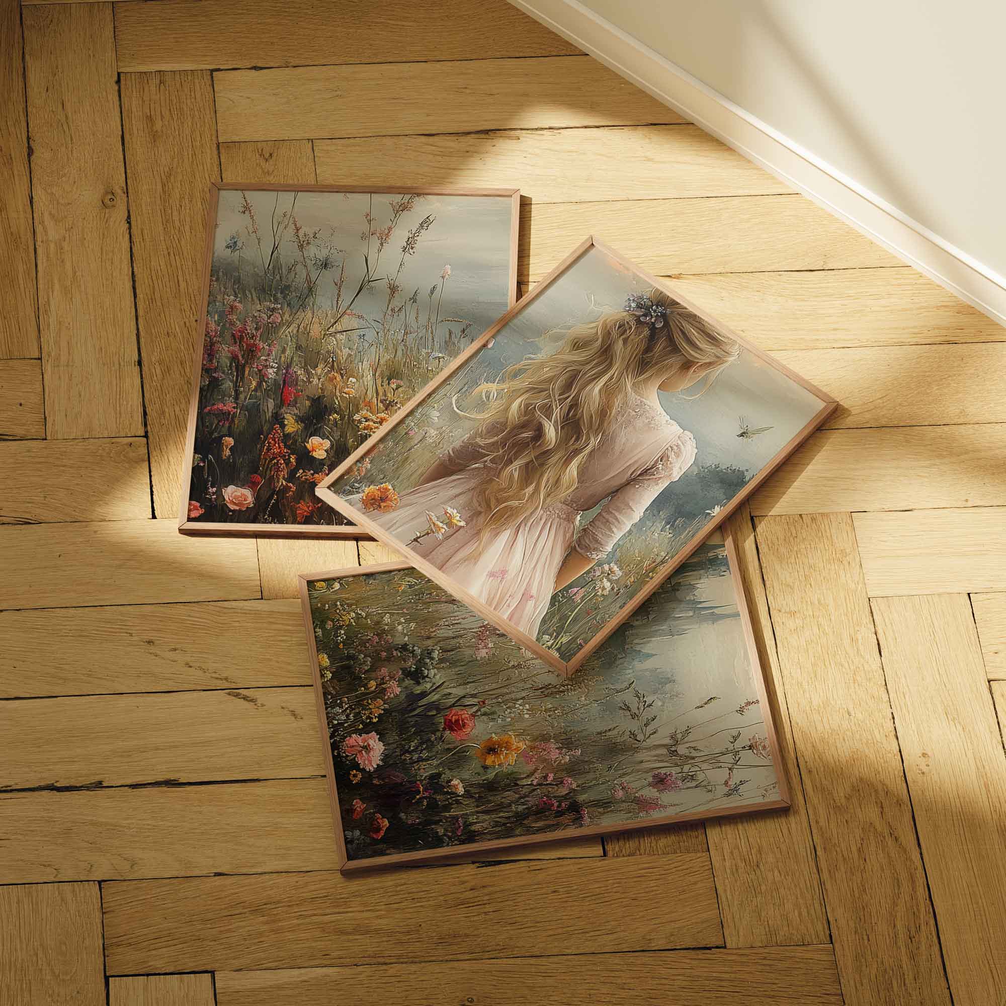 Terug naar collectie / Kinderkamer posters / Bloemen posters / Blonde Prinses in Bloemenveld bij Kasteel