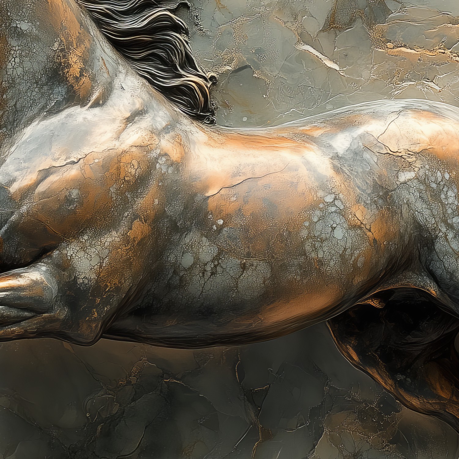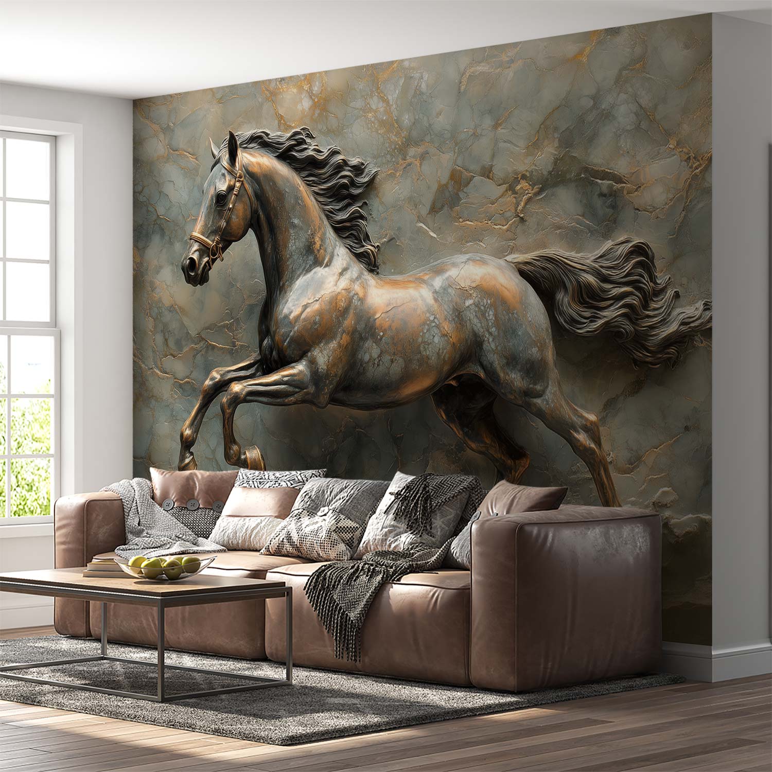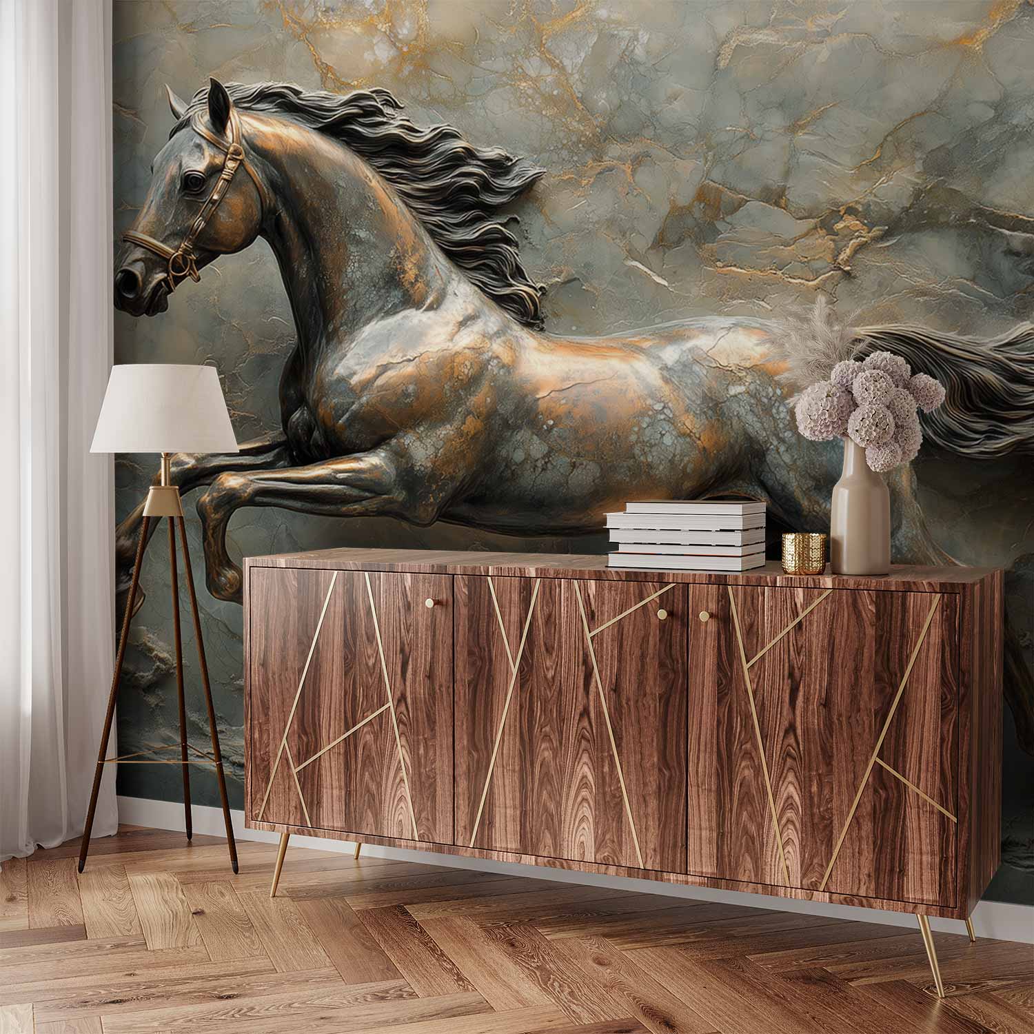 Bronzen galopperend paardenbeeld behang