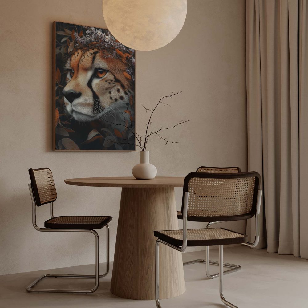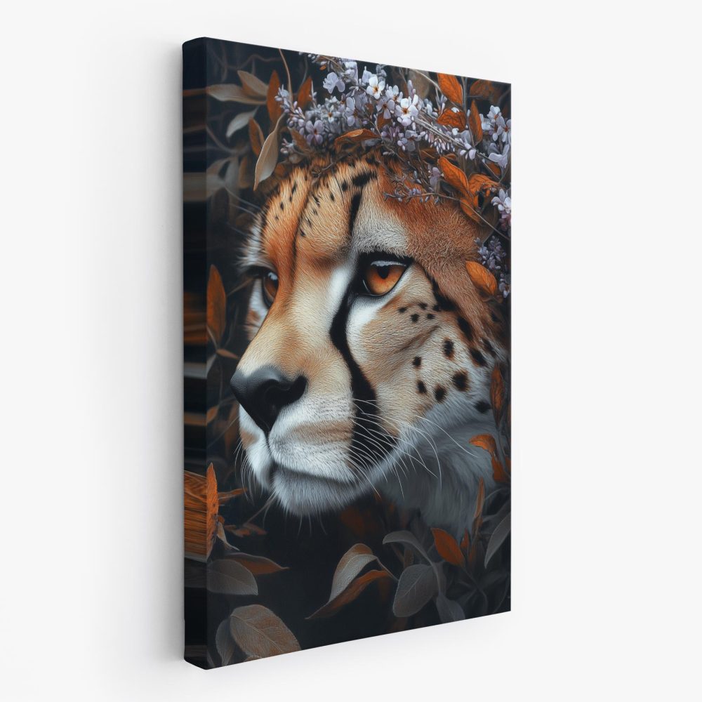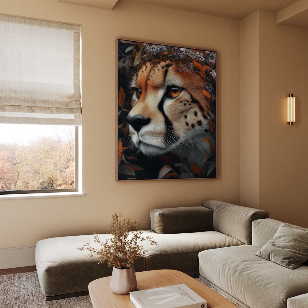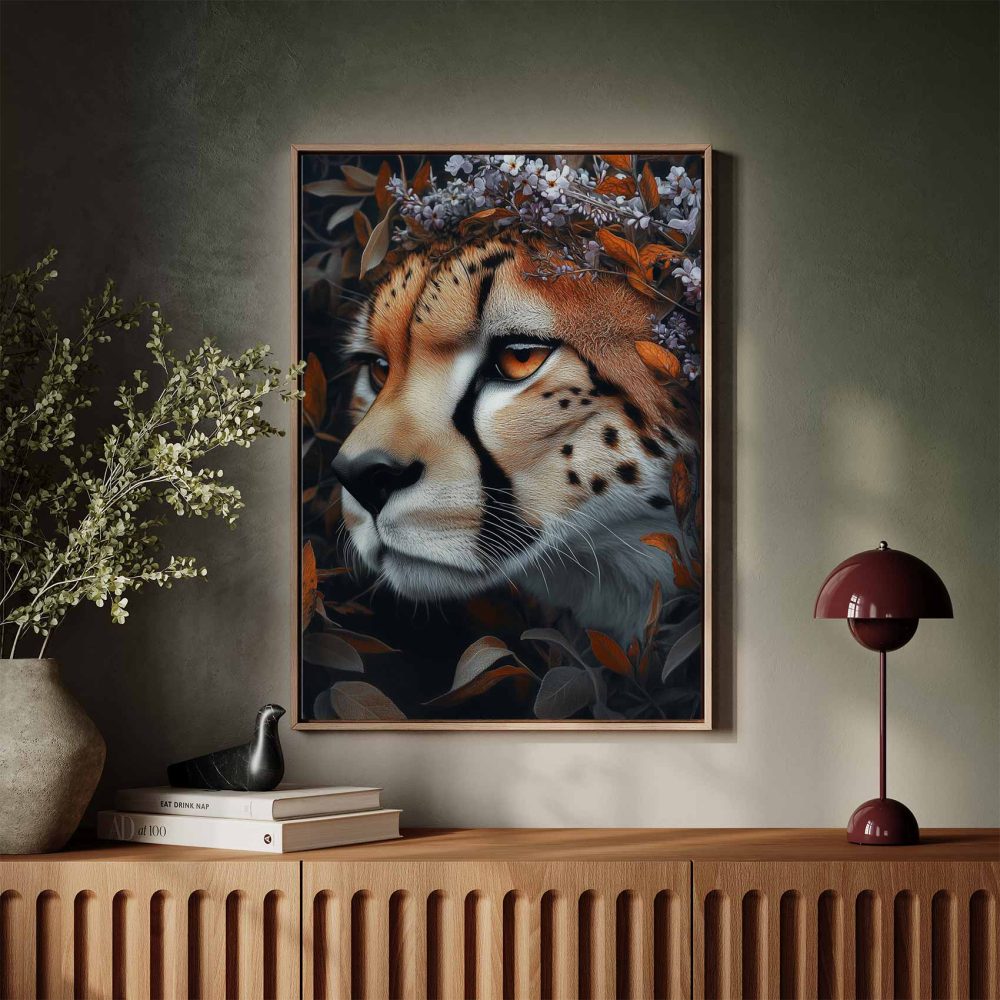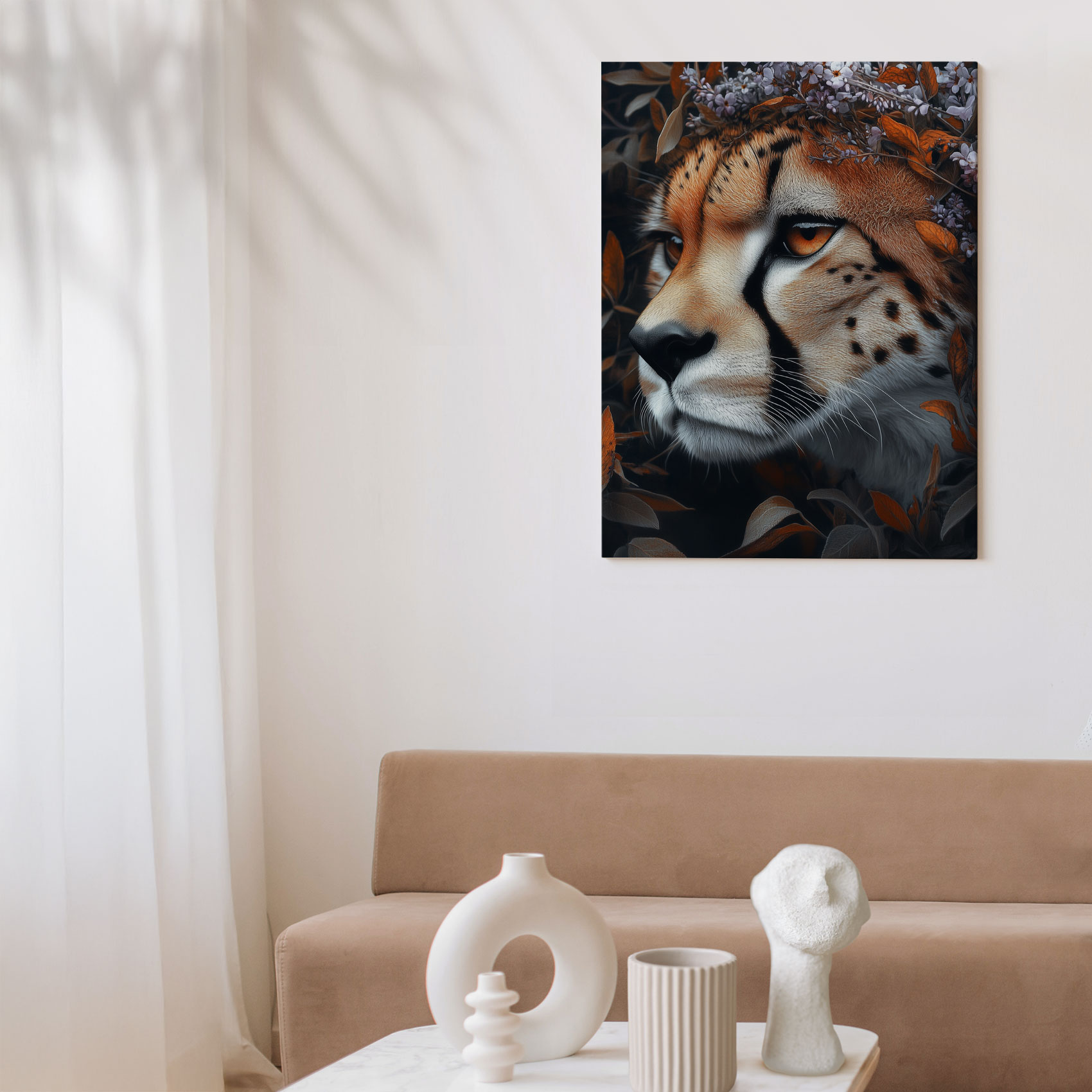 Terug naar collectie / Schilderijen / Bloemen Schilderij / Cheetah in kleurrijk natuurtafereel