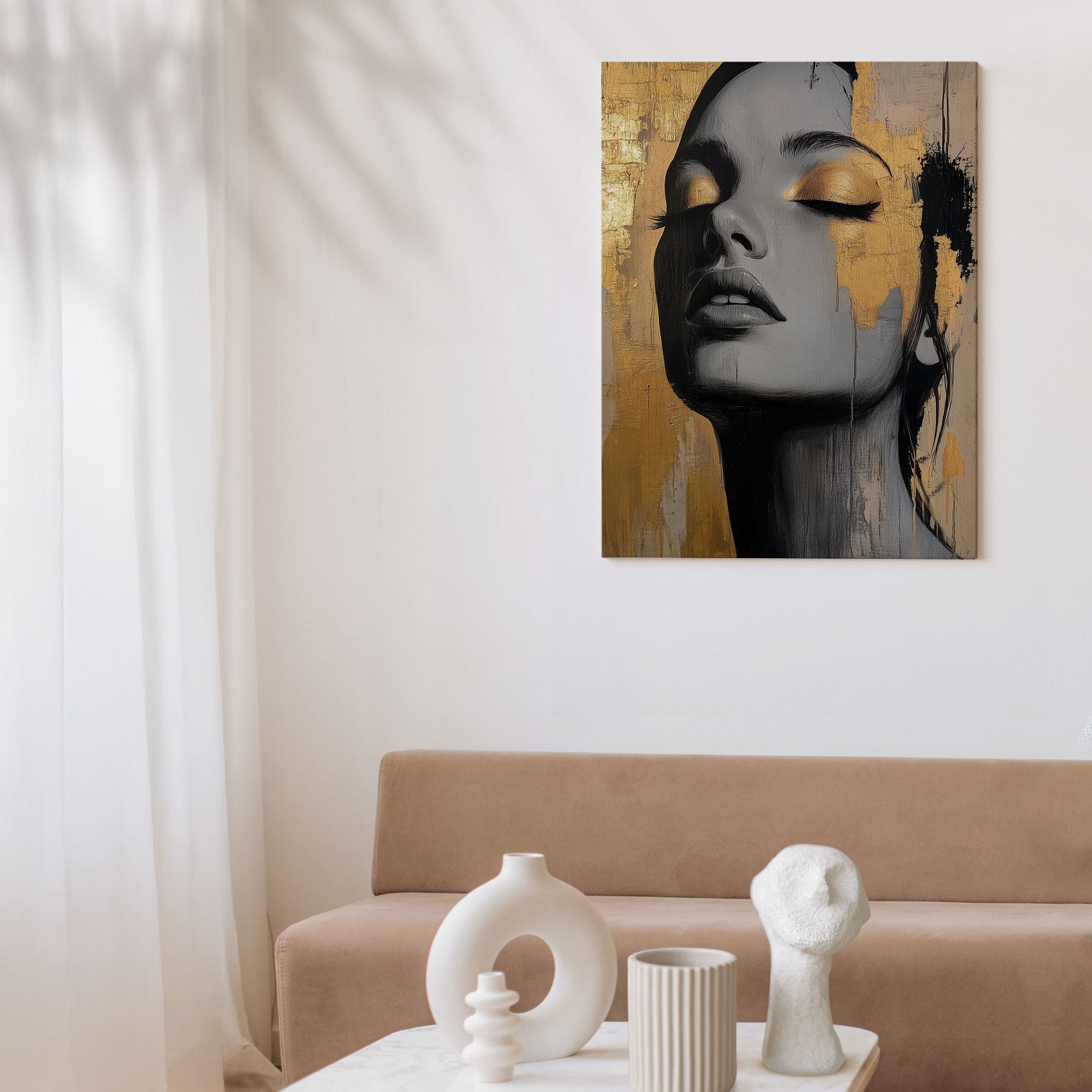 Terug naar collectie / Schilderijen / Figuren en Vormen Schilderij / Dramatisch zwart-wit vrouwenportret