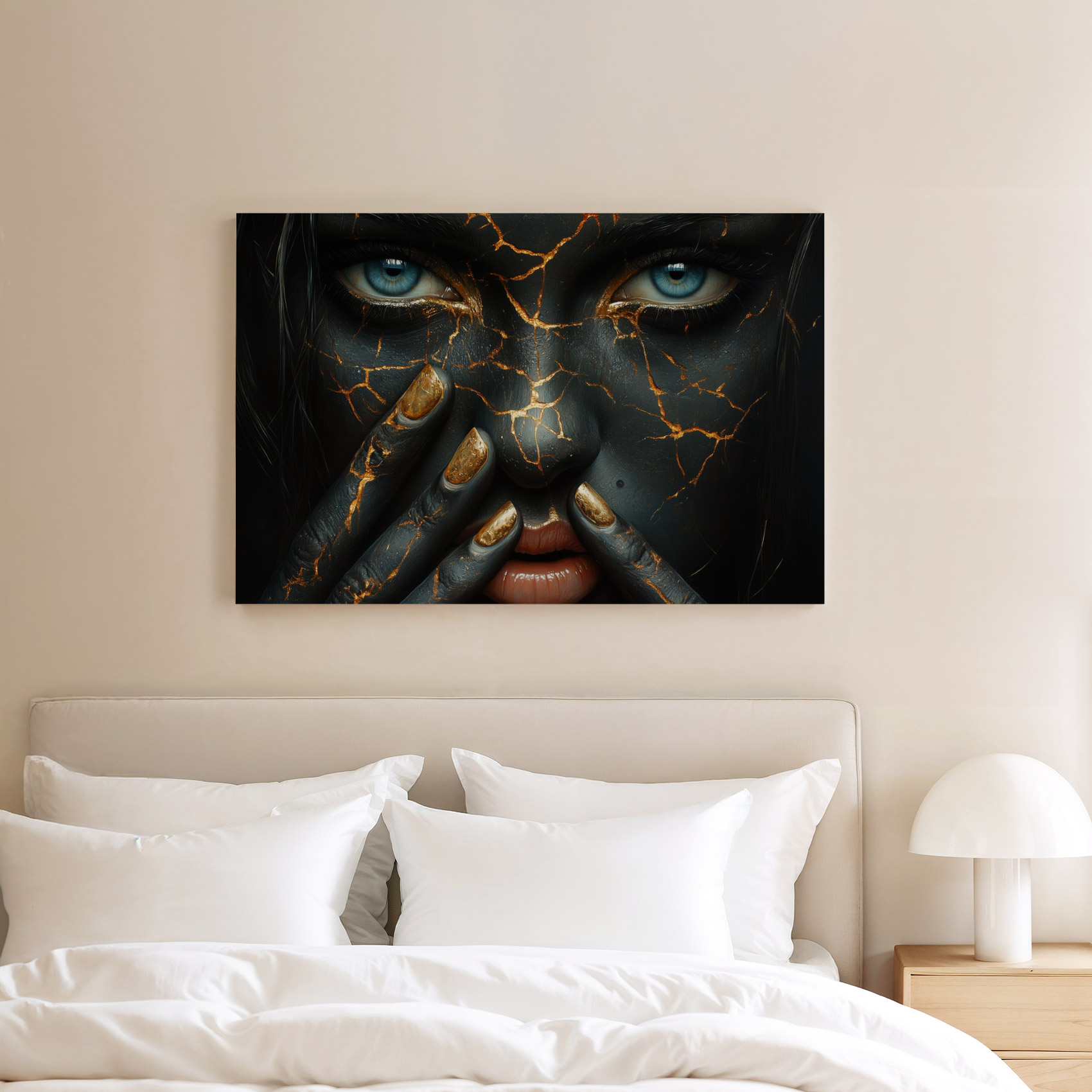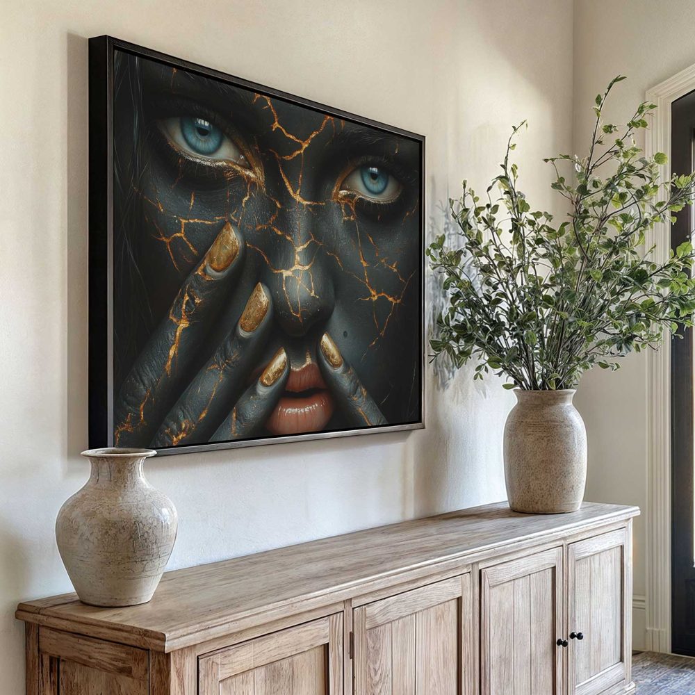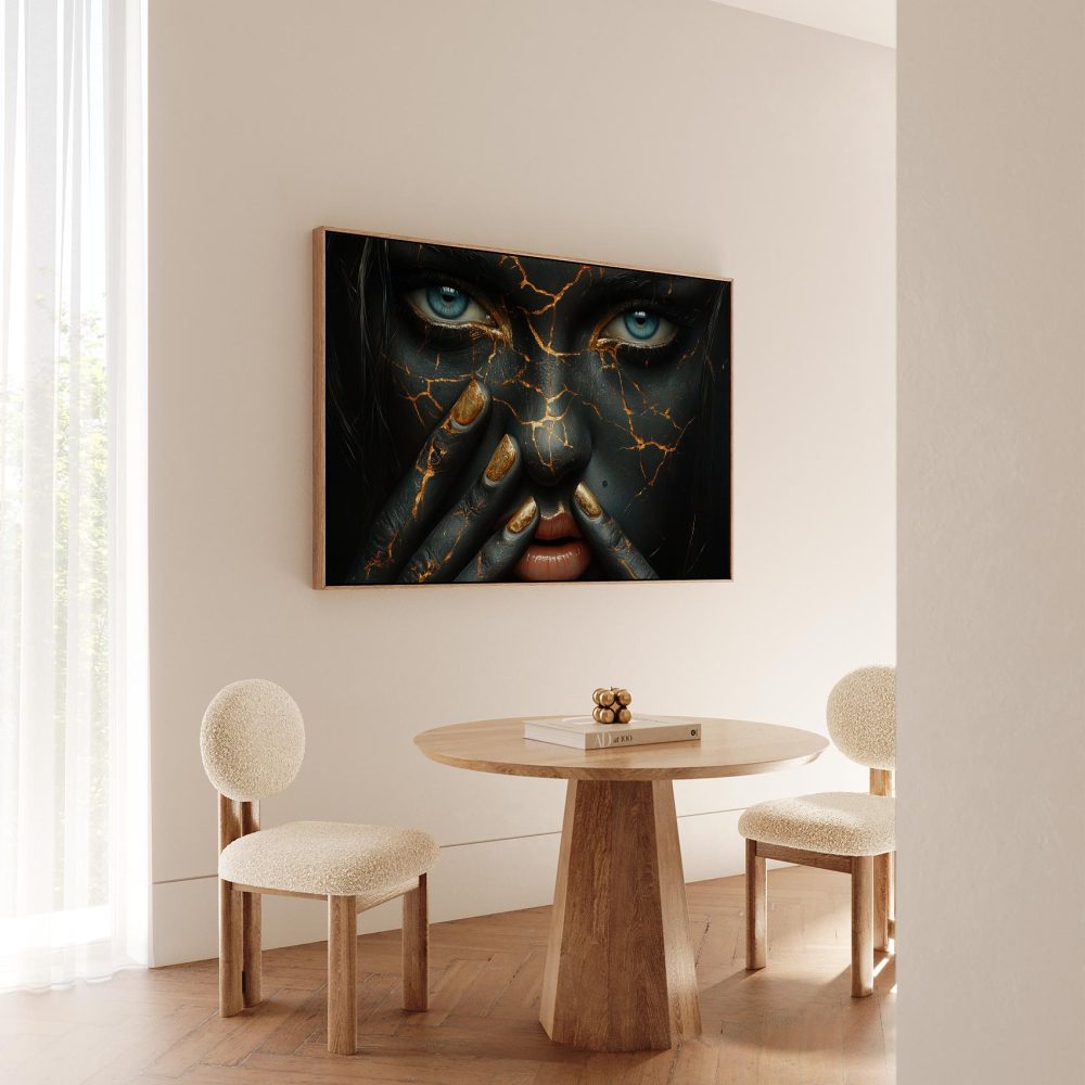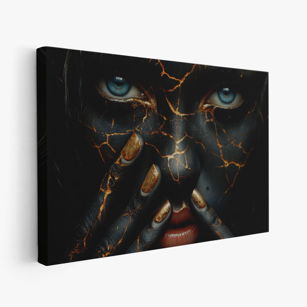 Terug naar collectie / Schilderijen / Abstract Schilderij / Dramatische goud-zwarte make-up