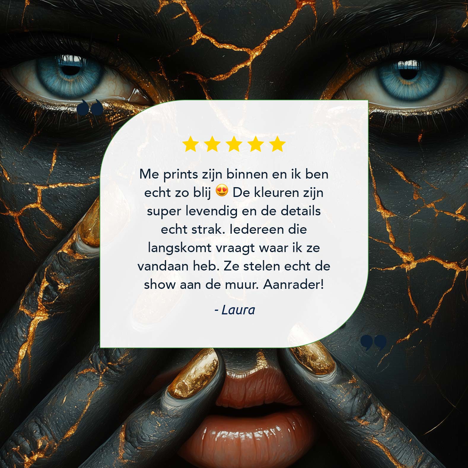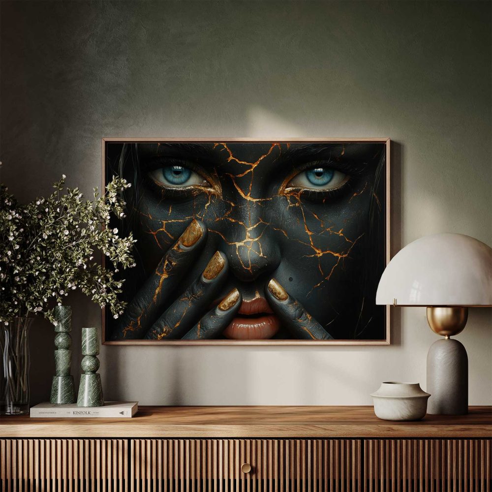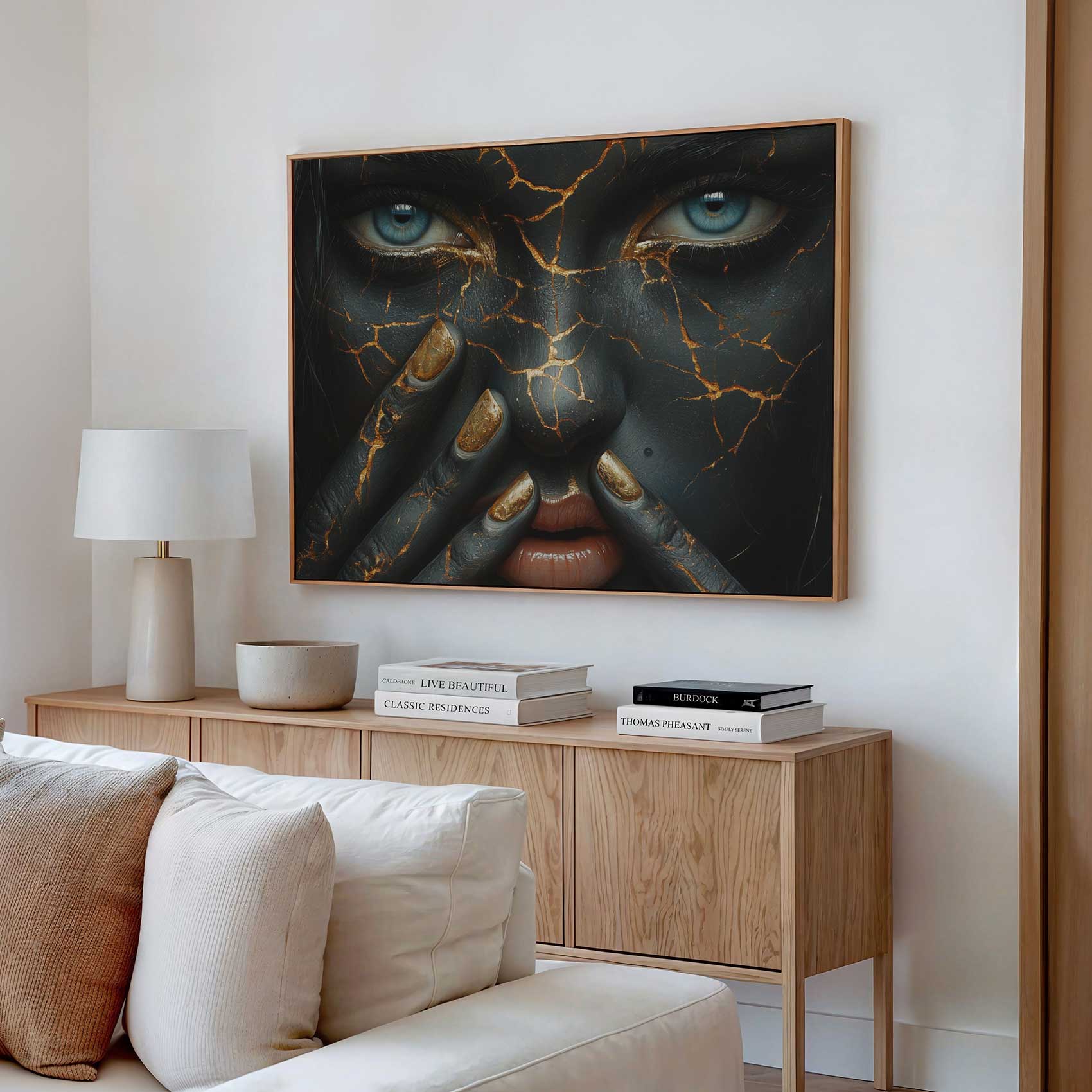 Terug naar collectie / Schilderijen / Abstract Schilderij / Dramatische goud-zwarte make-up