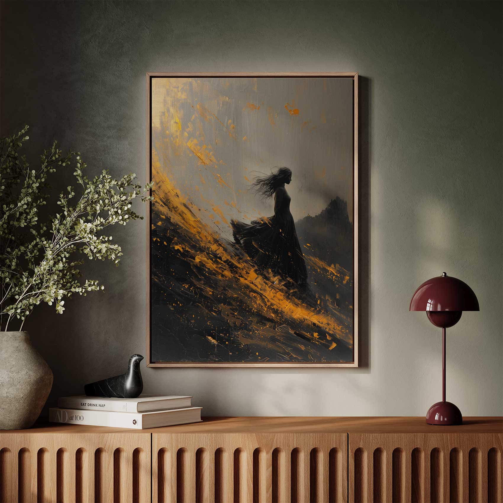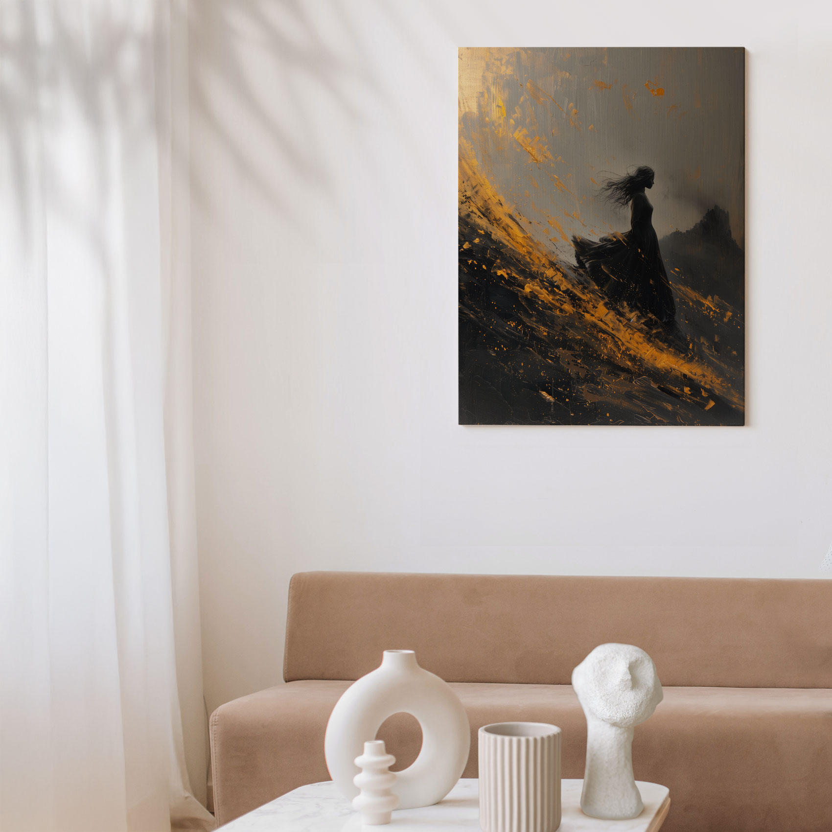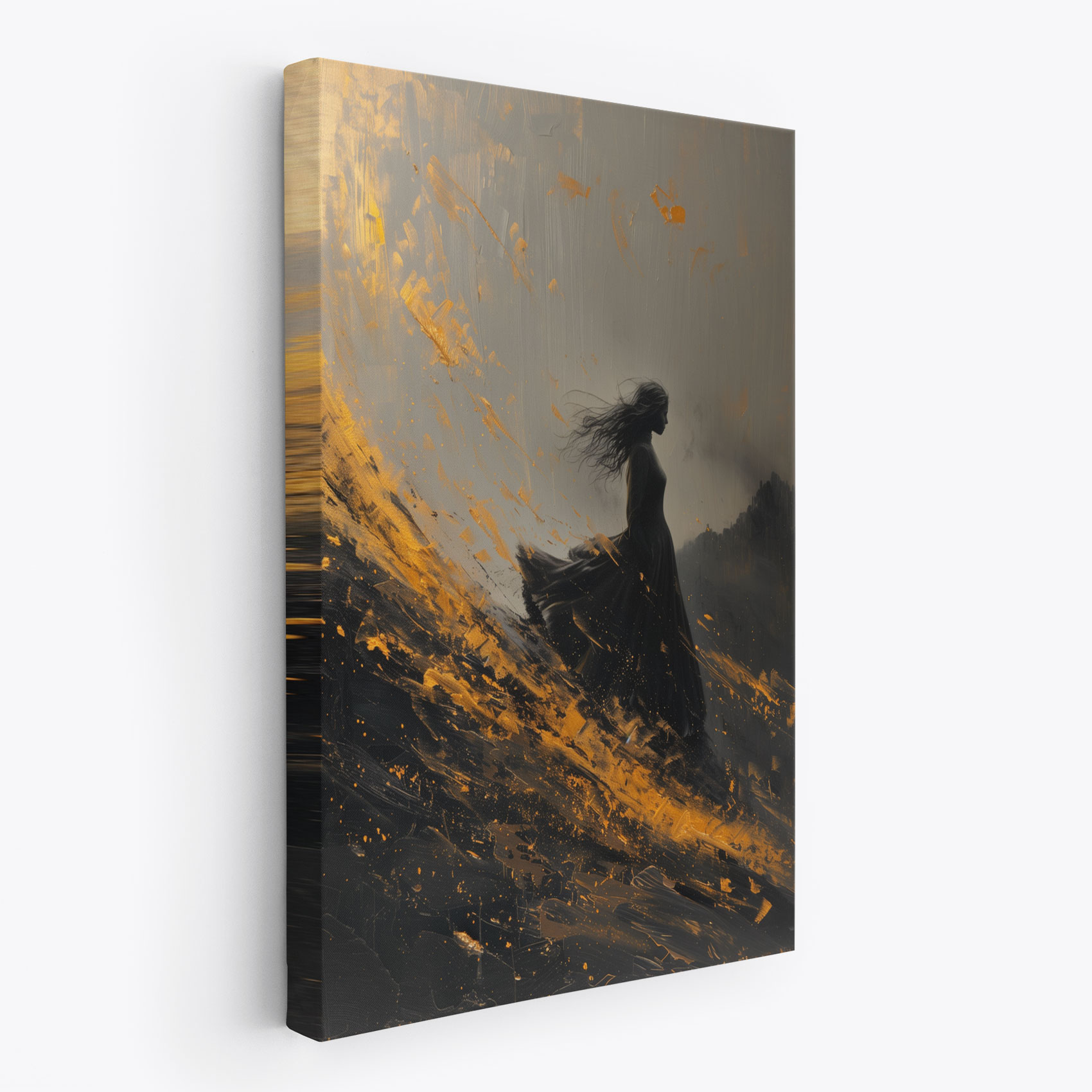 Terug naar collectie / Schilderijen / Abstract Schilderij / Dramatische vrouw in zwarte jurk