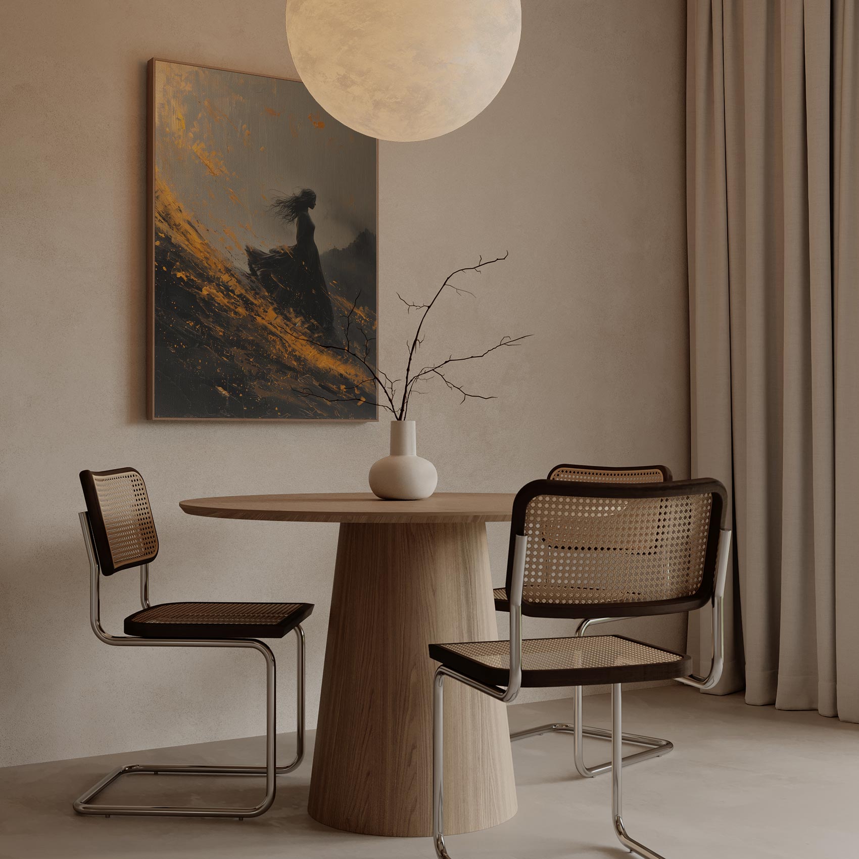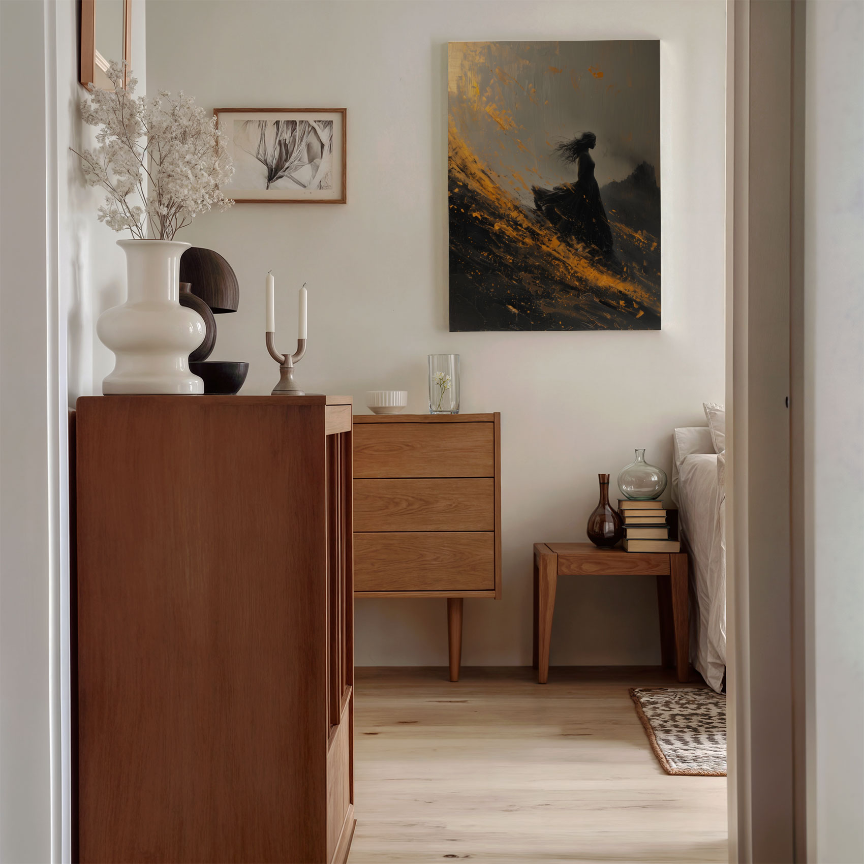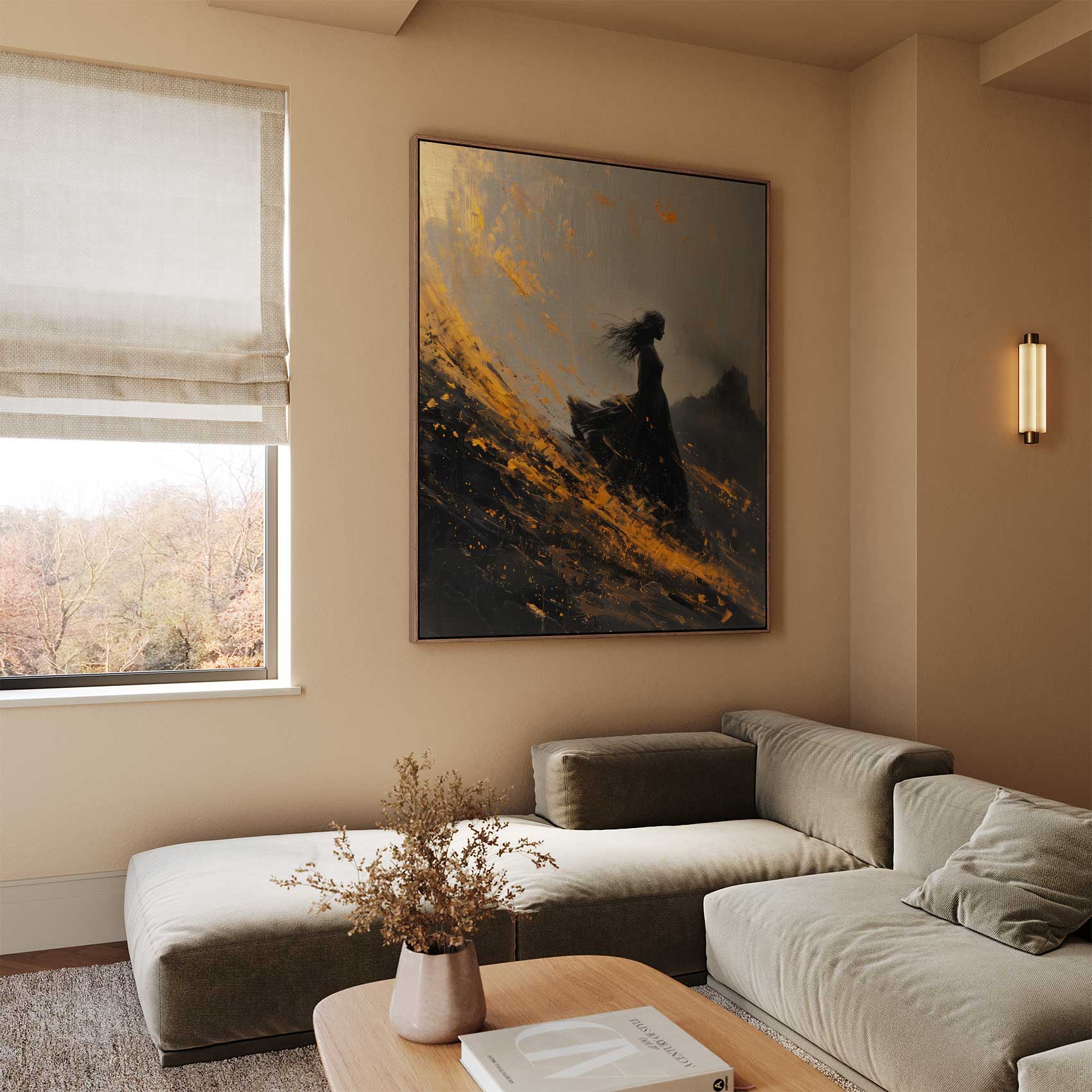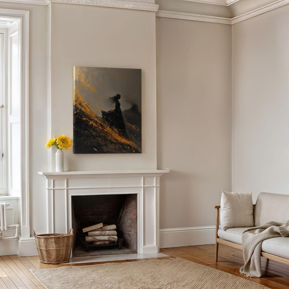 Terug naar collectie / Schilderijen / Abstract Schilderij / Dramatische vrouw in zwarte jurk