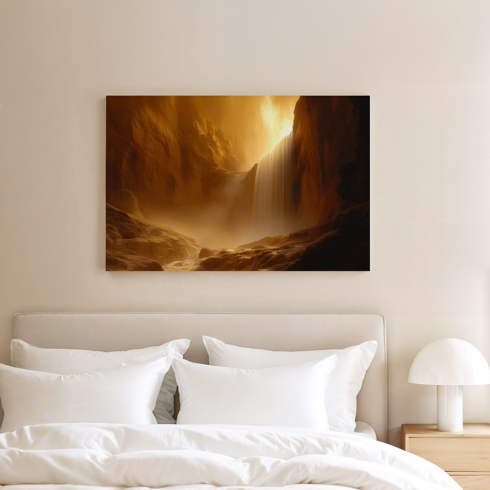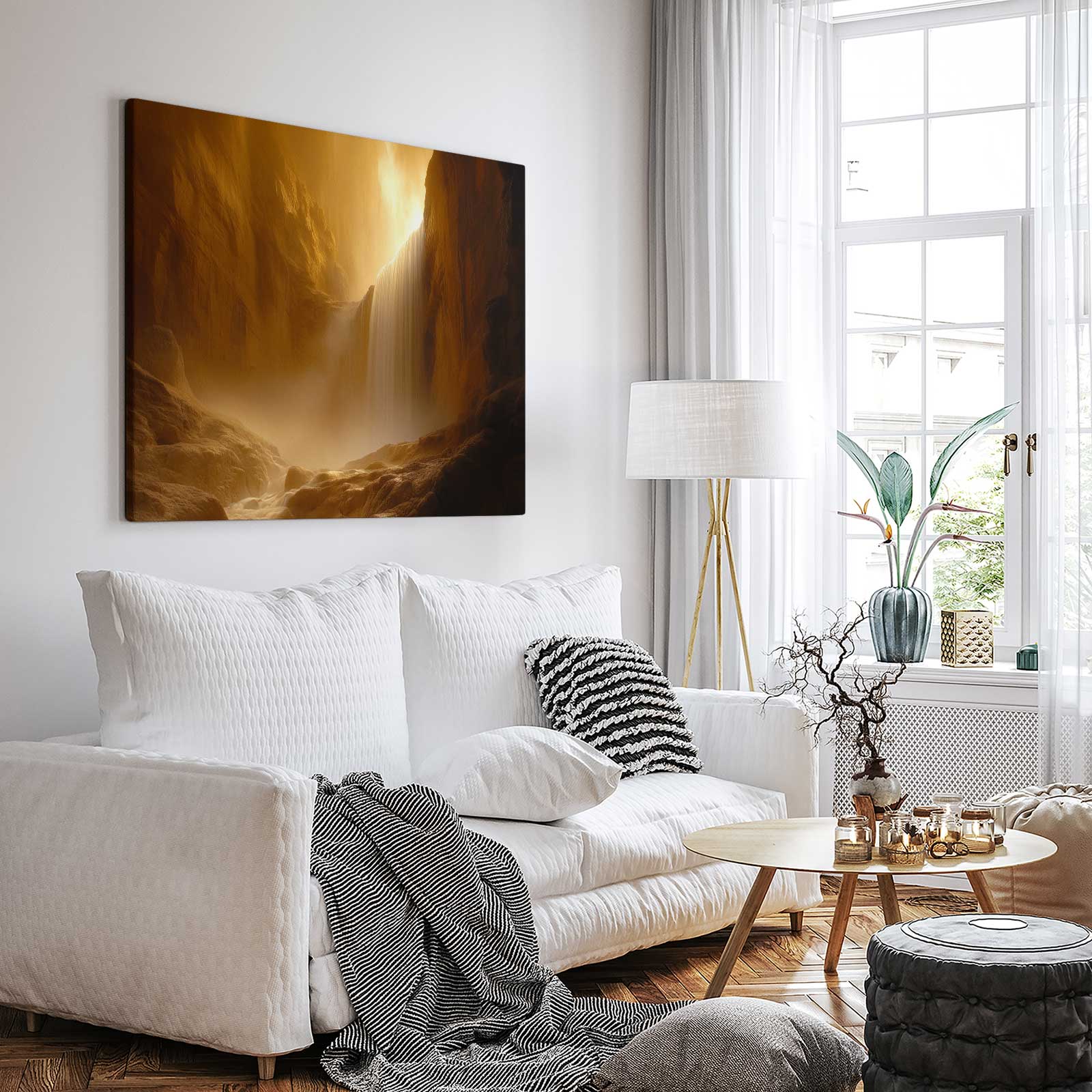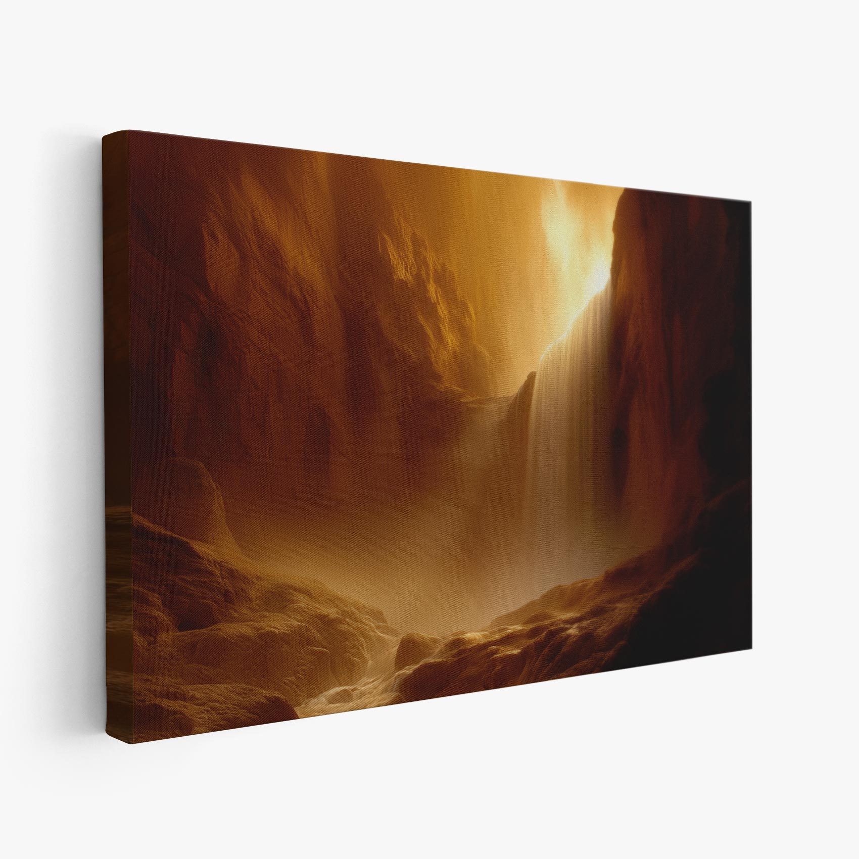 Terug naar collectie / Schilderijen / Bergen Schilderij / Dramatische waterval in oranje gloed