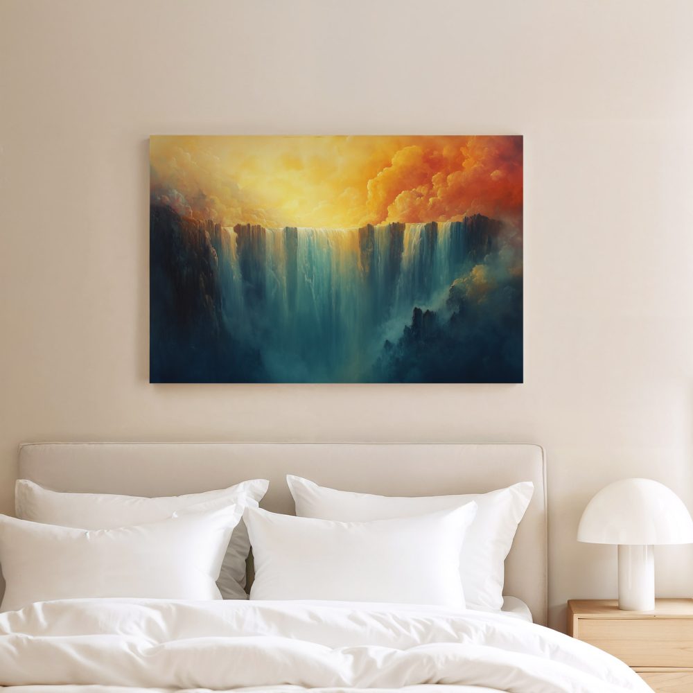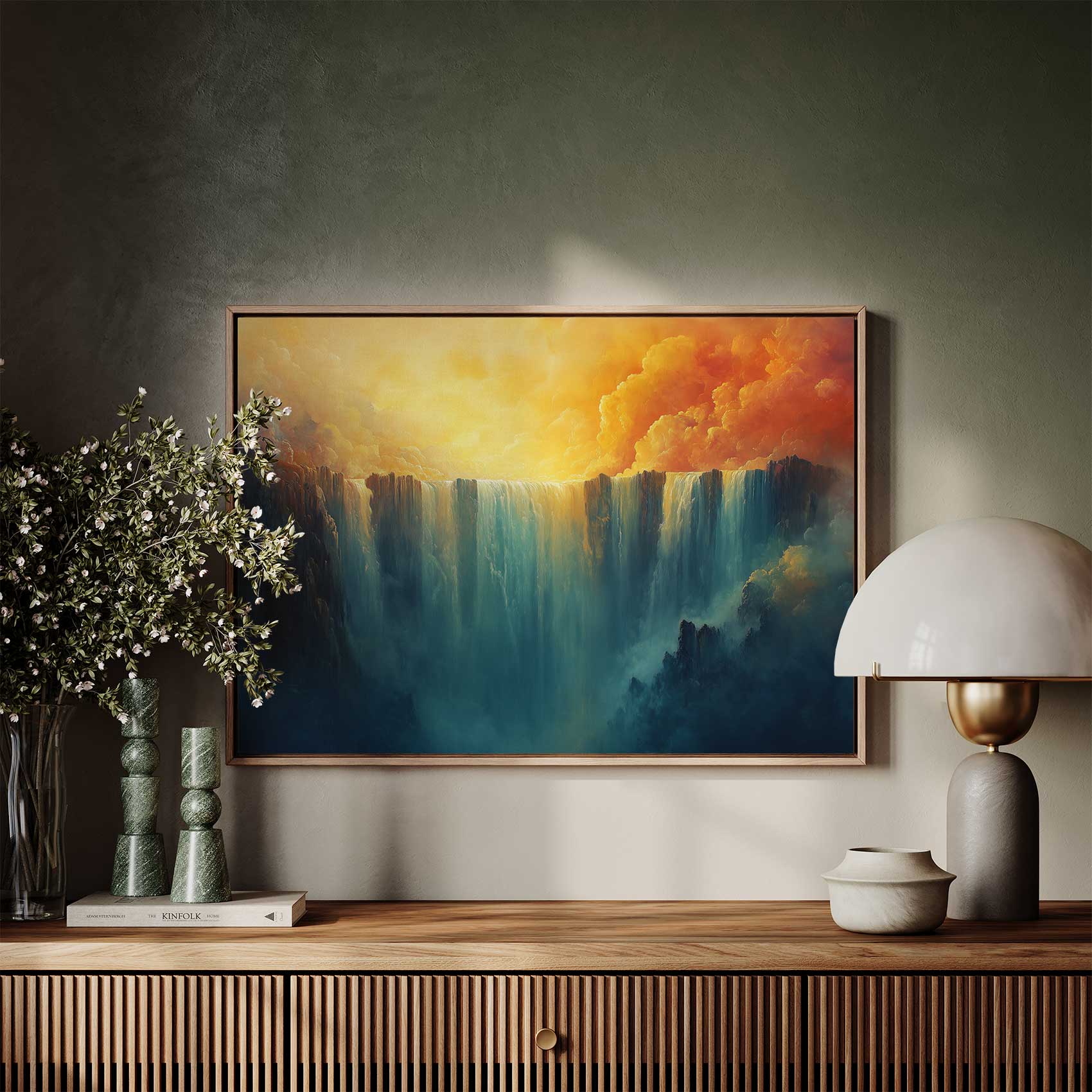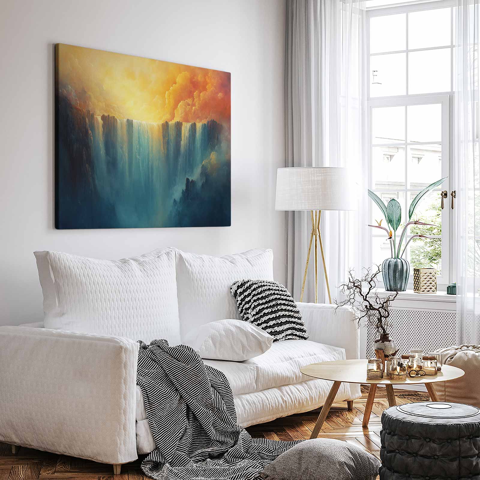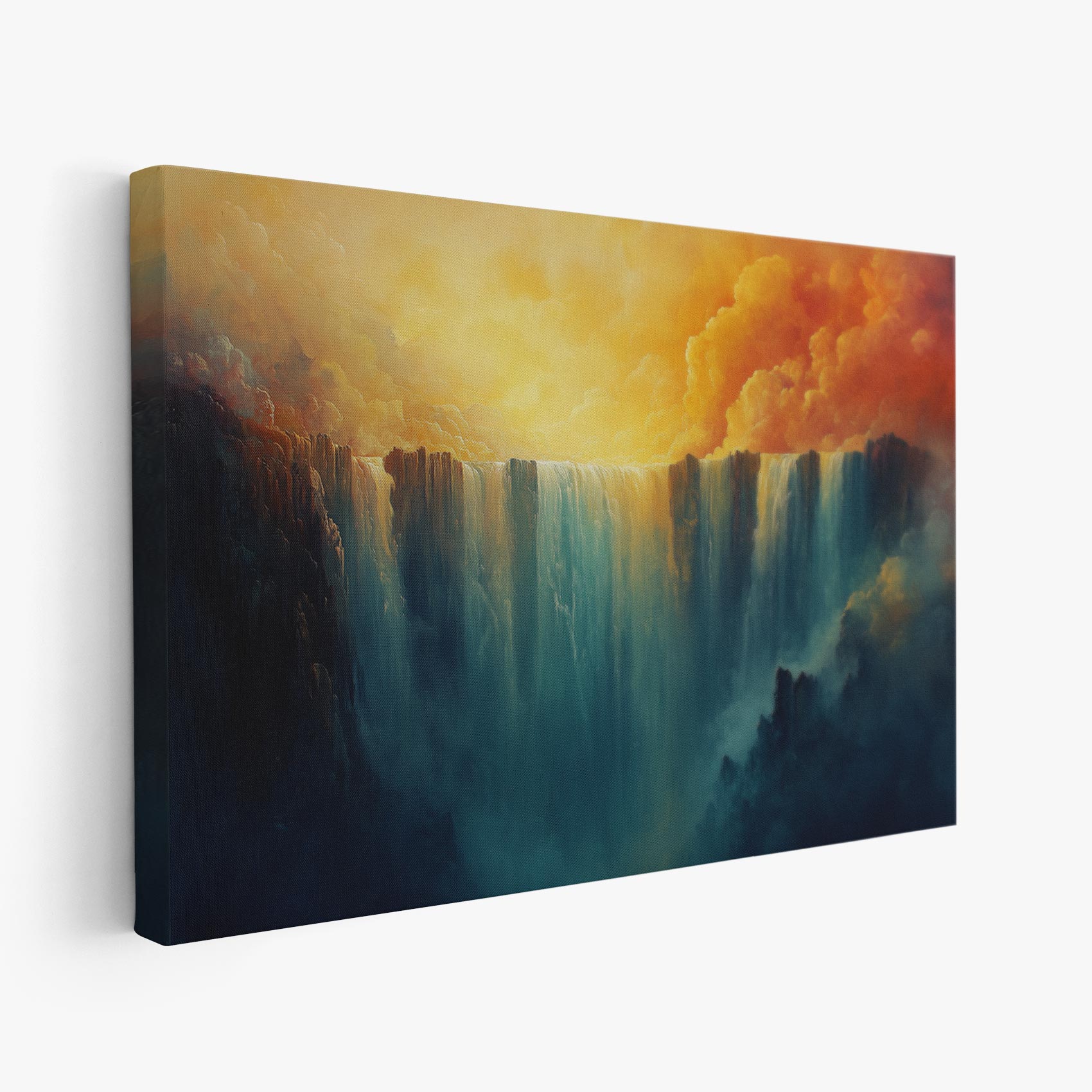 Terug naar collectie / Schilderijen / Bergen Schilderij / Dramatische Waterval Zonsondergang