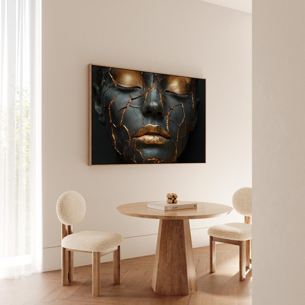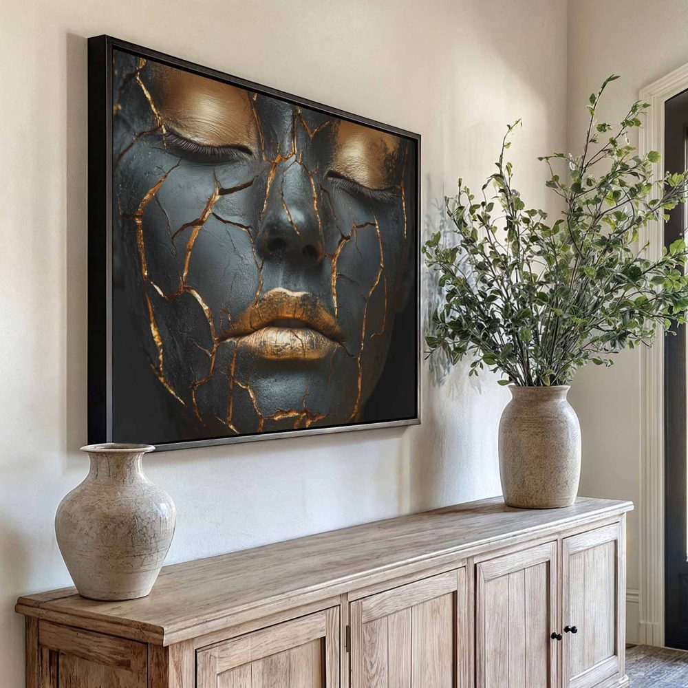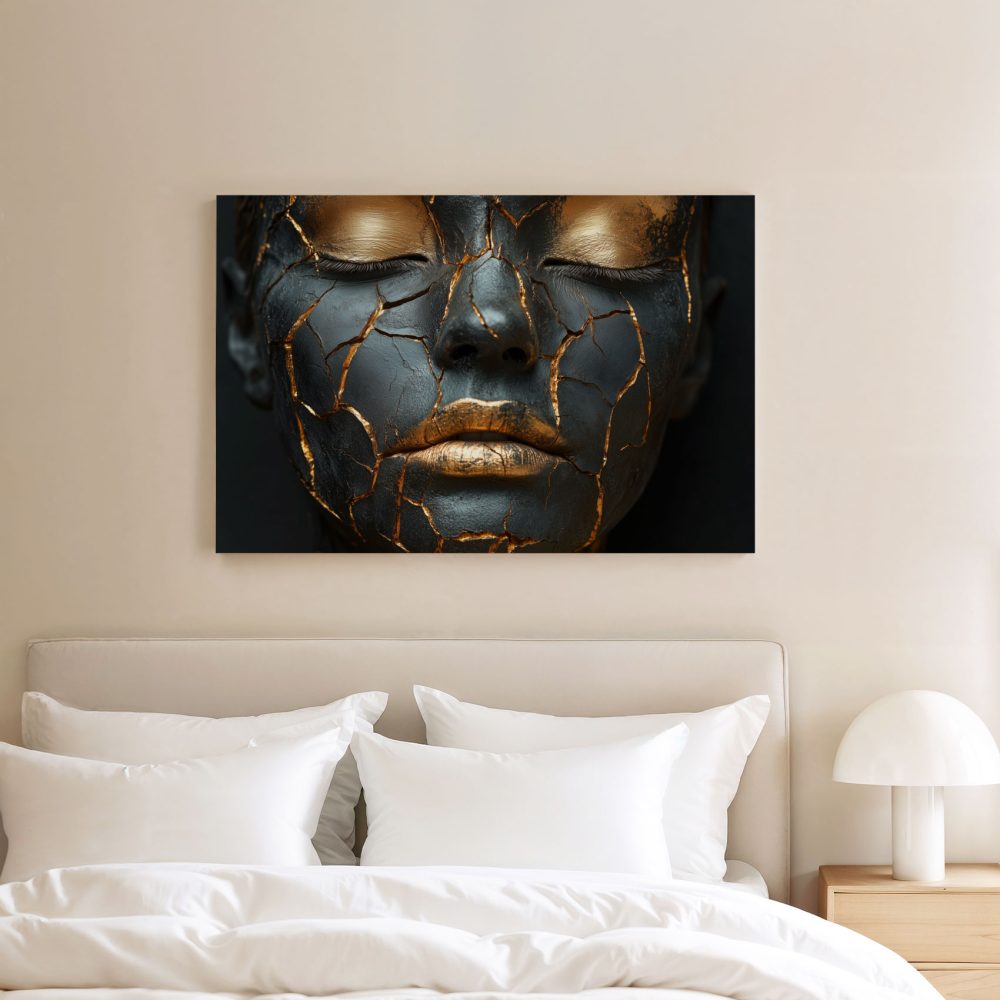 Terug naar collectie / Schilderijen / Abstract Schilderij / Dramatische zwart-gouden make-up