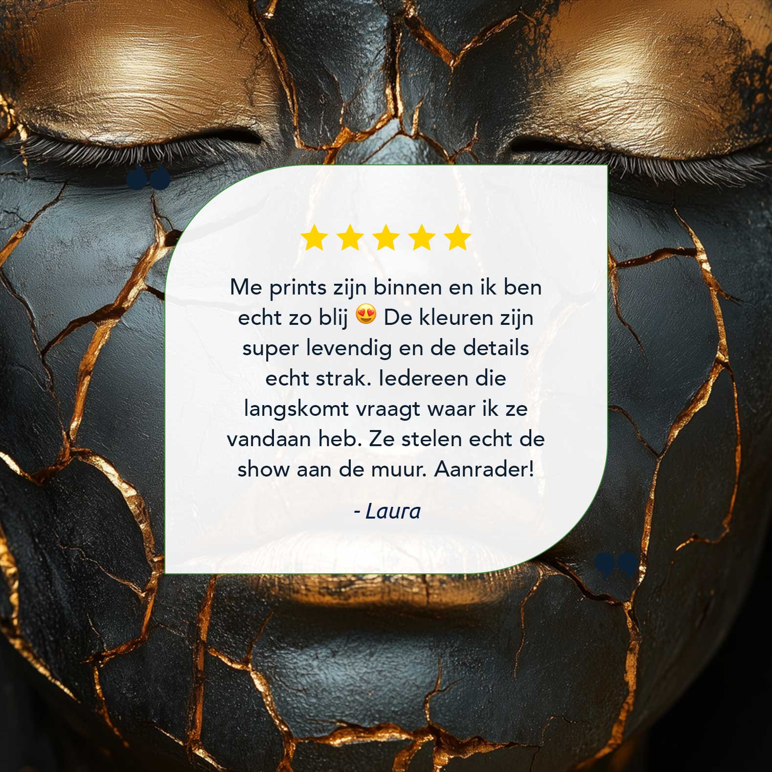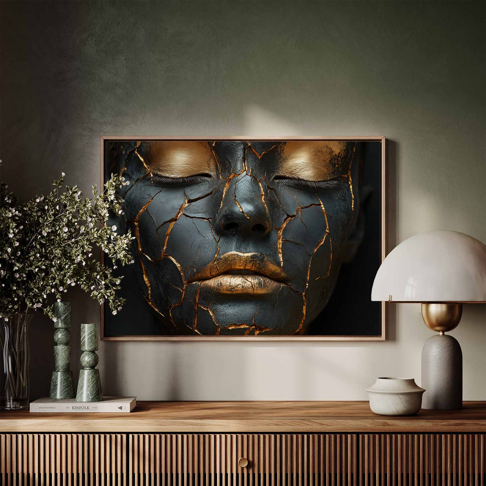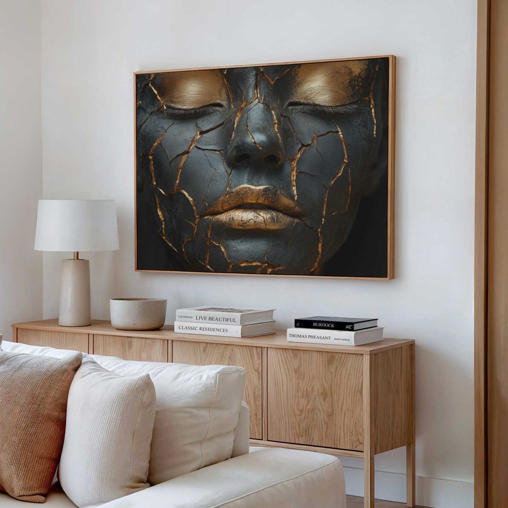 Terug naar collectie / Schilderijen / Abstract Schilderij / Dramatische zwart-gouden make-up