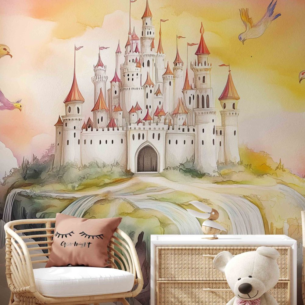 Terug naar collectie / Behang / Kinderkamer behang / Avontuurlijk behang / Drijvend Vogelfantasiekasteel behang