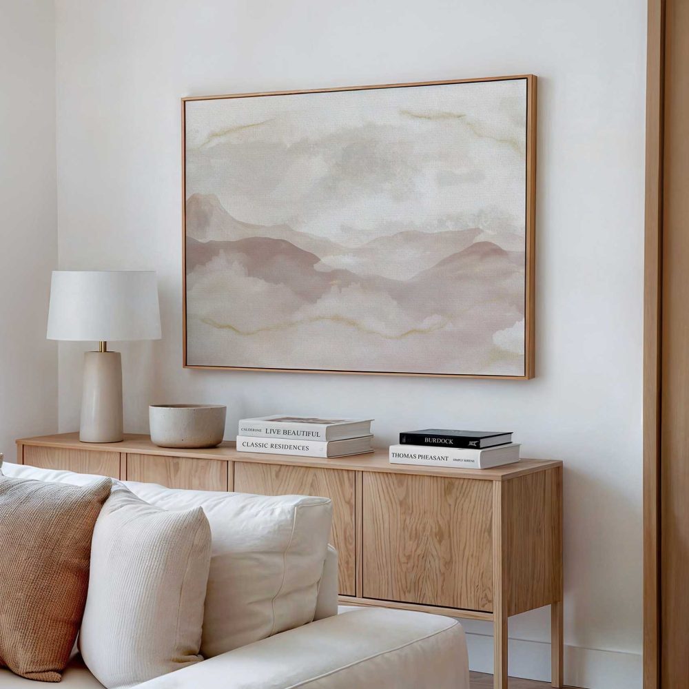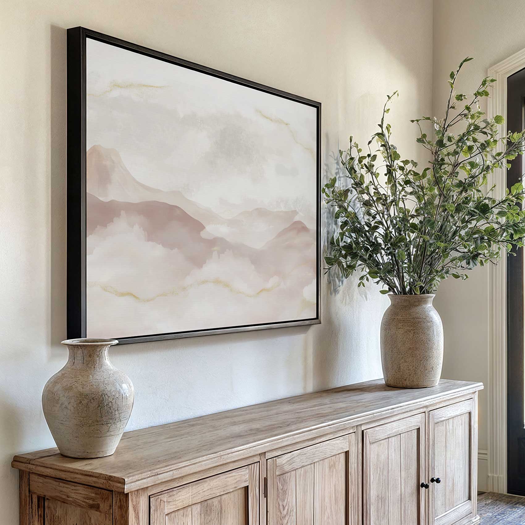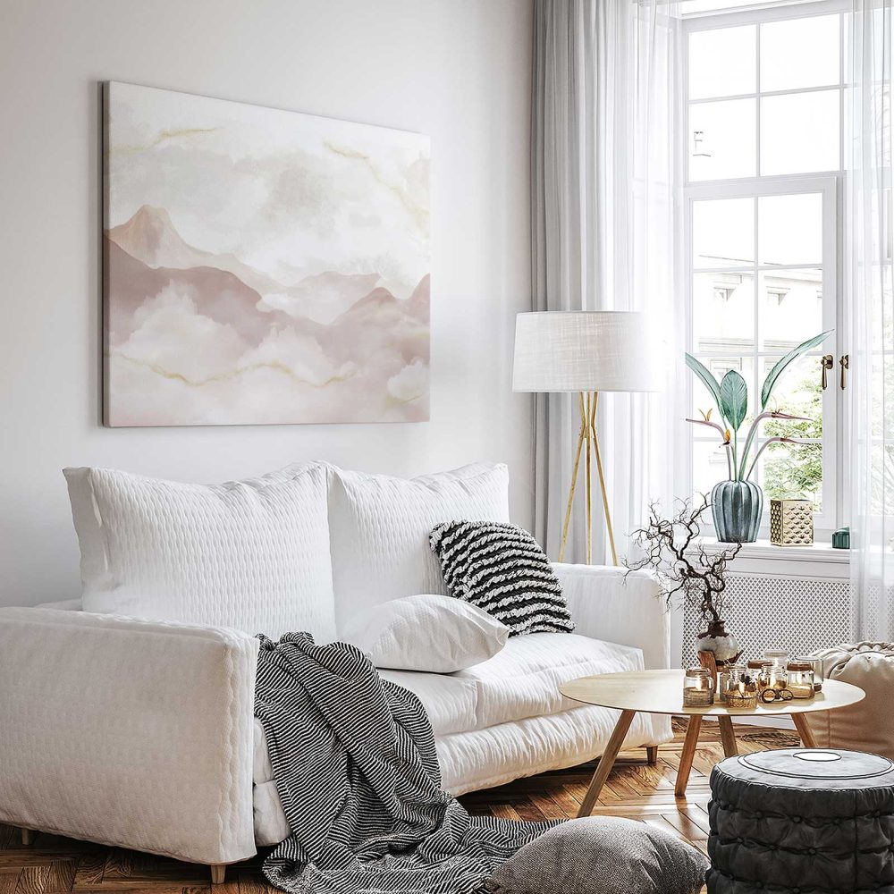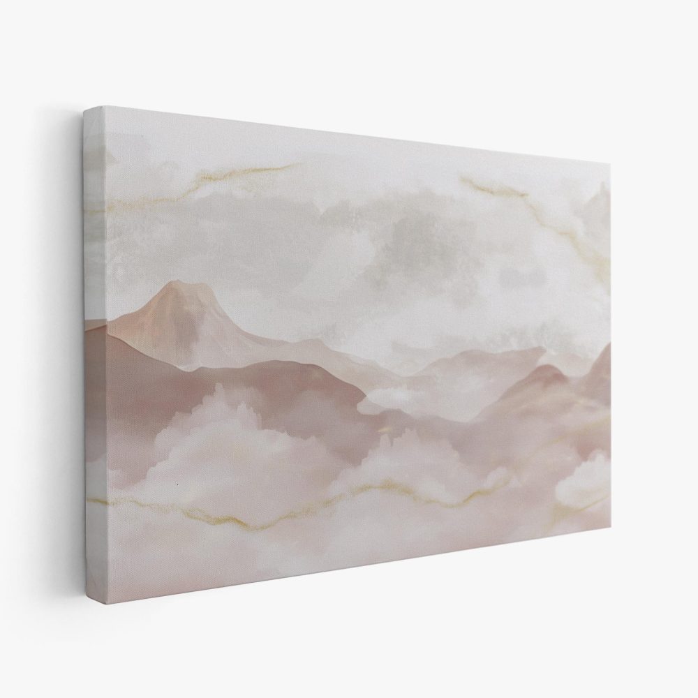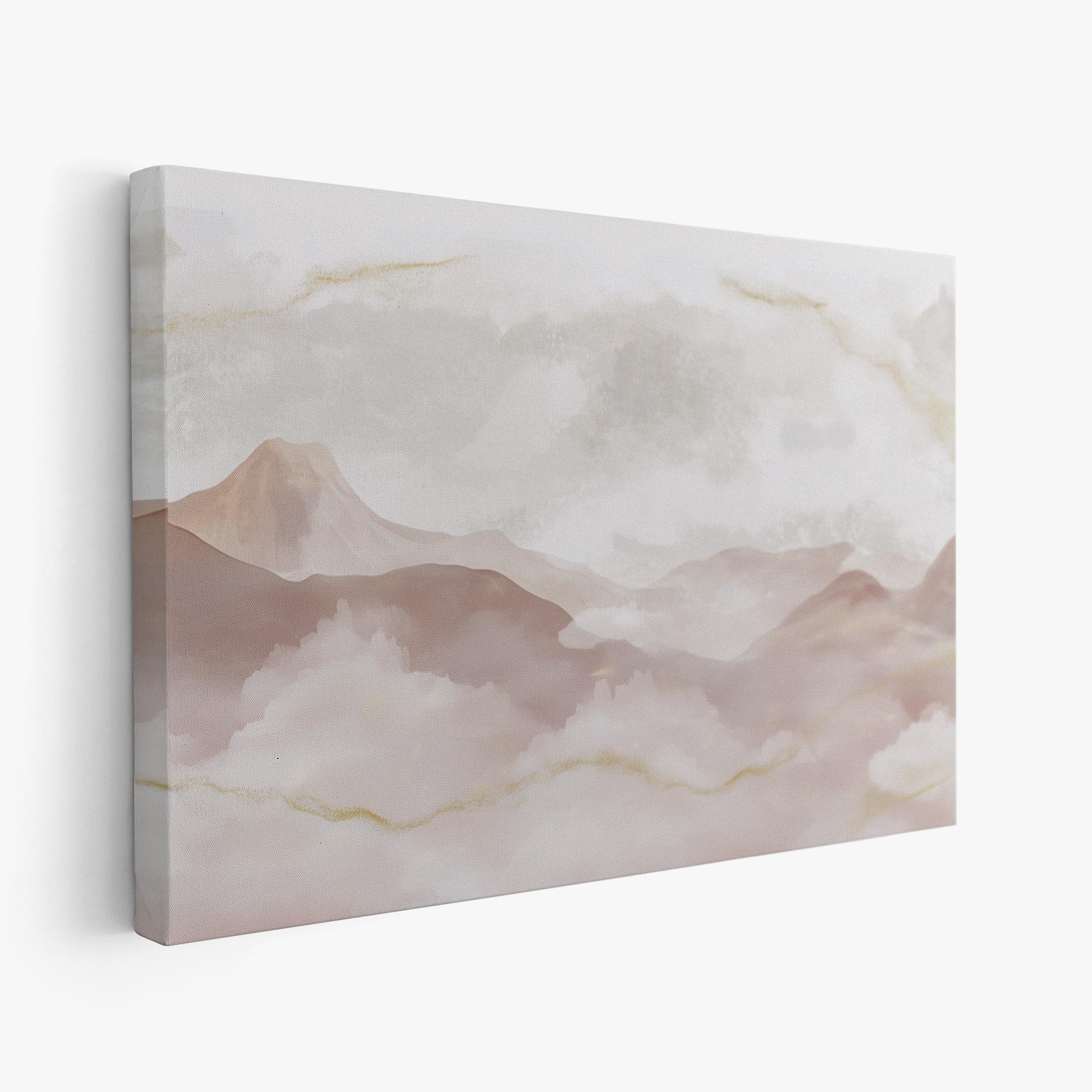 Terug naar collectie / Schilderijen / Bergen Schilderij / Dromerig Berglandschap met Roze Wolken