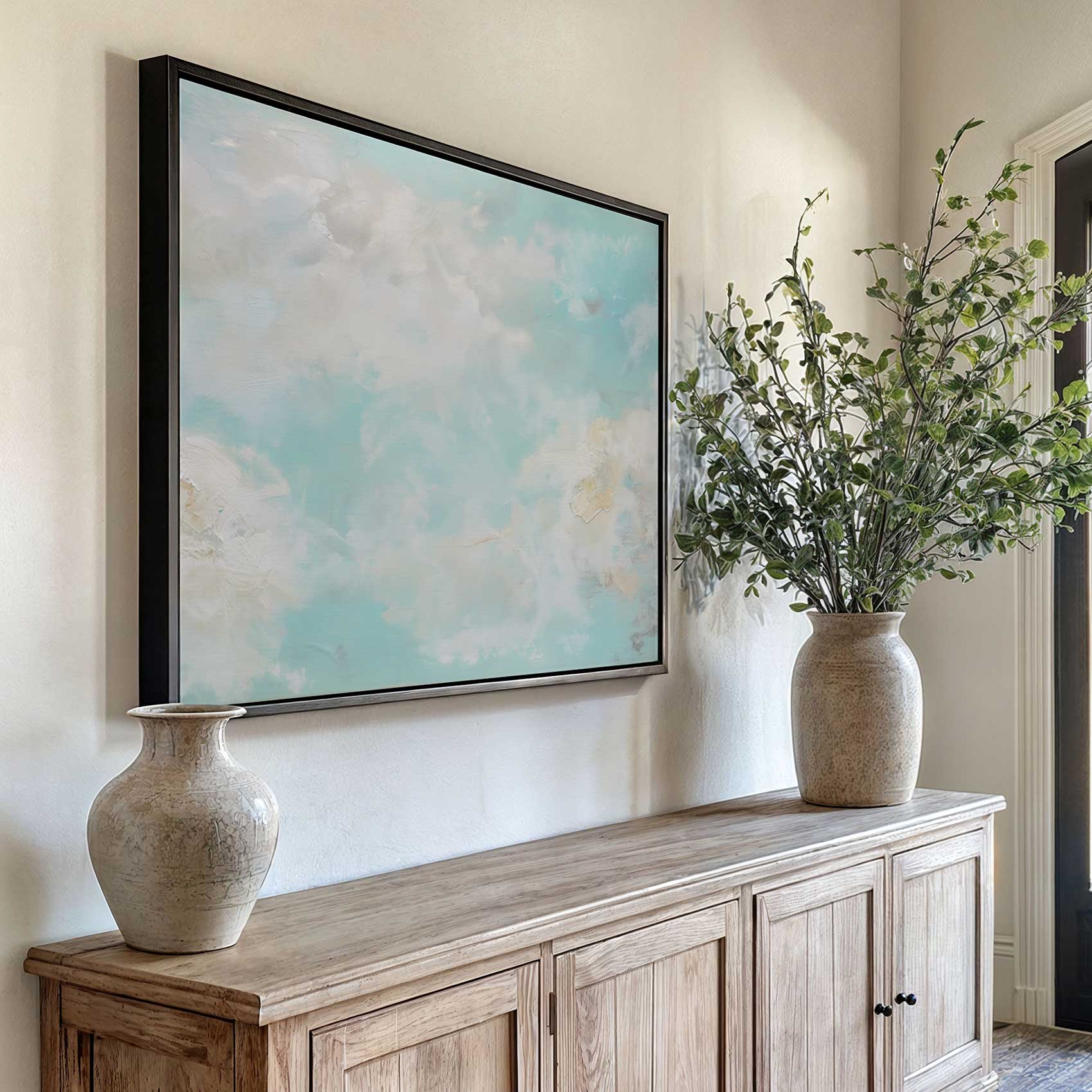 Terug naar collectie / Schilderijen / Abstract Schilderij / Dromerig blauw wolken schilderij
