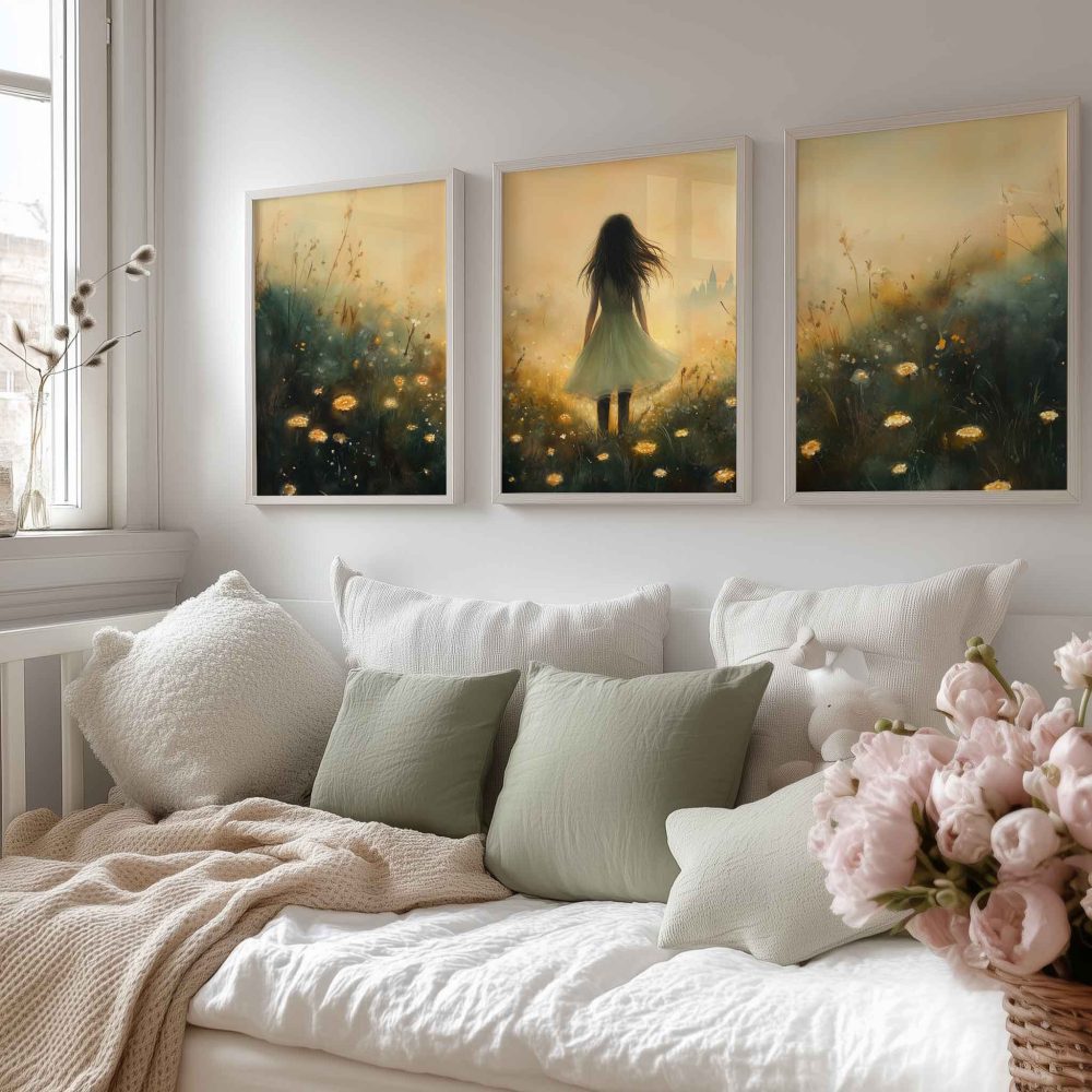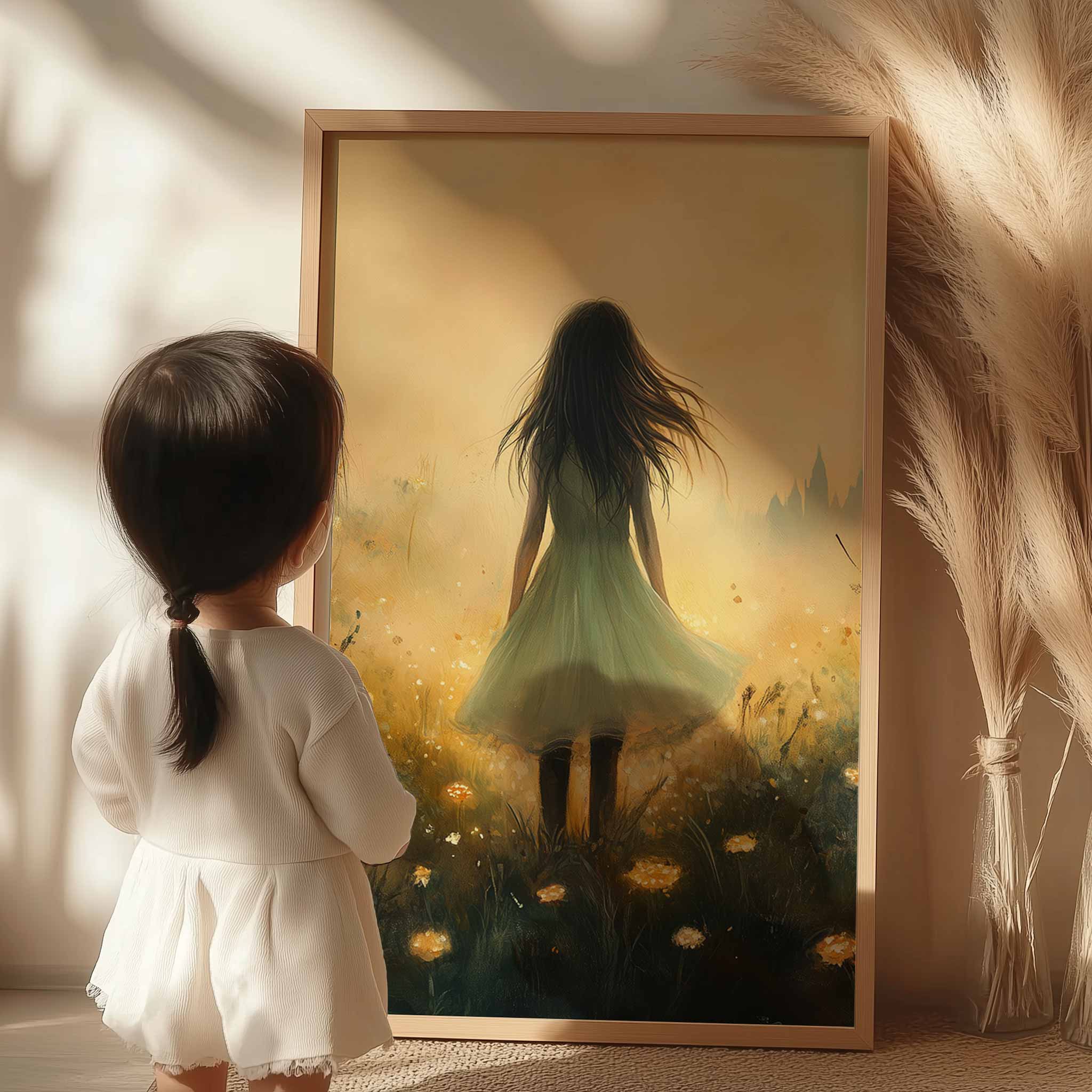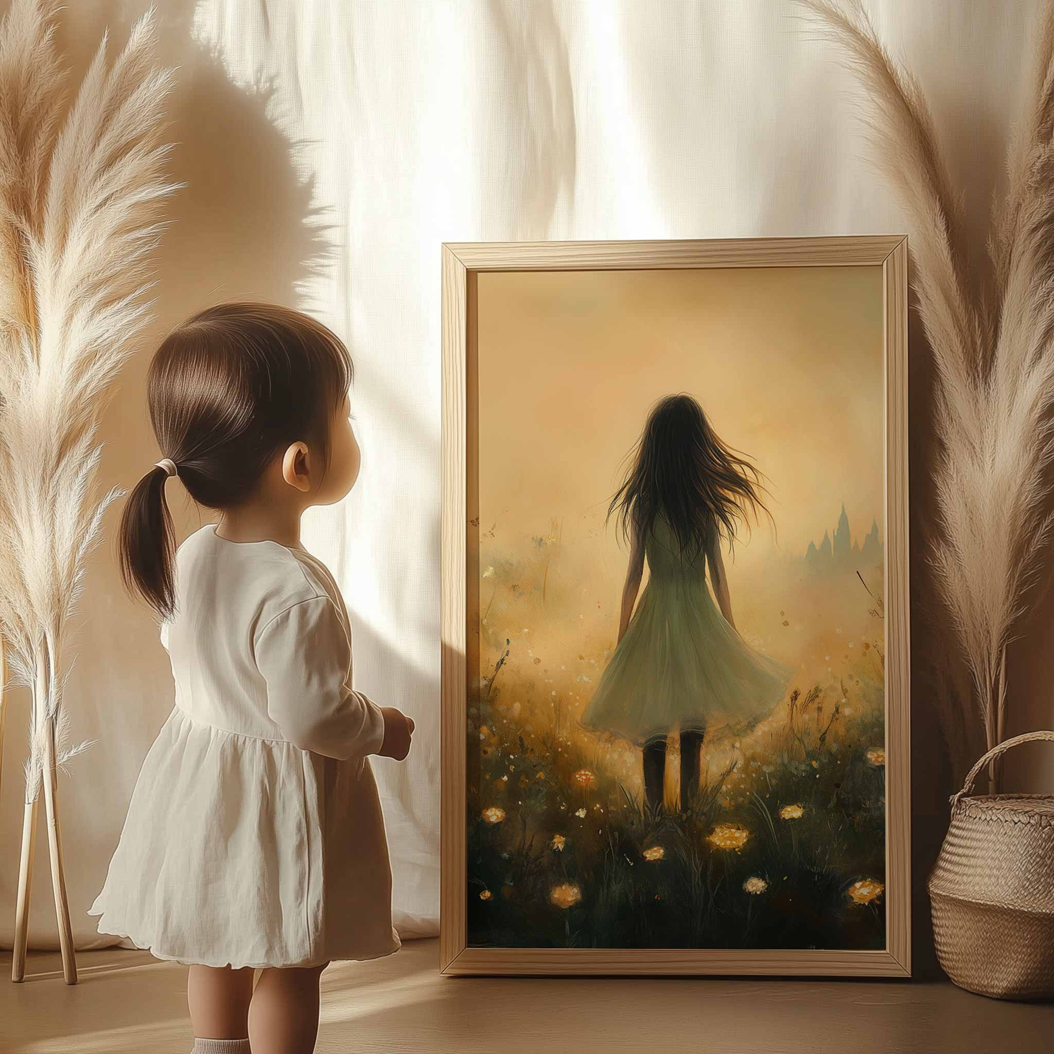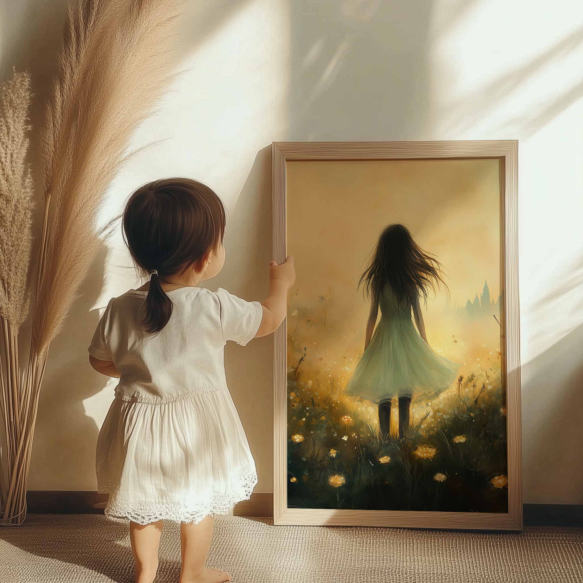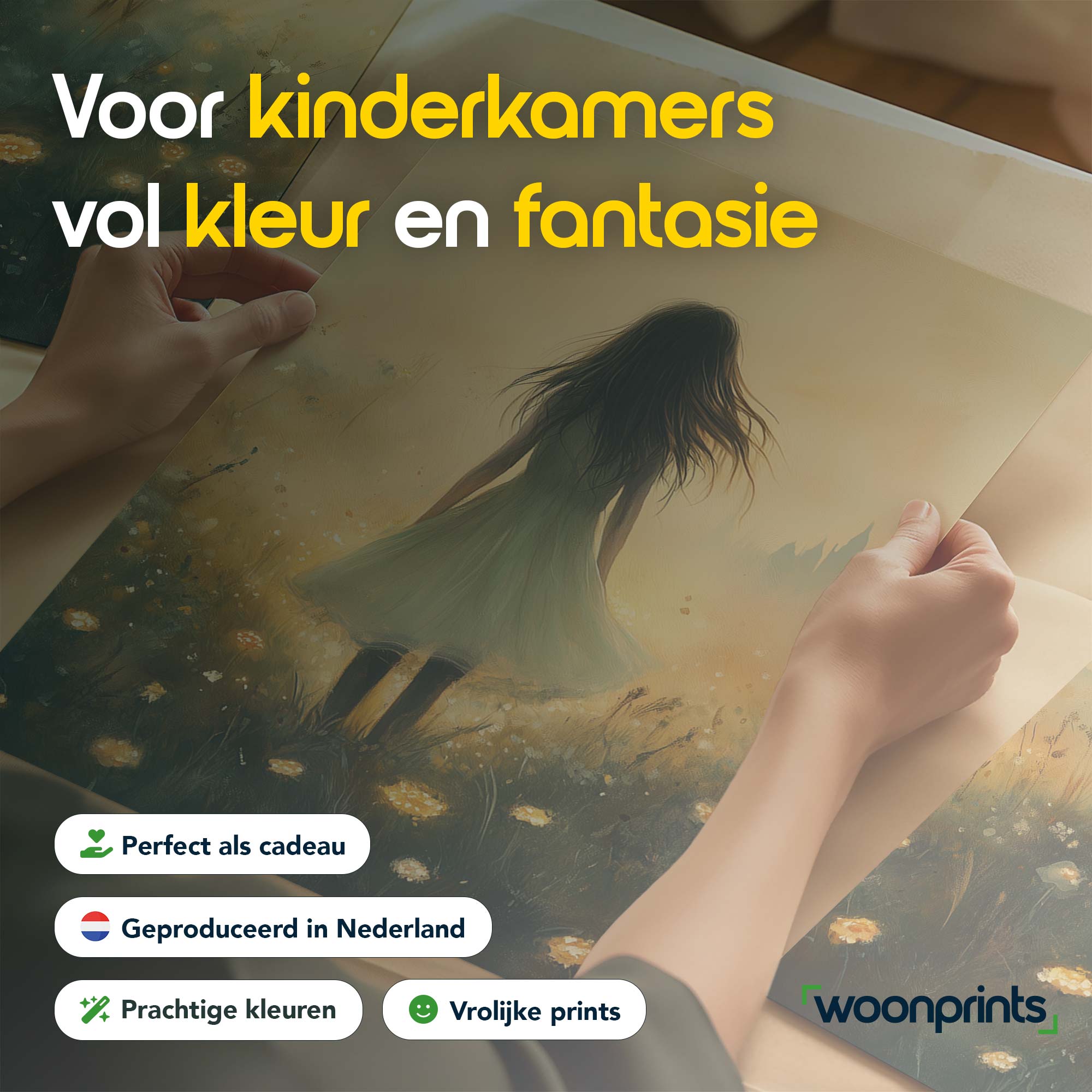 Terug naar collectie / Kinderkamer posters / Bloemen posters / Dromerig bloemenveld met kasteel en prinses
