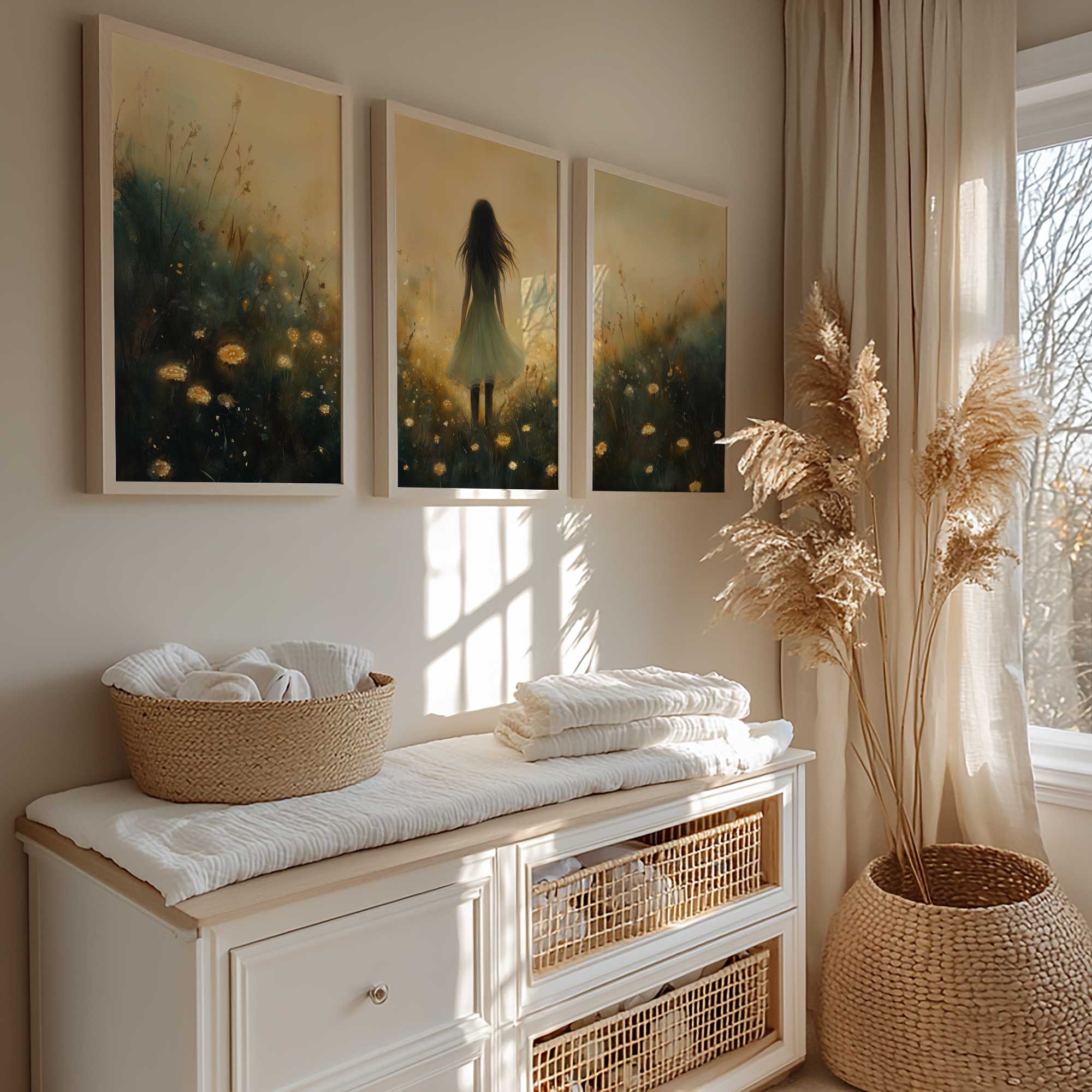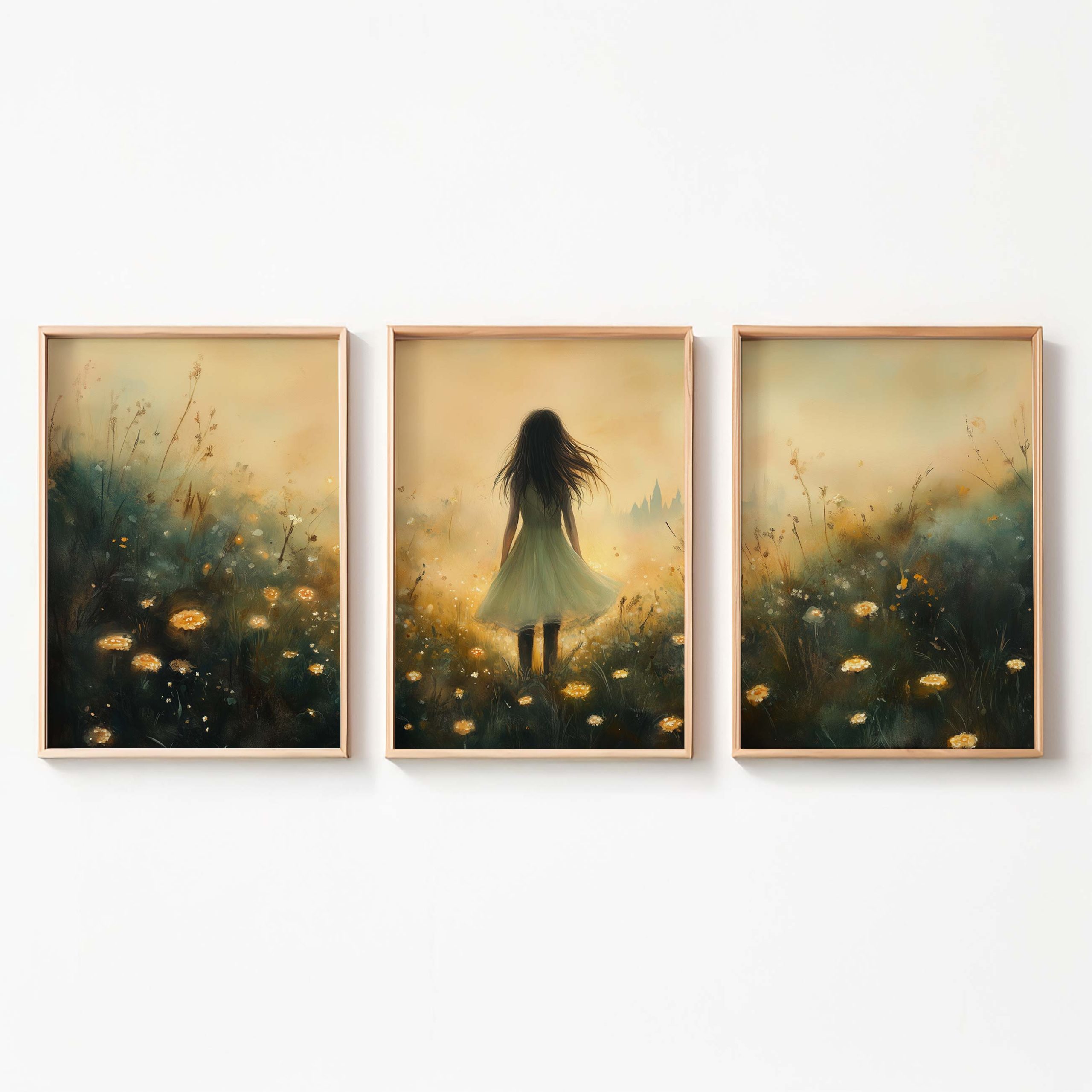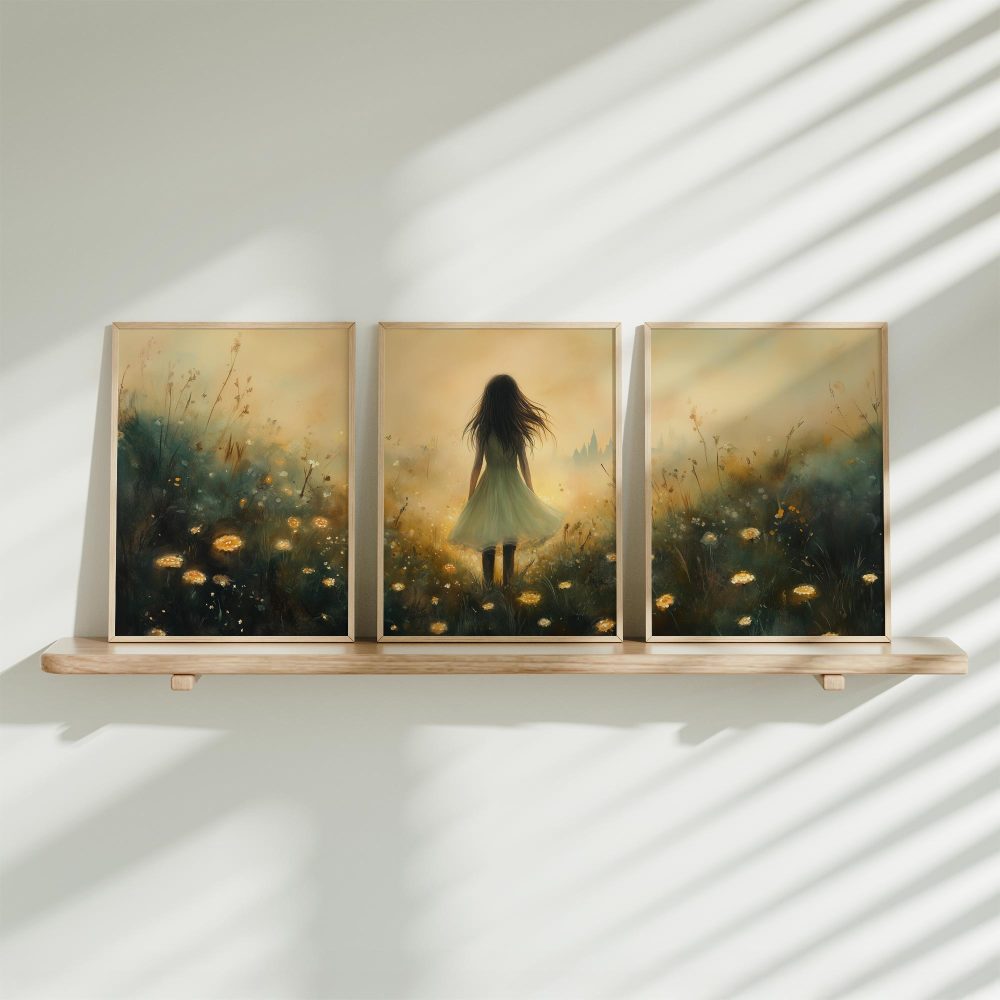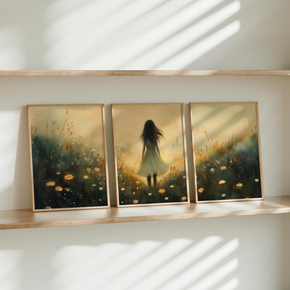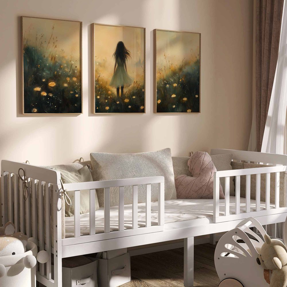 Terug naar collectie / Kinderkamer posters / Bloemen posters / Dromerig bloemenveld met kasteel en prinses