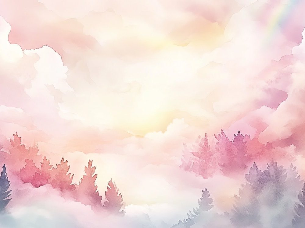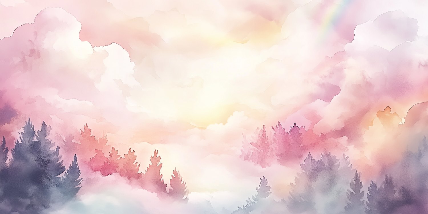 Dromerig bos met pastellucht behang