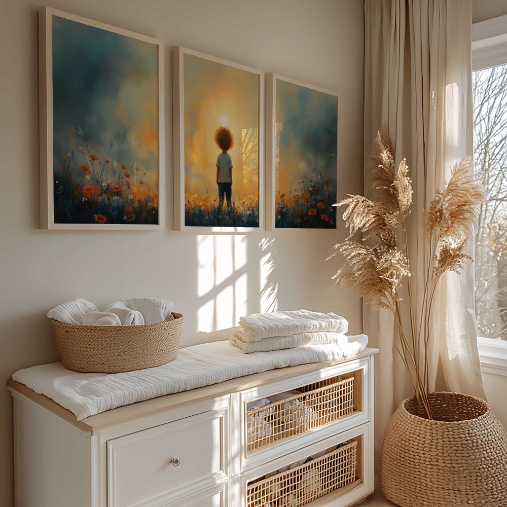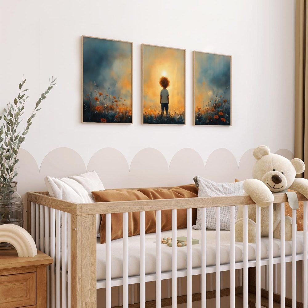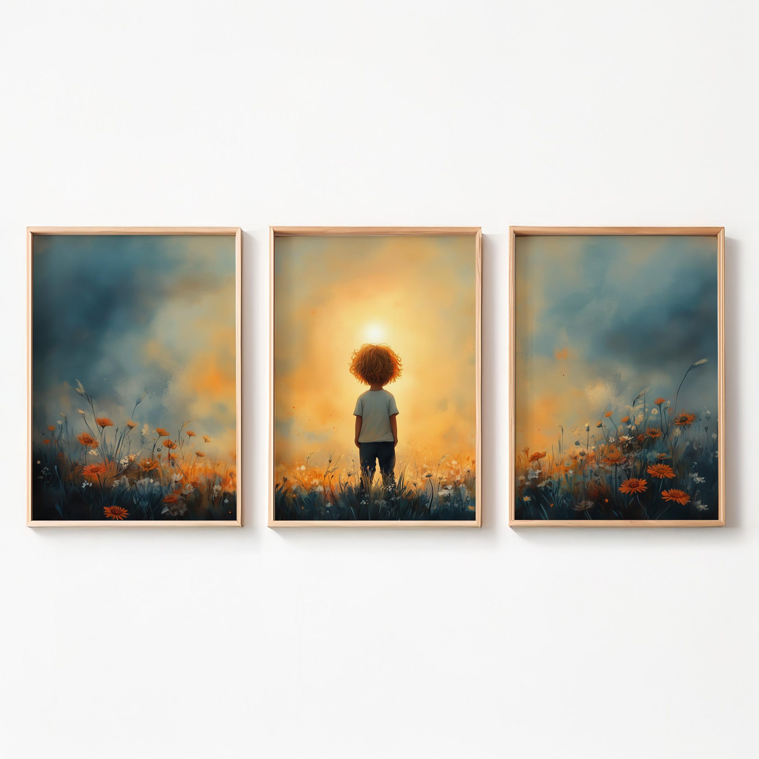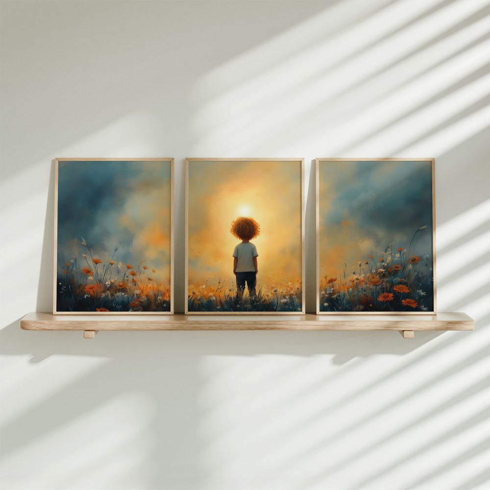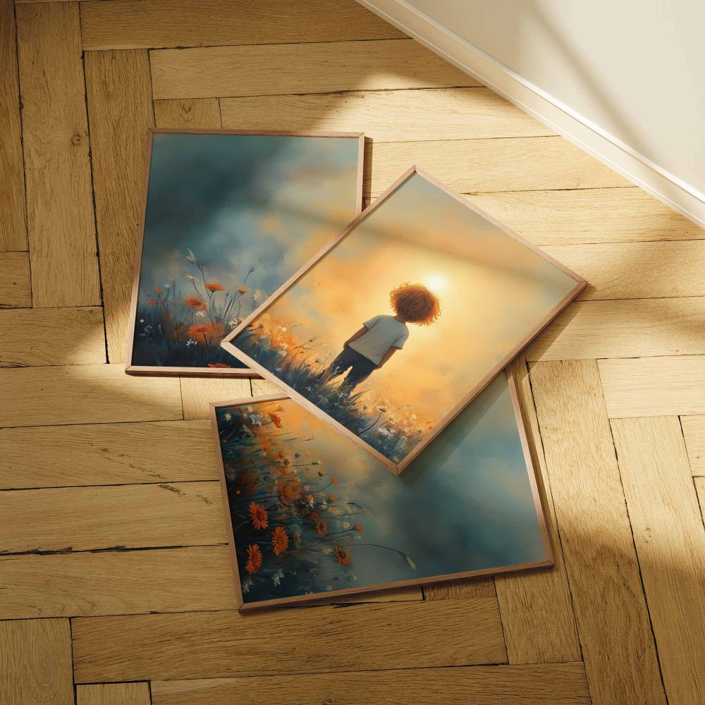 Terug naar collectie / Kinderkamer posters / Bloemen posters / Dromerig Jongetje in een Zee van Bloemen