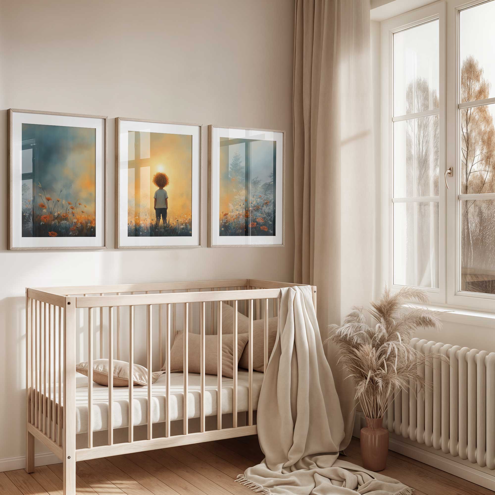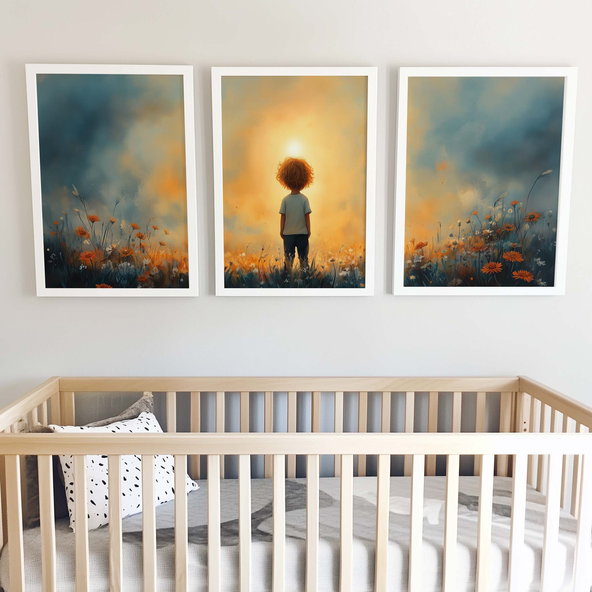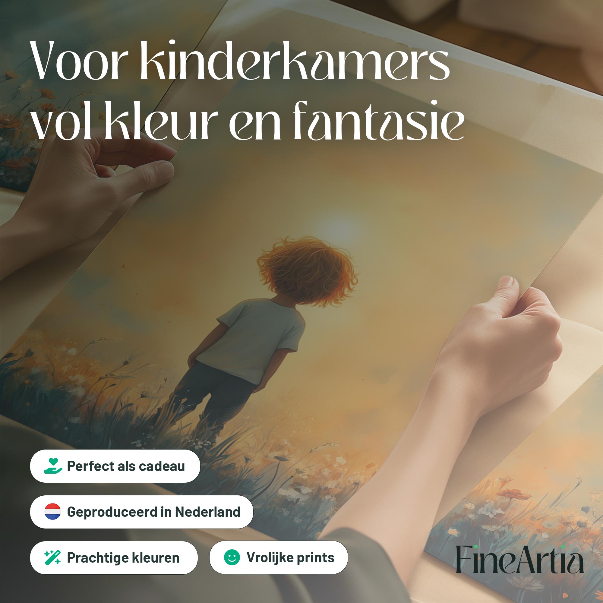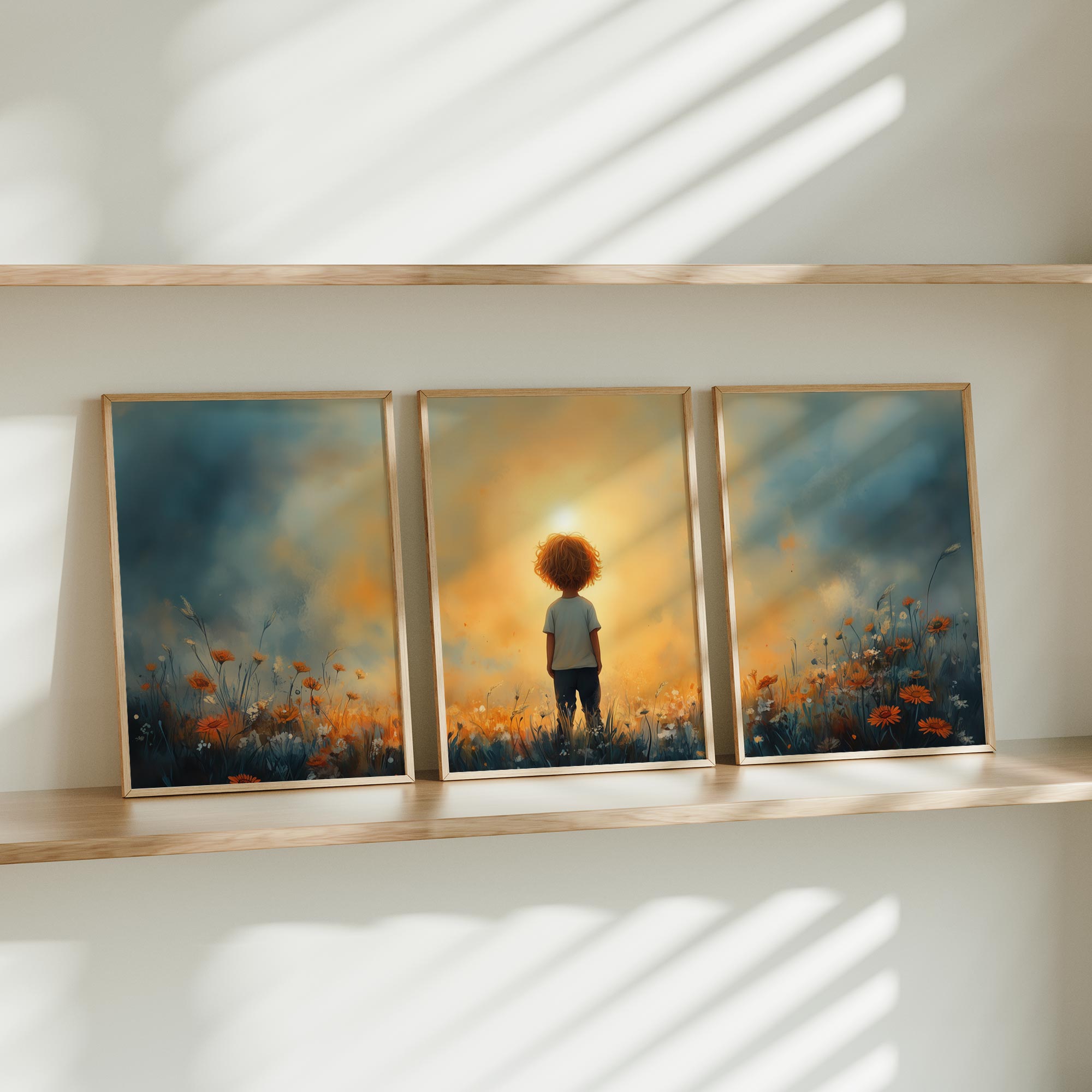 Terug naar collectie / Kinderkamer posters / Bloemen posters / Dromerig Jongetje in een Zee van Bloemen