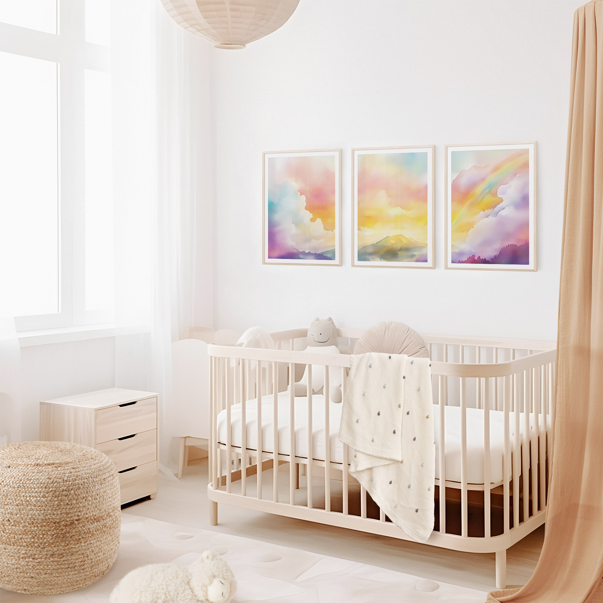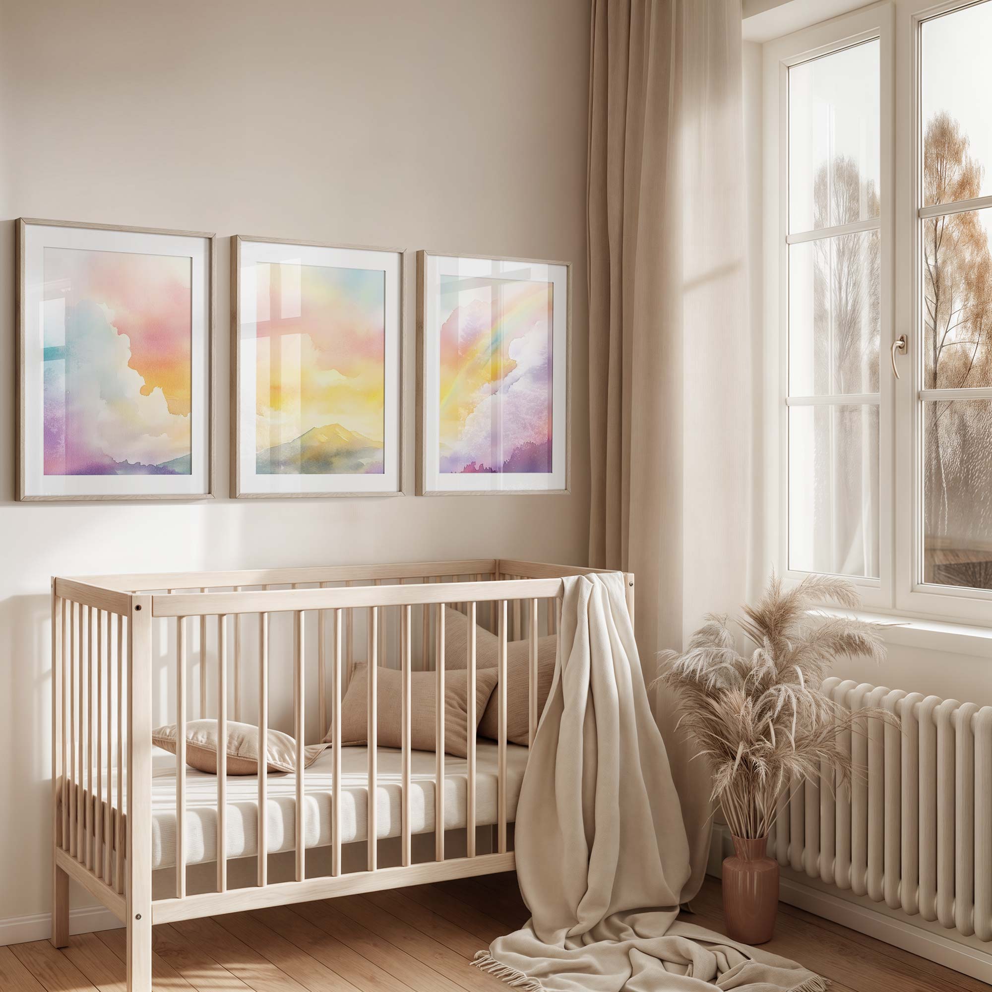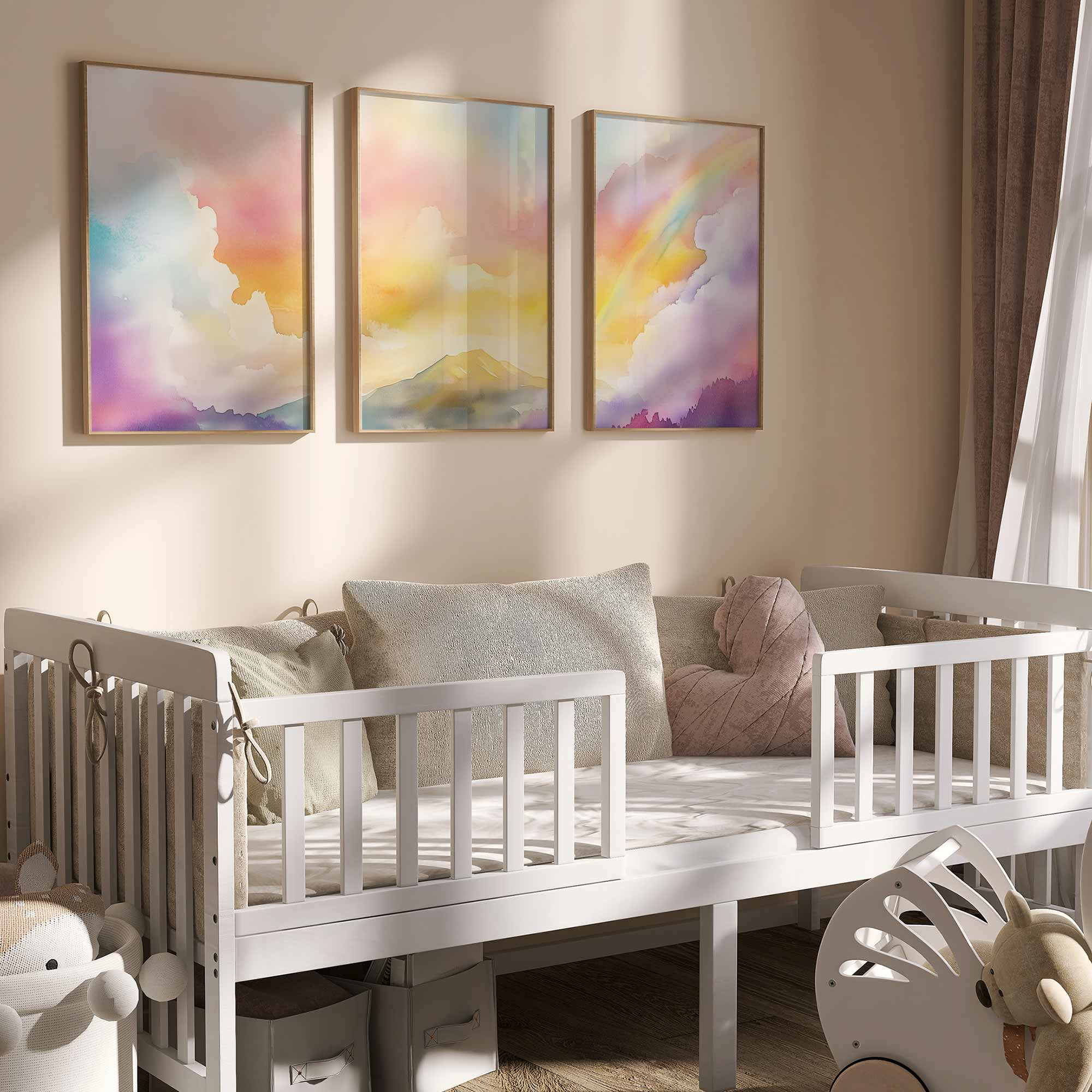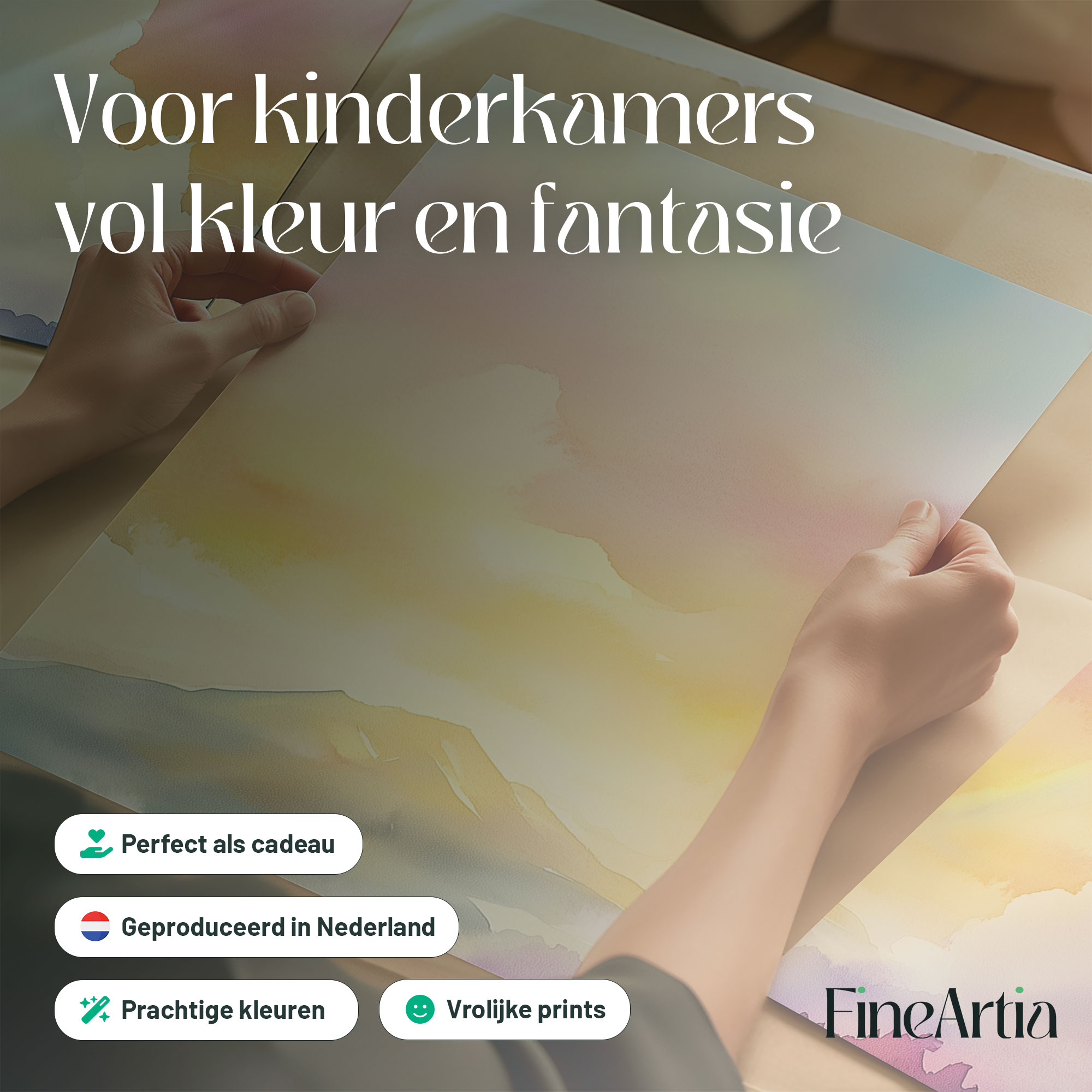 Terug naar collectie / Kinderkamer posters / Dromerig Landschap met Pastelkleuren en Regenboog