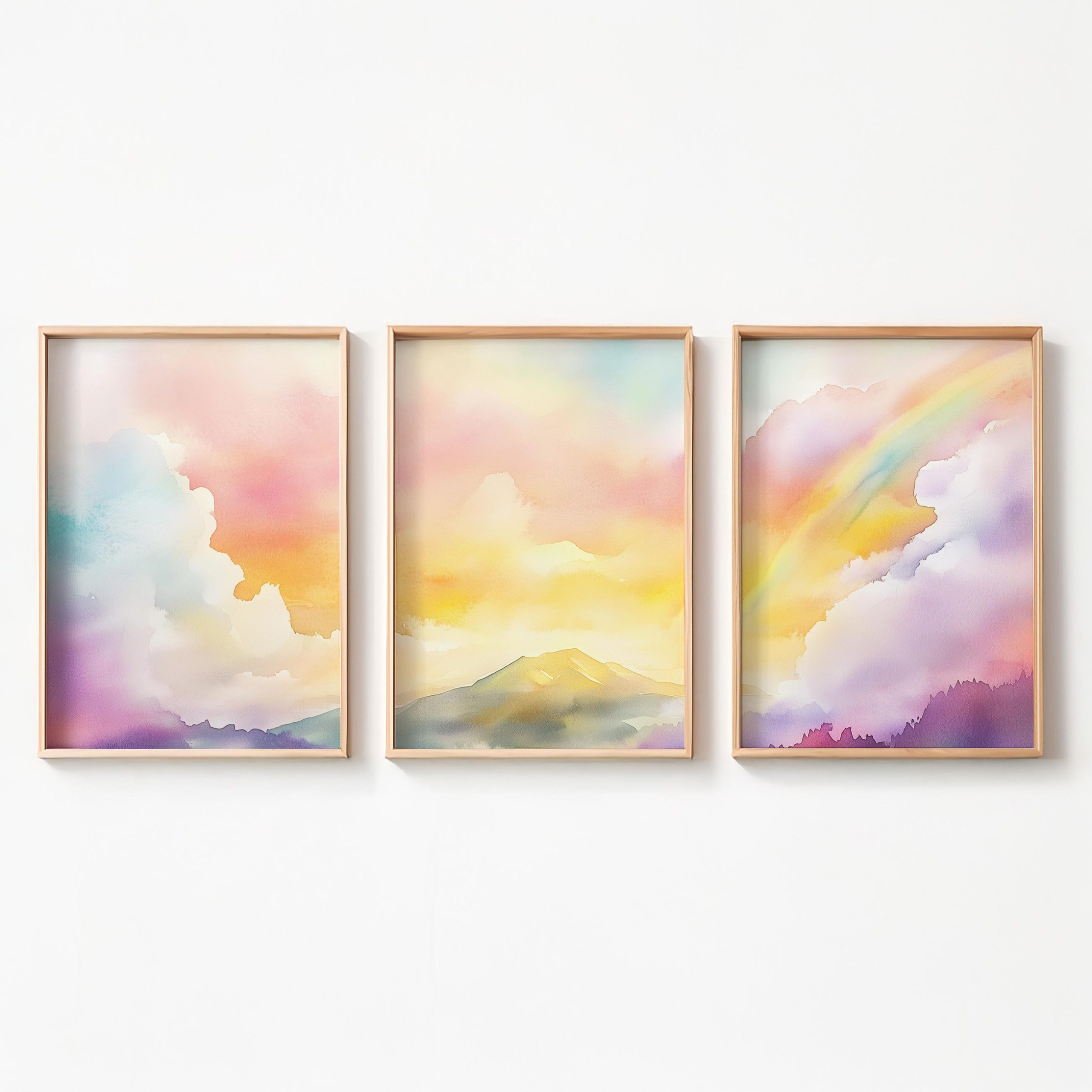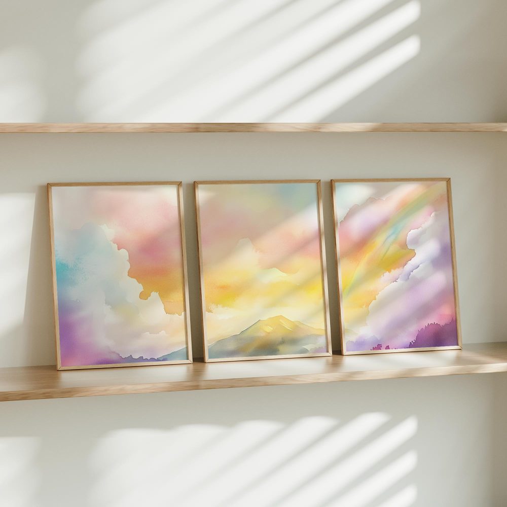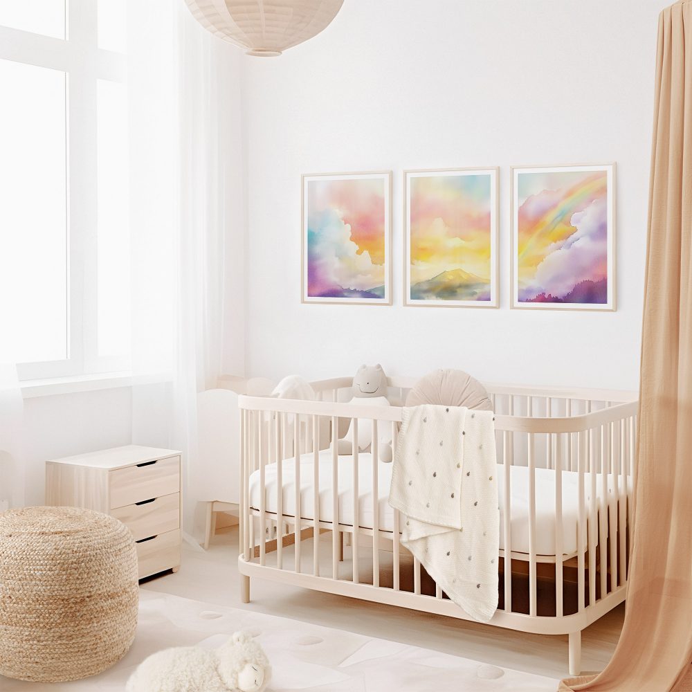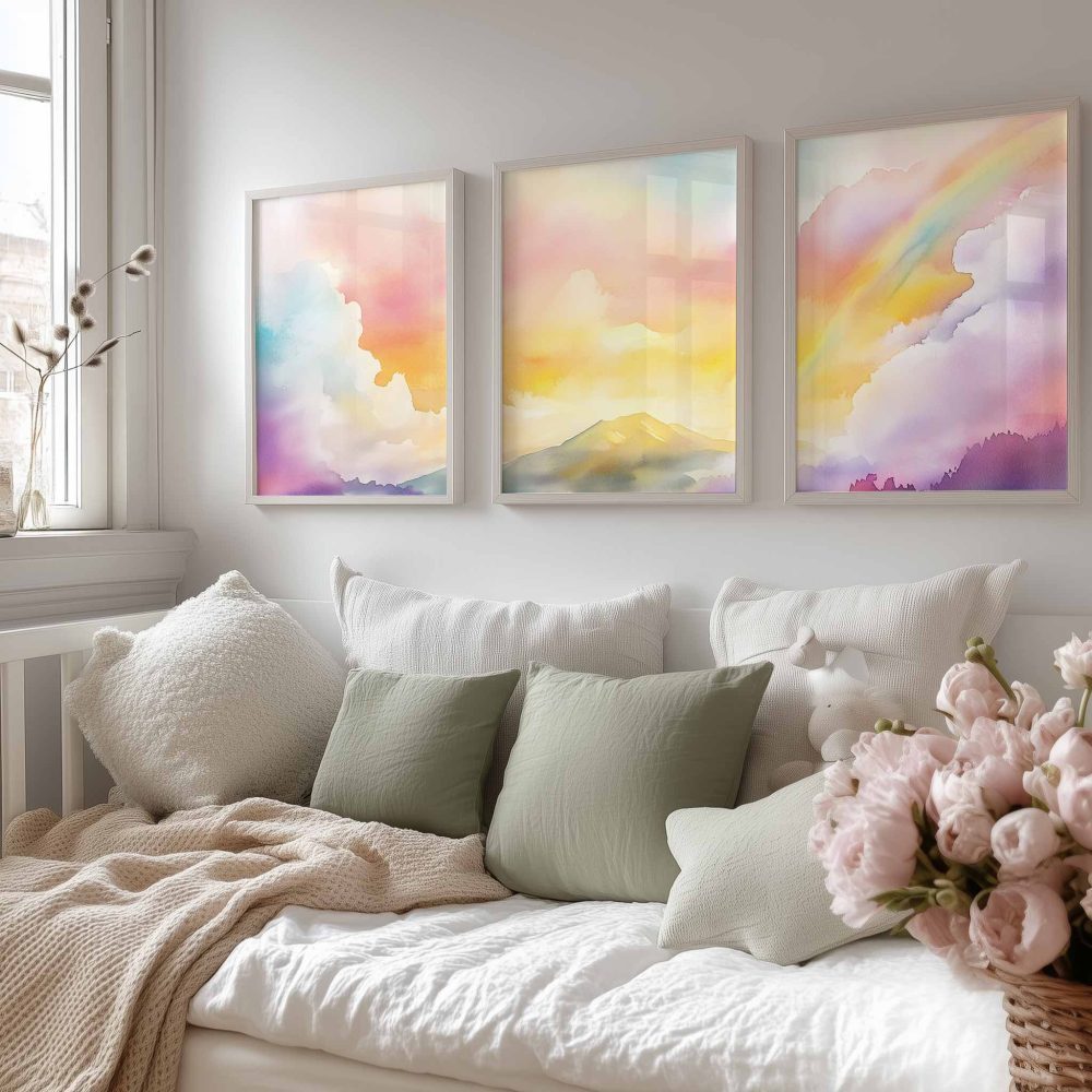 Terug naar collectie / Kinderkamer posters / Dromerig Landschap met Pastelkleuren en Regenboog