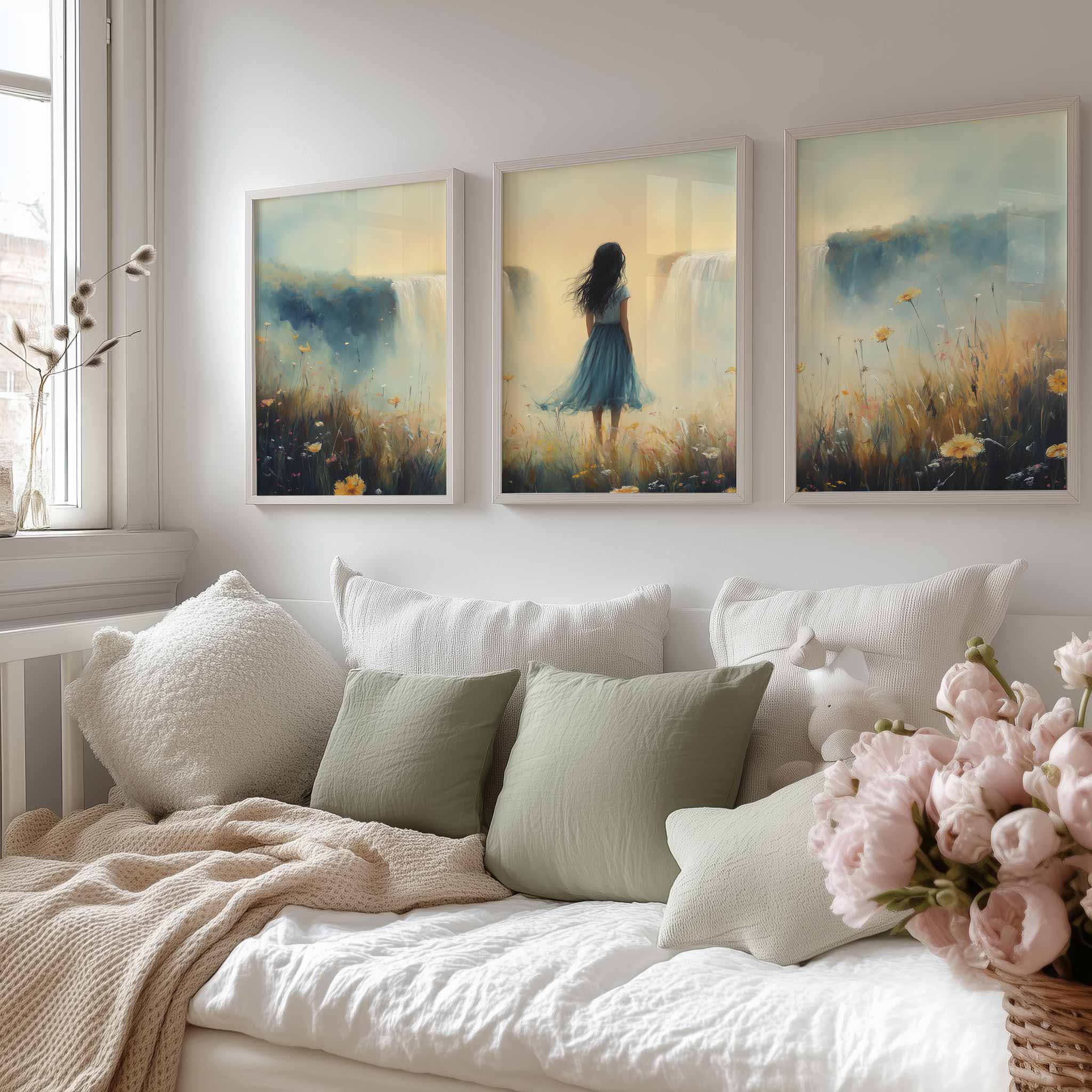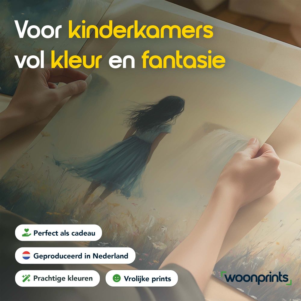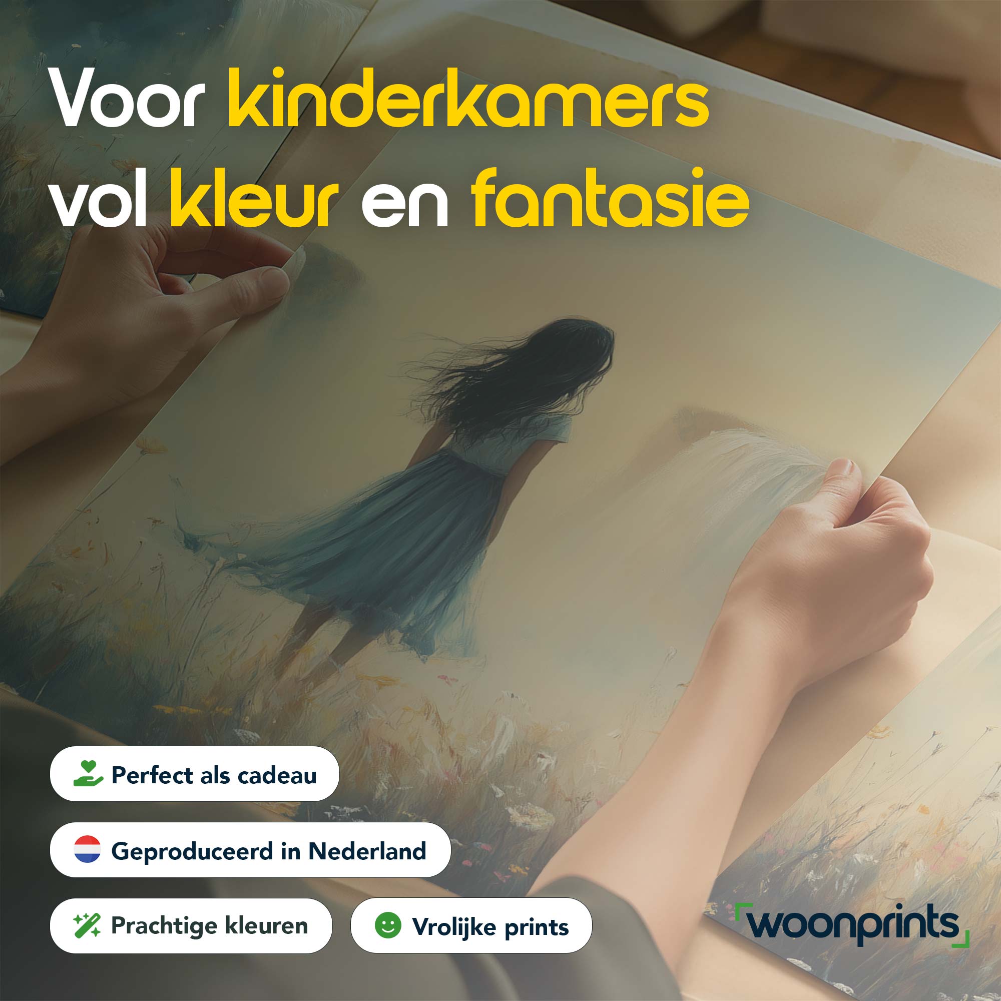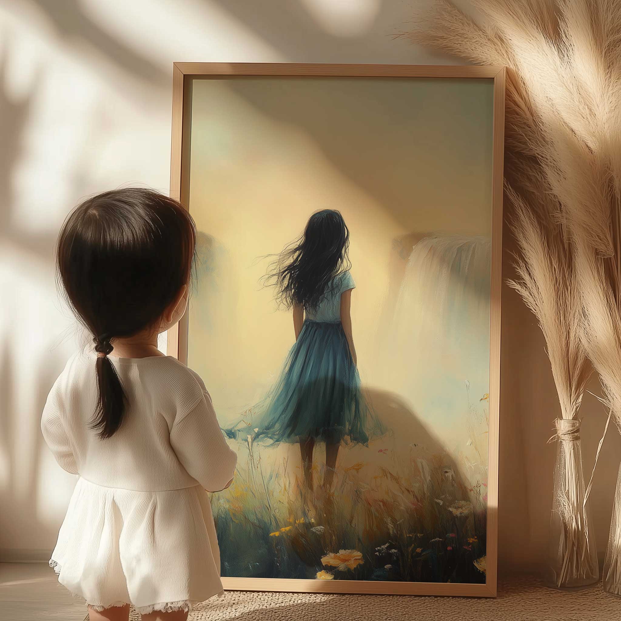 Terug naar collectie / Kinderkamer posters / Bloemen posters / Dromerig Landschap met Vrouw en Watervallen