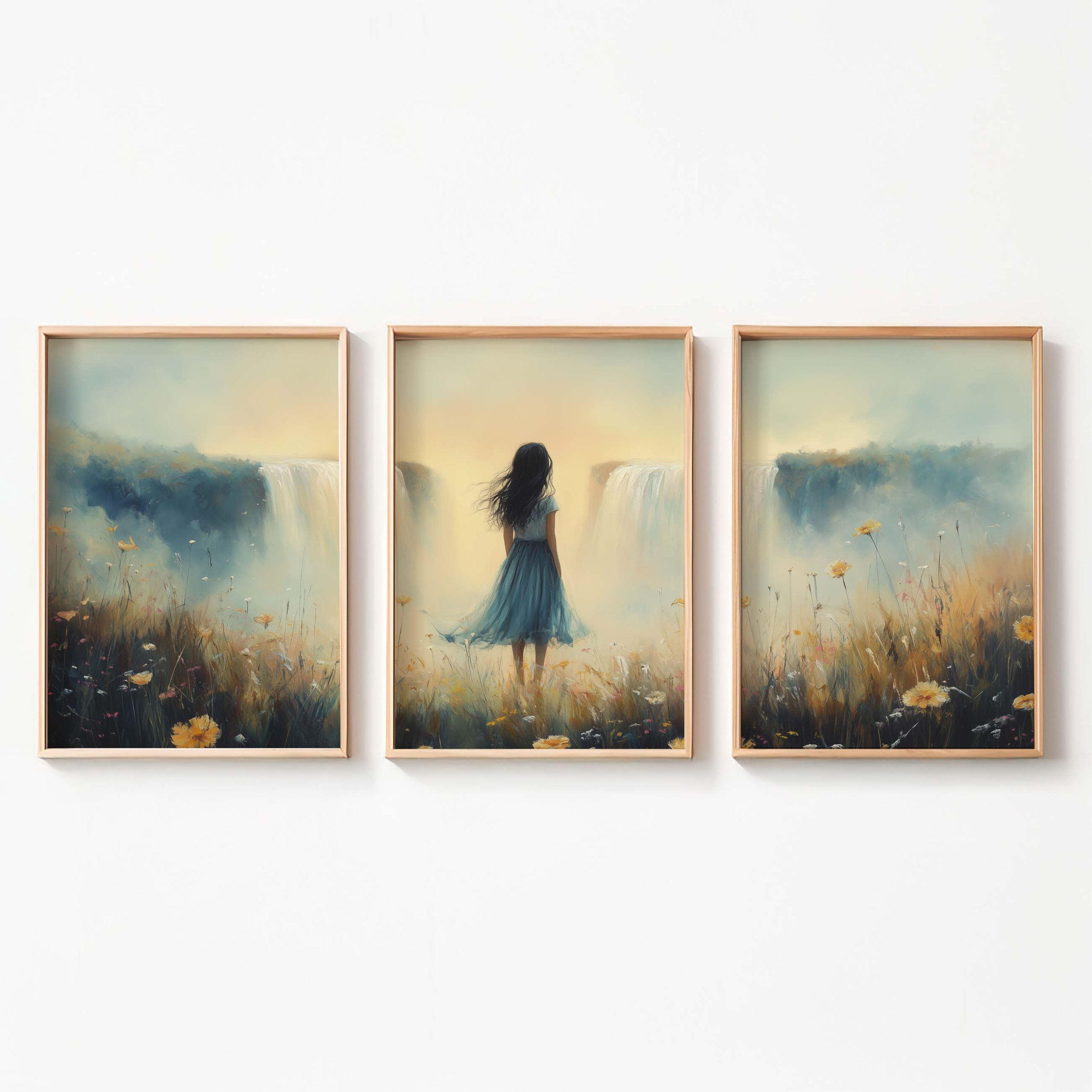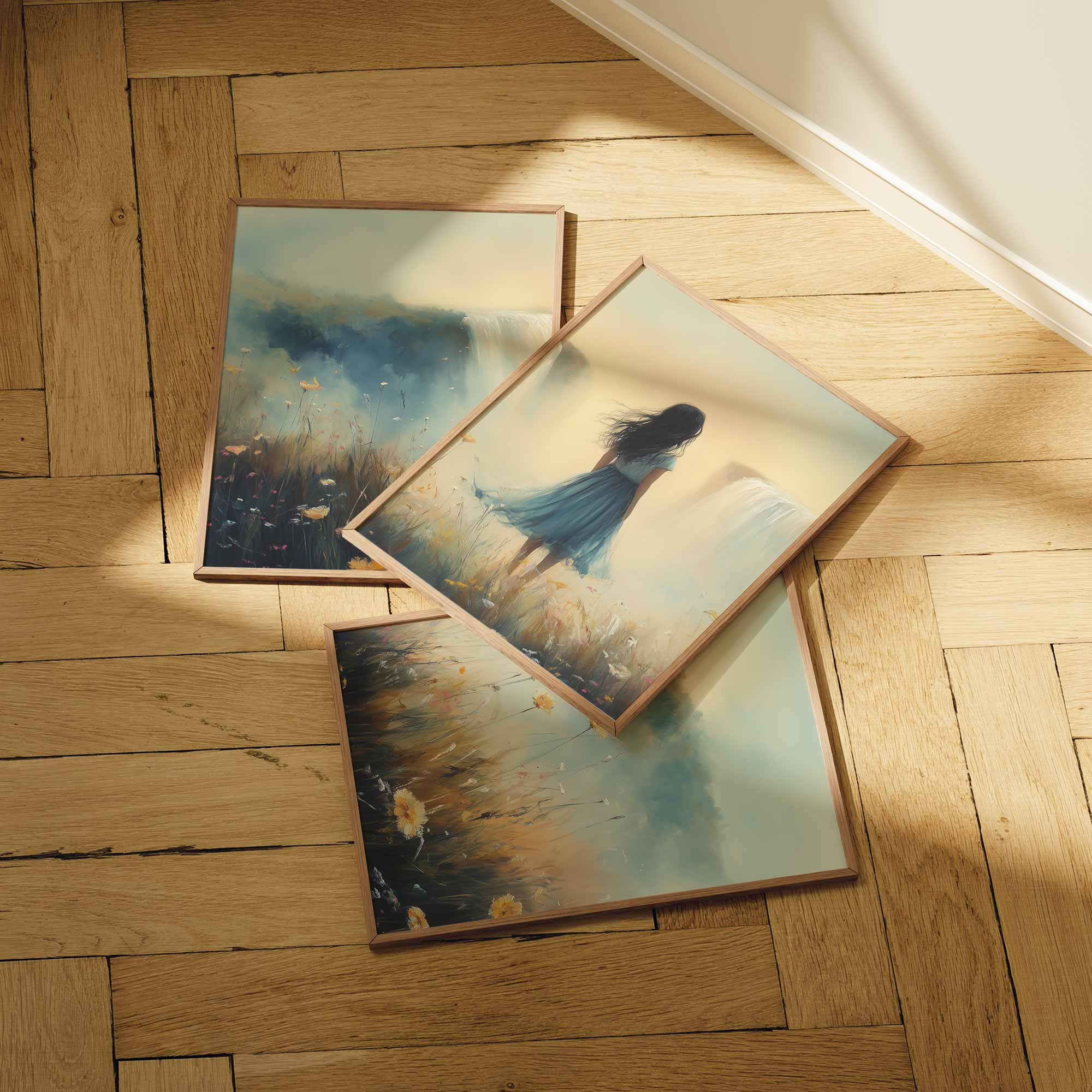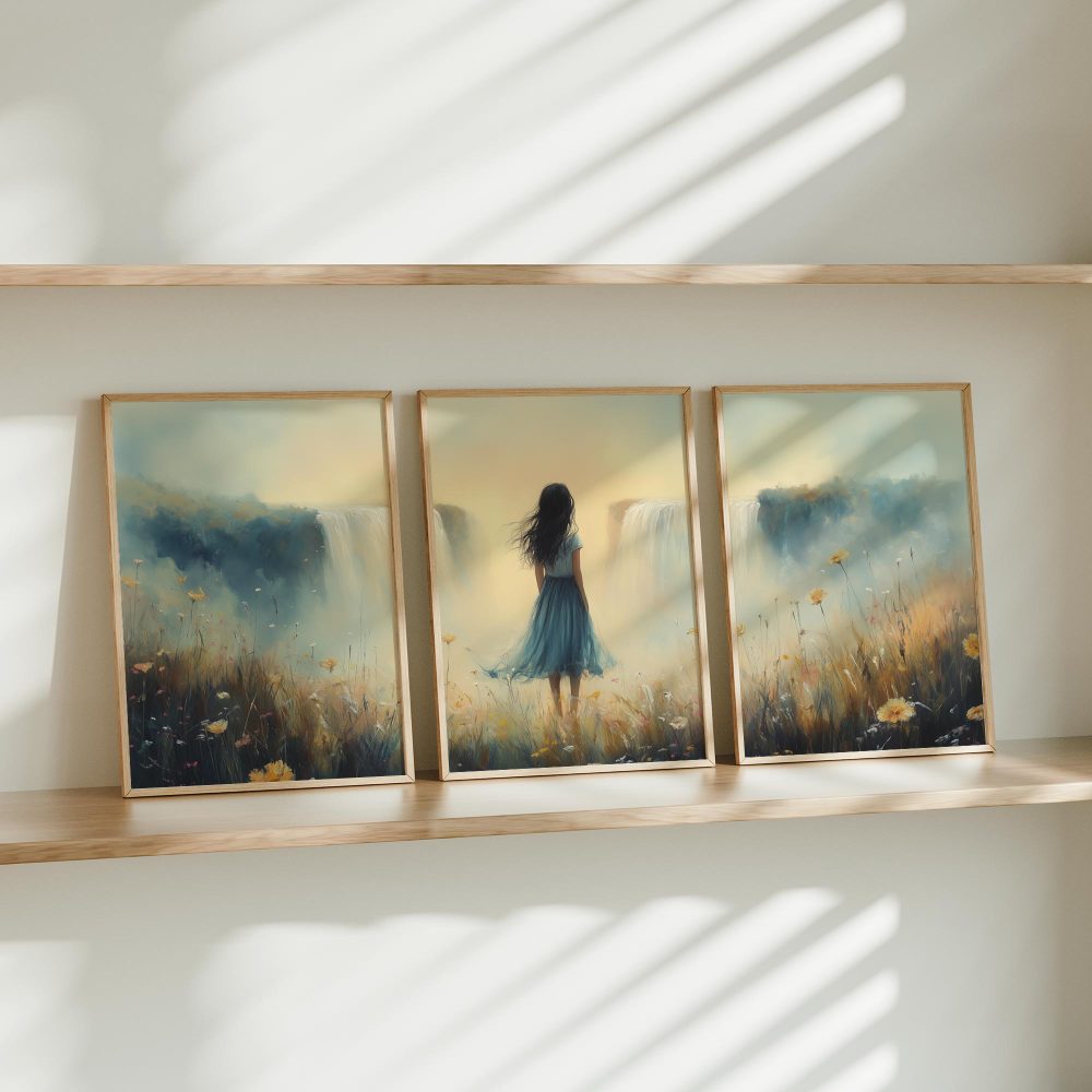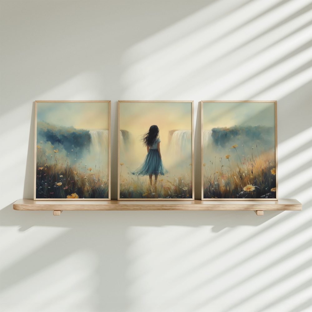 Terug naar collectie / Kinderkamer posters / Bloemen posters / Dromerig Landschap met Vrouw en Watervallen