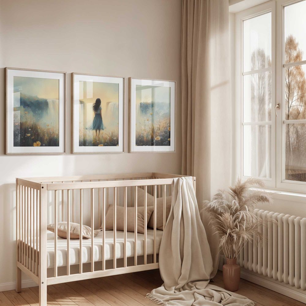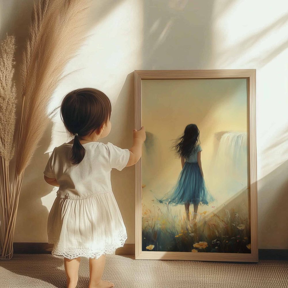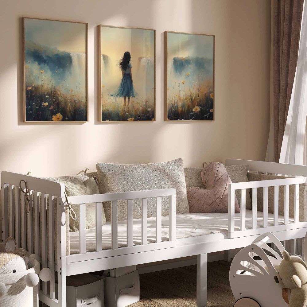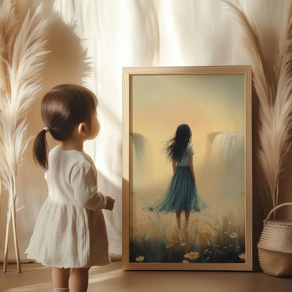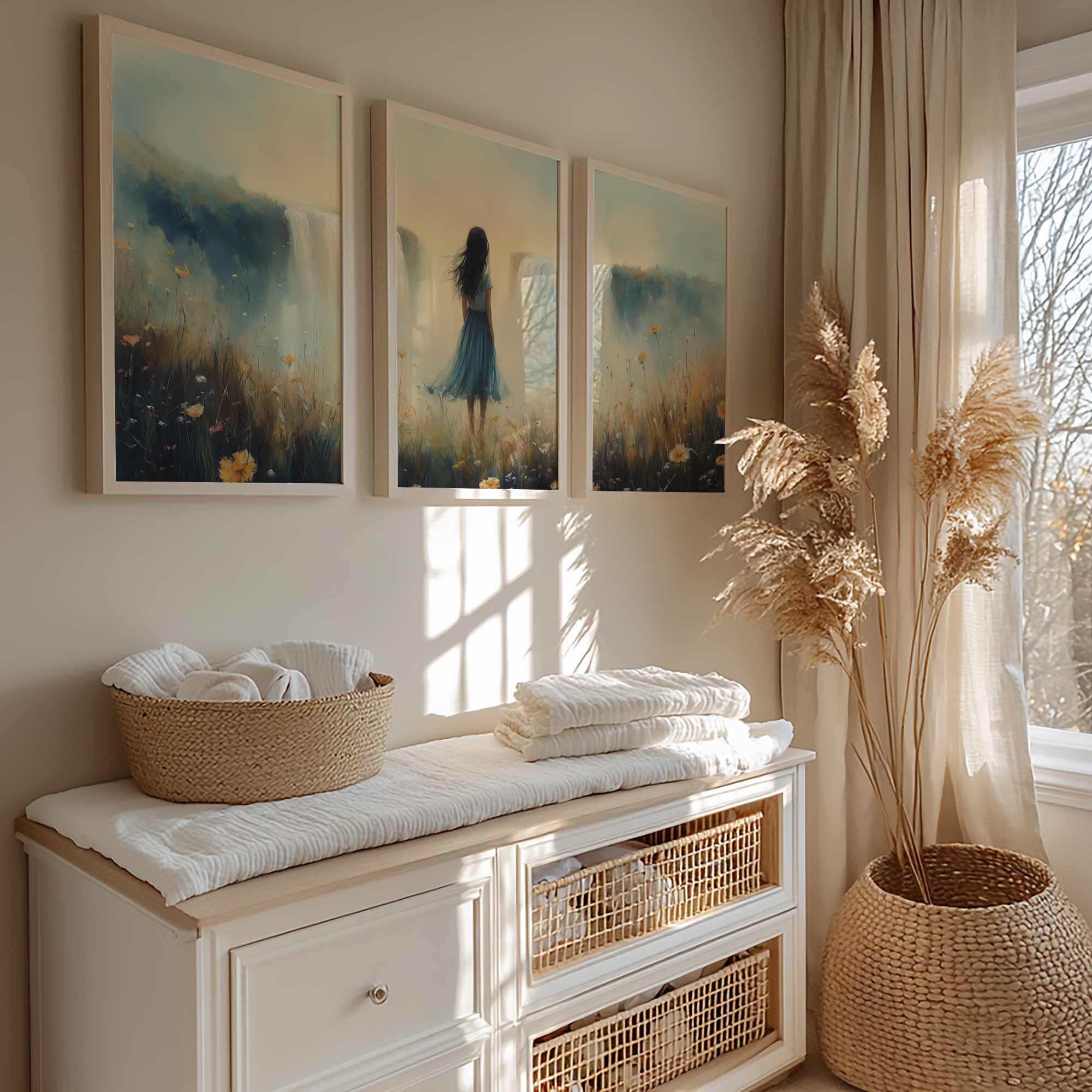 Terug naar collectie / Kinderkamer posters / Bloemen posters / Dromerig Landschap met Vrouw en Watervallen