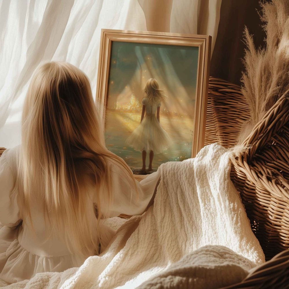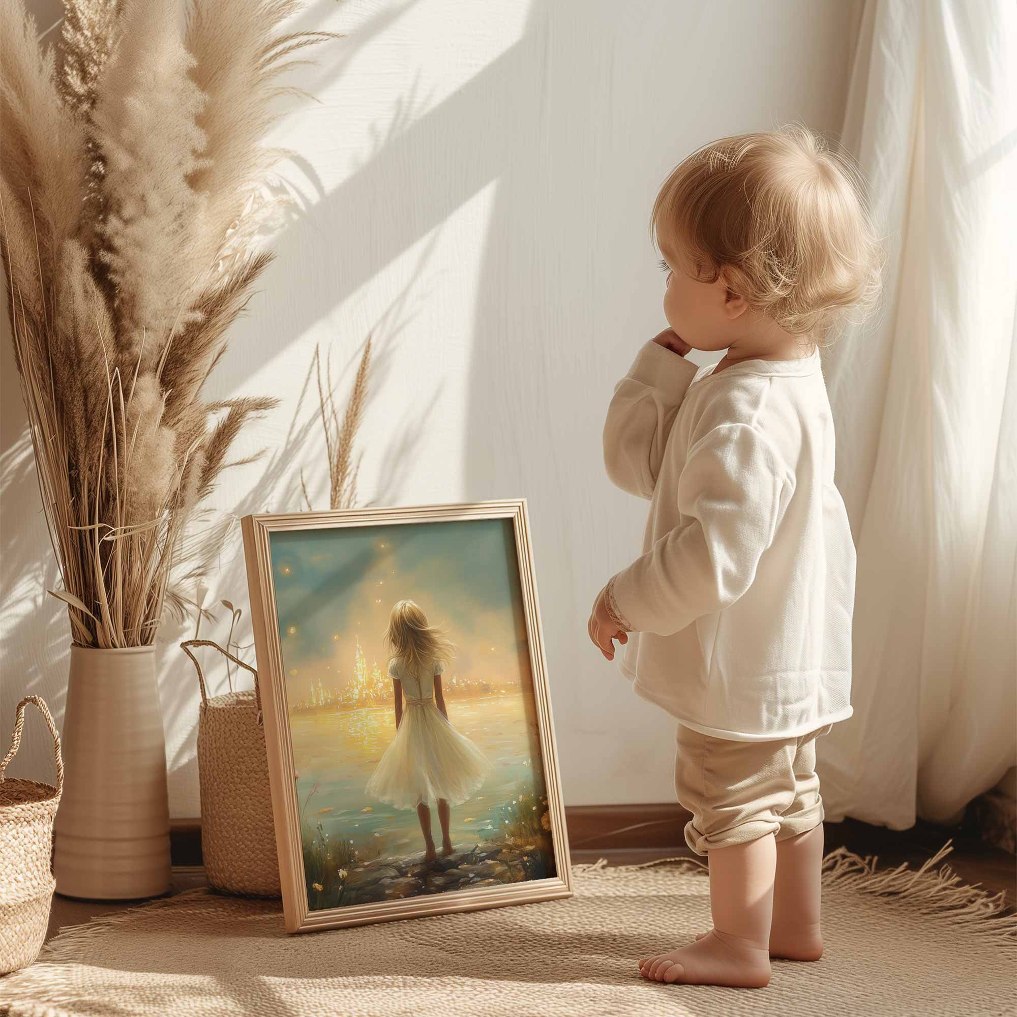 Terug naar collectie / Kinderkamer posters / Bloemen posters / Dromerig Meisje aan het Water